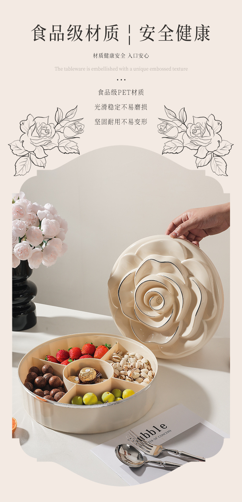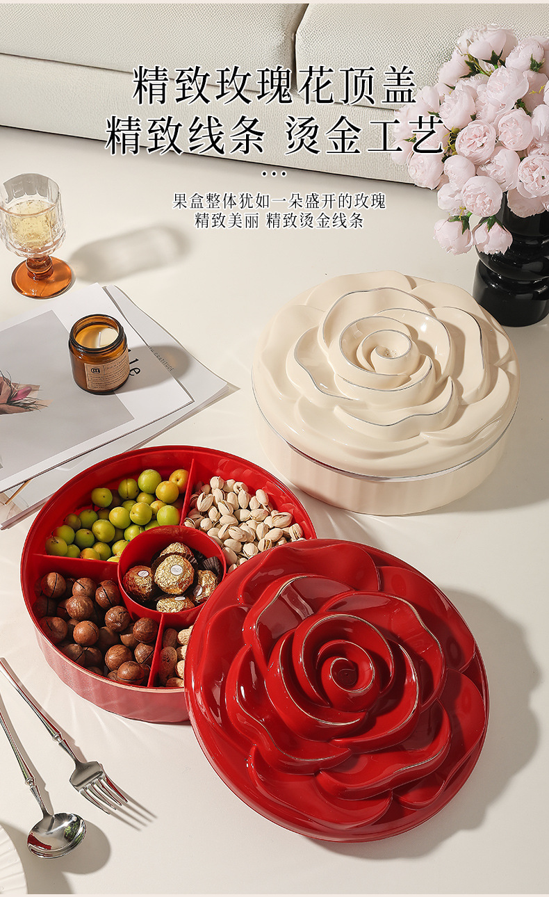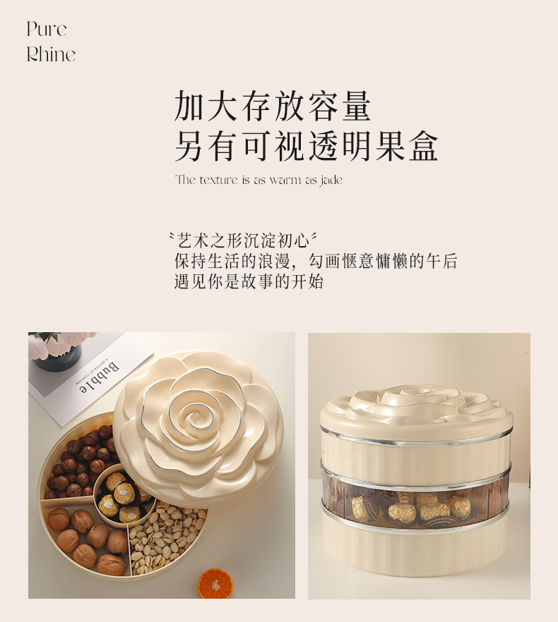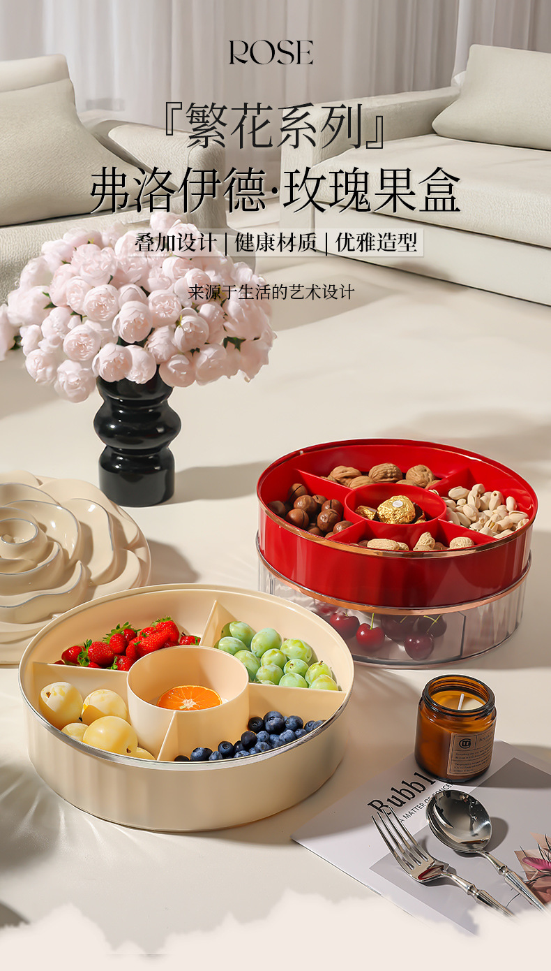 家用高颜值客厅茶几分格干果盒多层坚果零食摆放盘轻奢玫瑰糖果盒