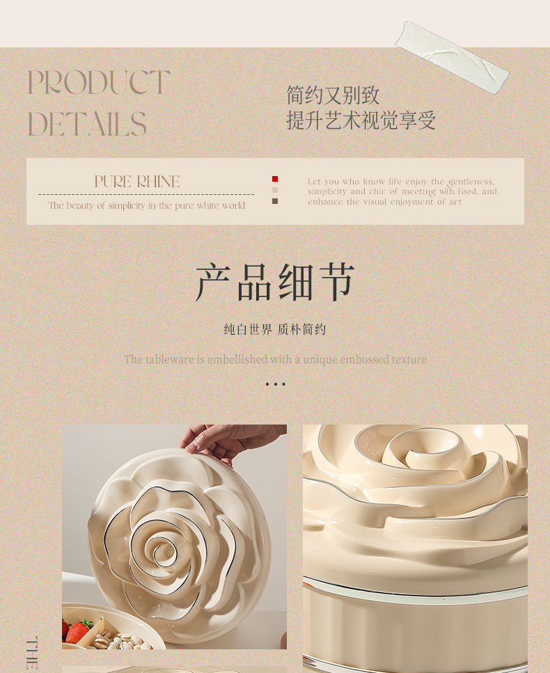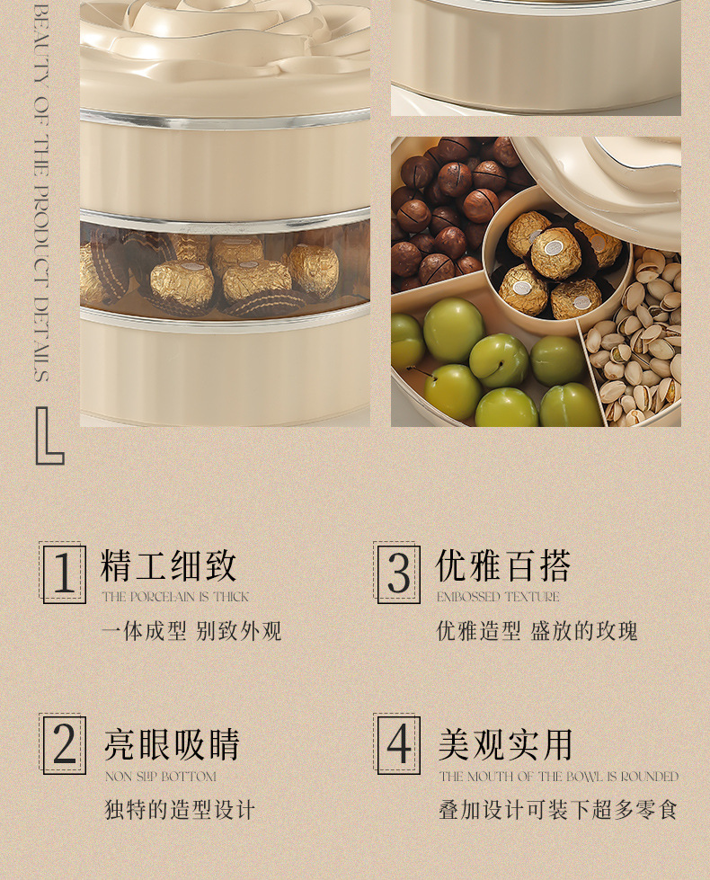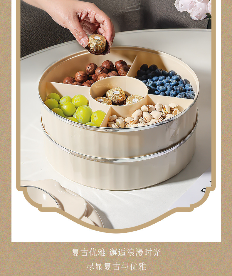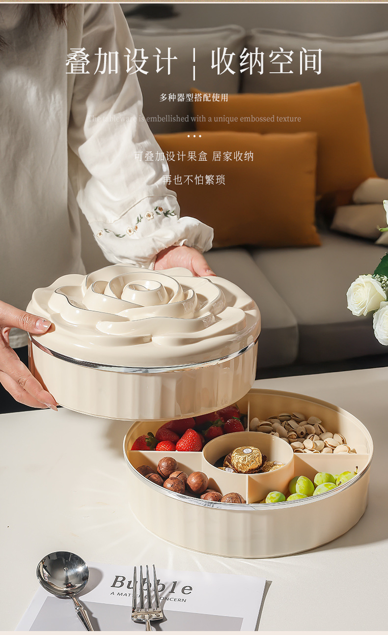 家用高颜值客厅茶几分格干果盒多层坚果零食摆放盘轻奢玫瑰糖果盒