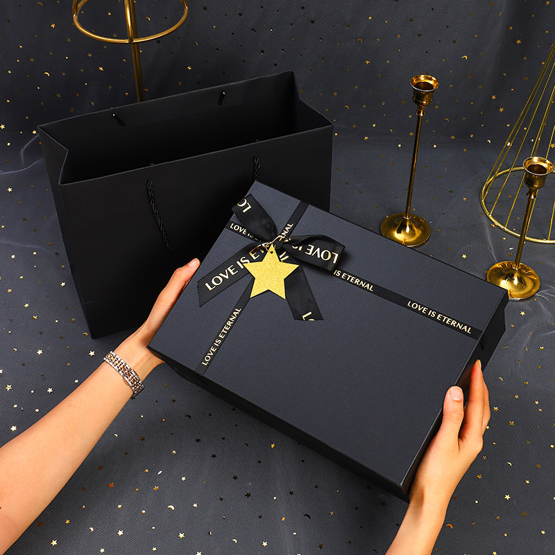 红色礼盒高级感伴手礼盒黑色男士商务礼品包装盒大号蝴蝶结礼盒