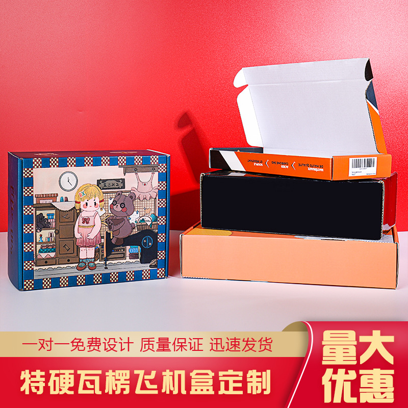 彩色双面特硬飞机盒定制大号白卡纸盒瓦楞包装盒快递专用