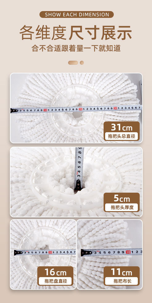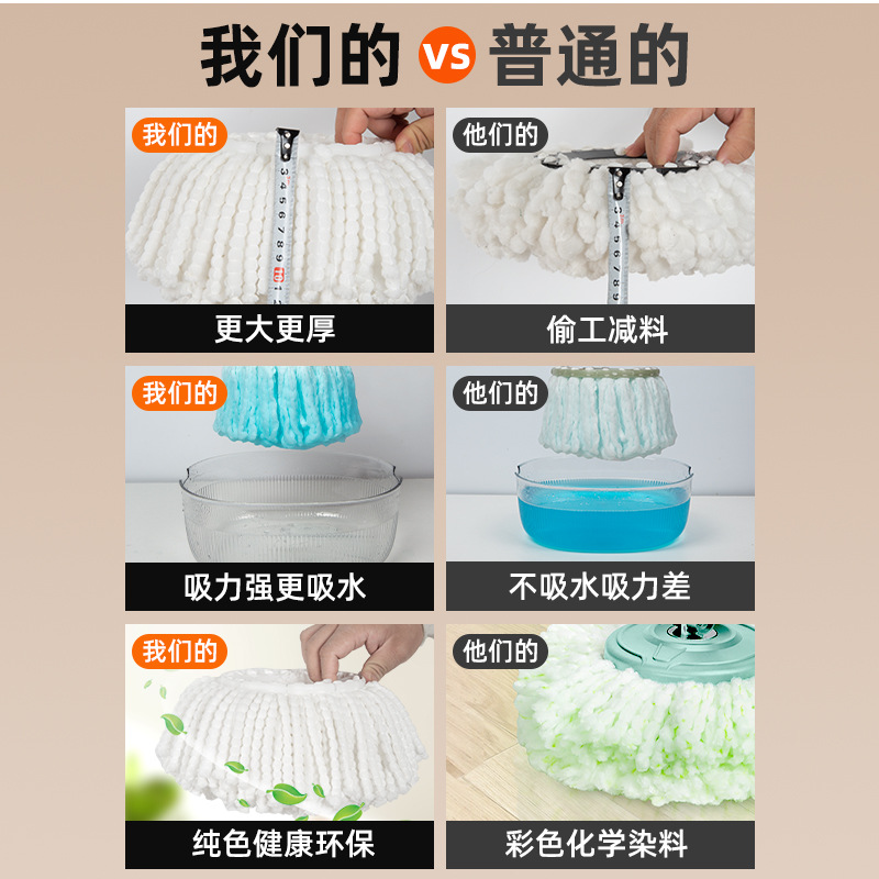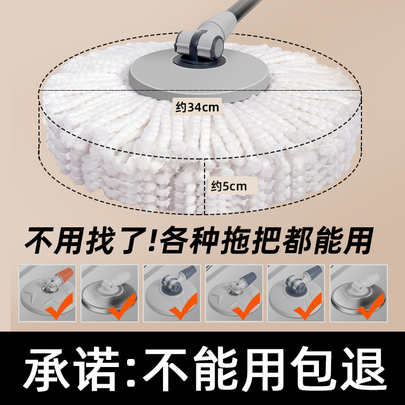加厚旋转拖把头拖布头吸水地拖头通用拖帕头棉头墩布头地拖头替换
