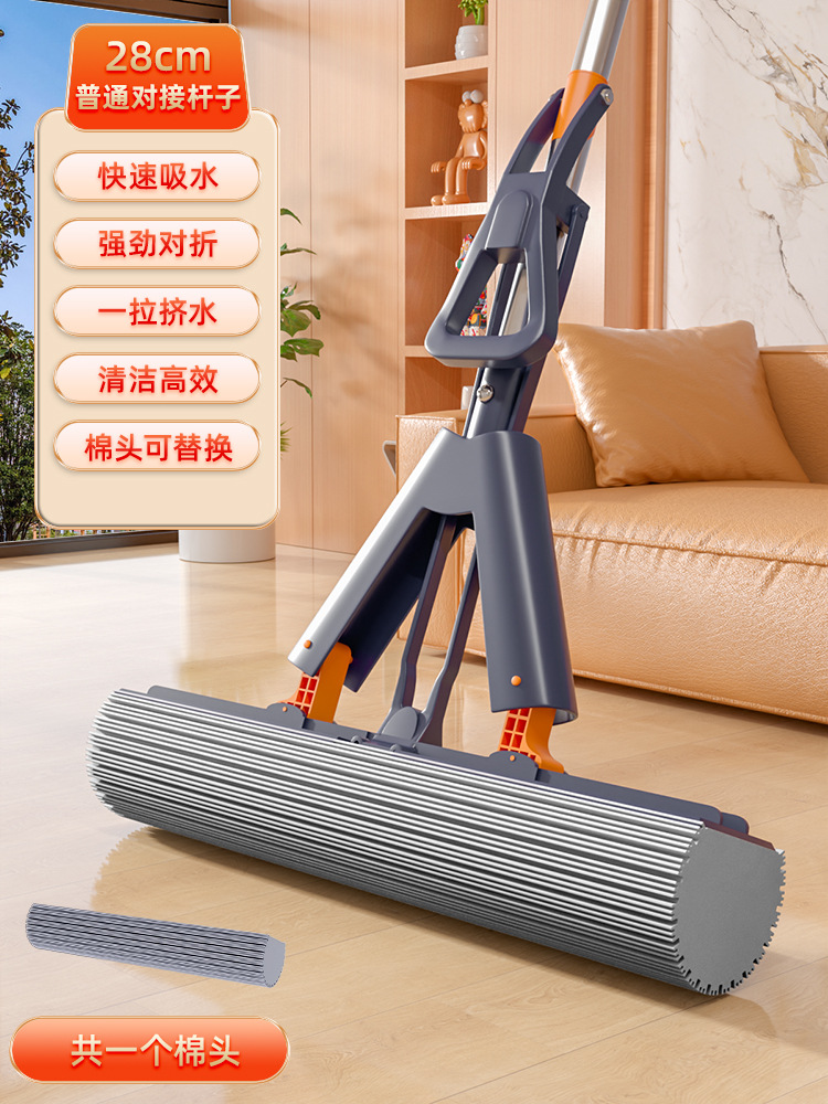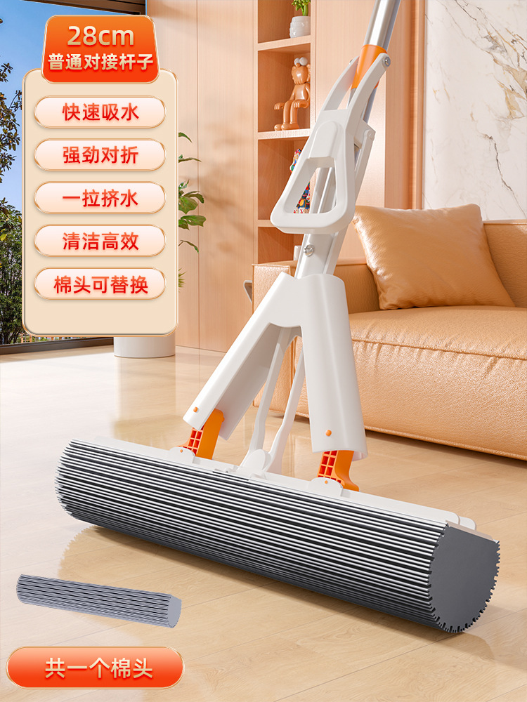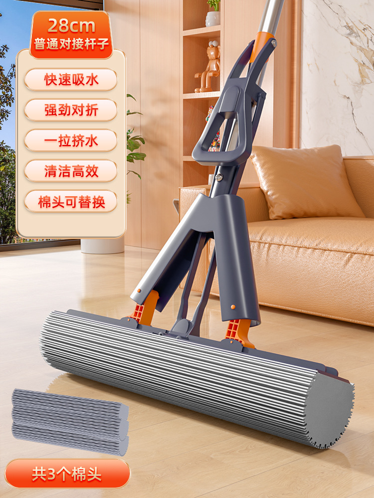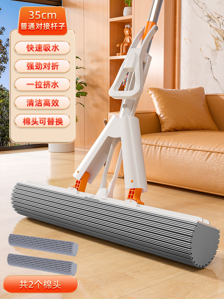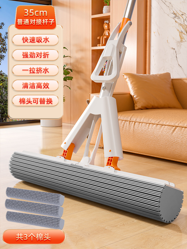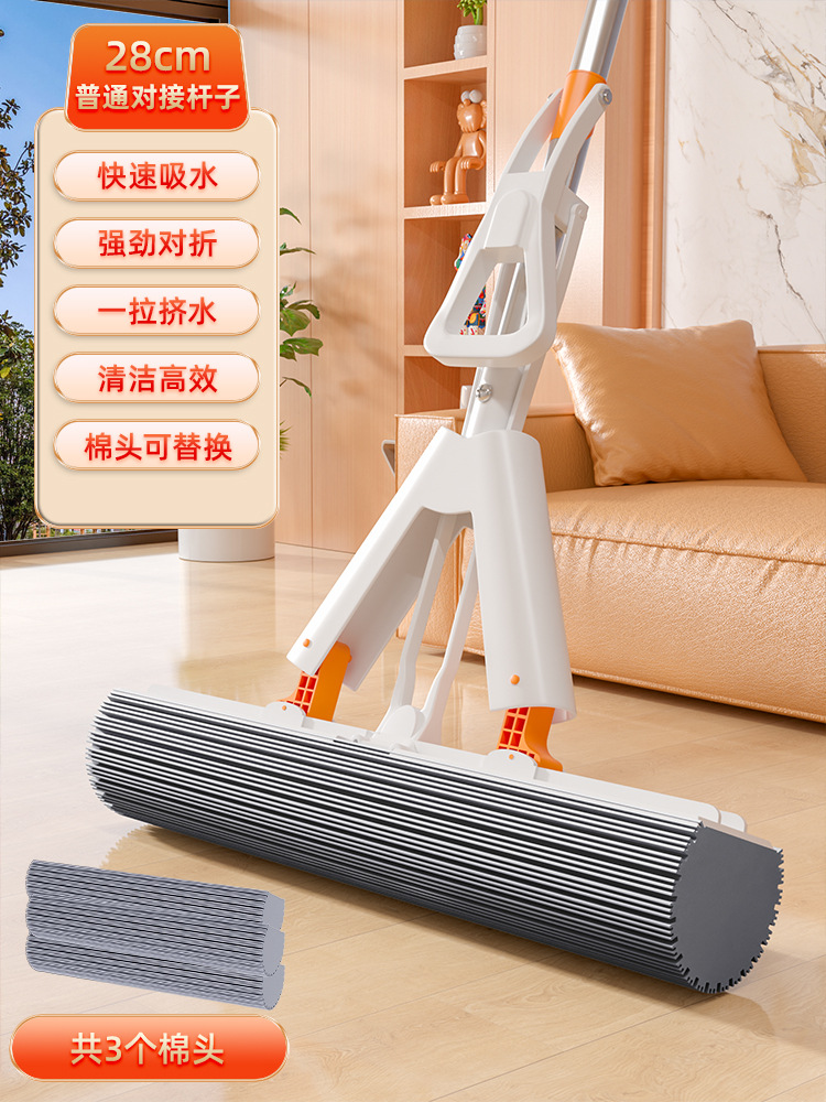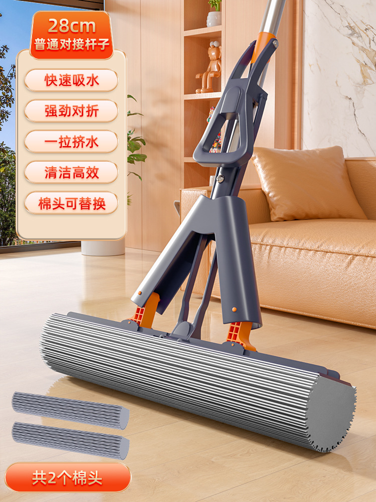 吸水拖把家用胶棉拖把懒人拖布海绵免手洗对折式一拖净舒棉拖把头