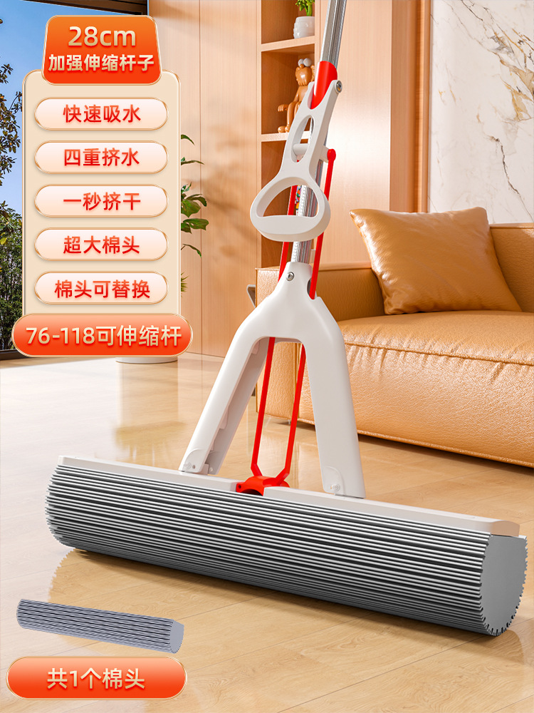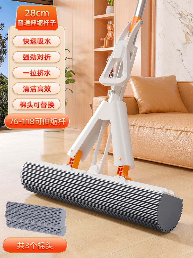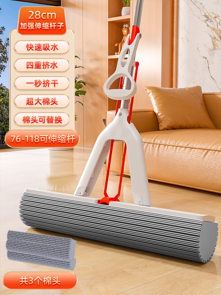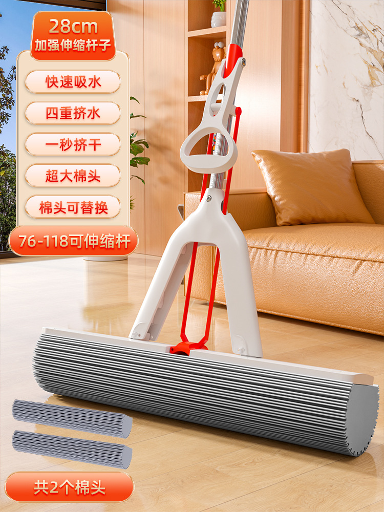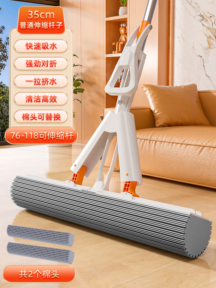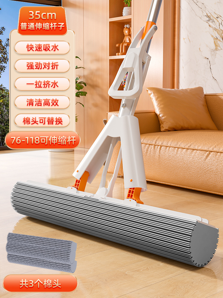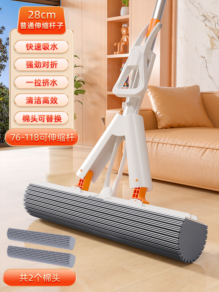 吸水拖把家用胶棉拖把懒人拖布海绵免手洗对折式一拖净舒棉拖把头