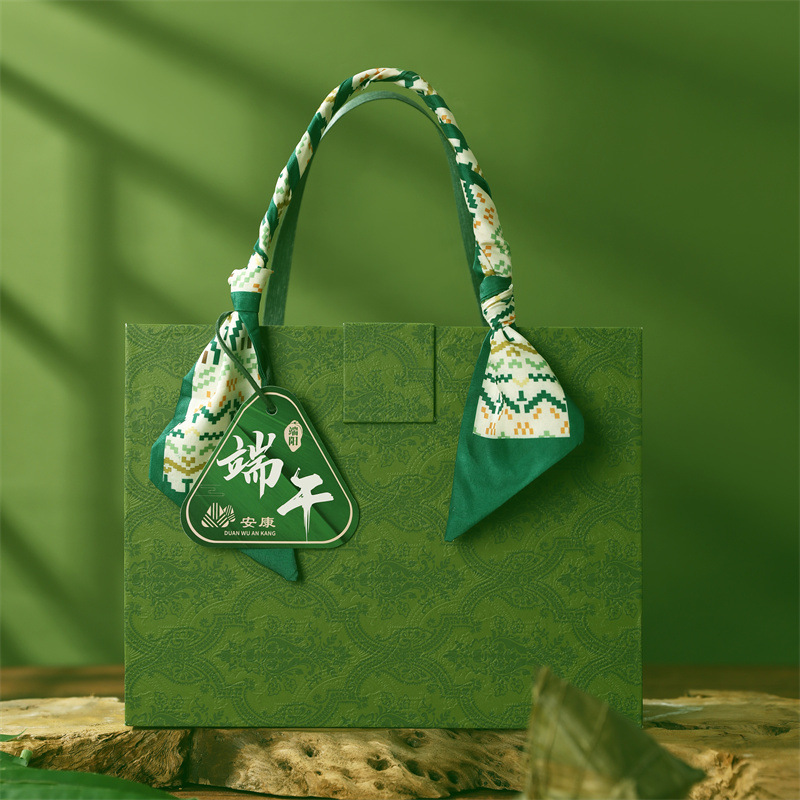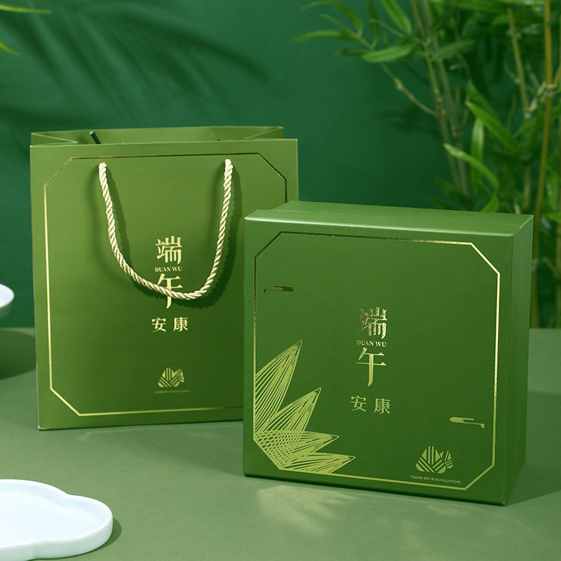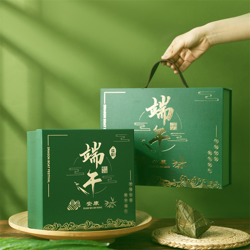 创意端午节礼盒绿色伴手礼手提盒商务礼品粽子咸鸭蛋风扇包装盒