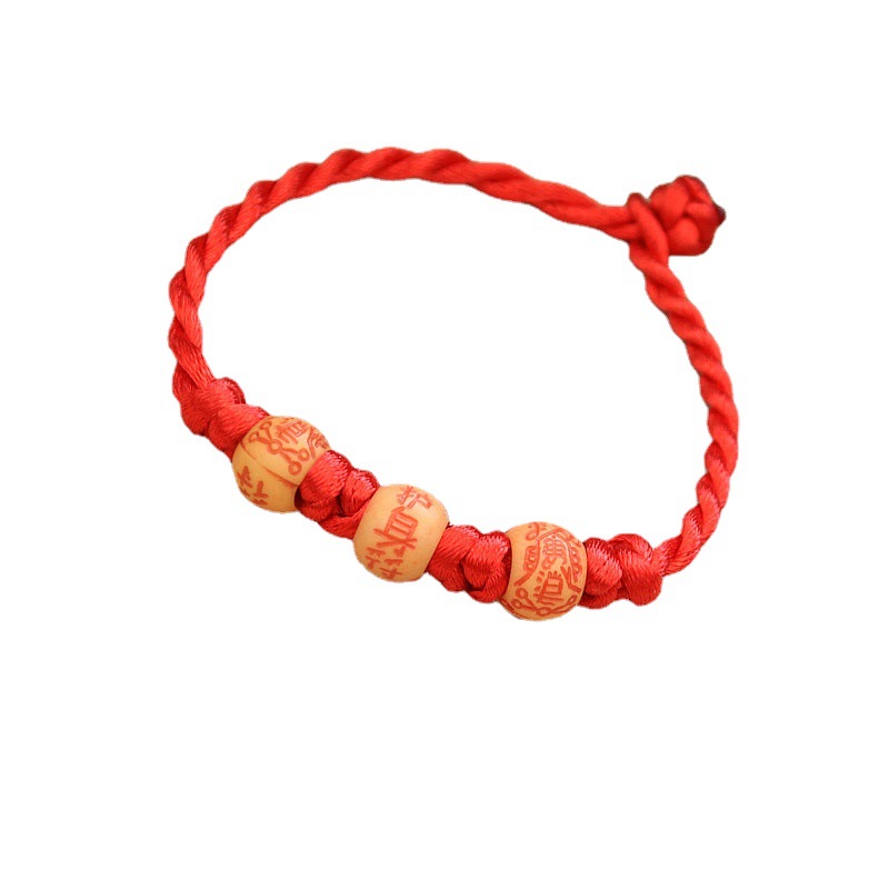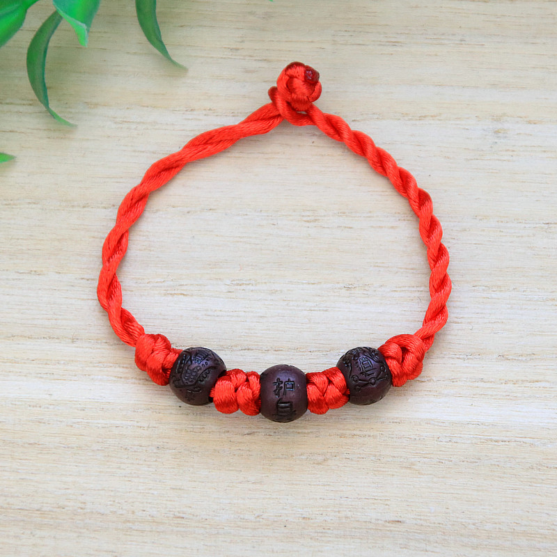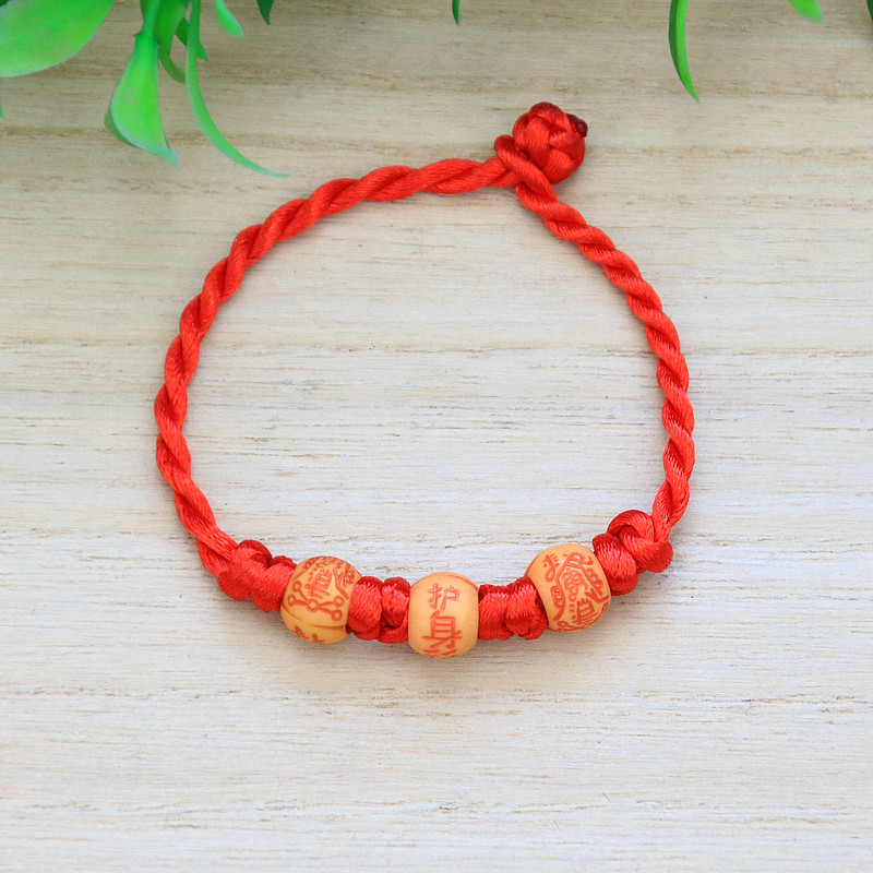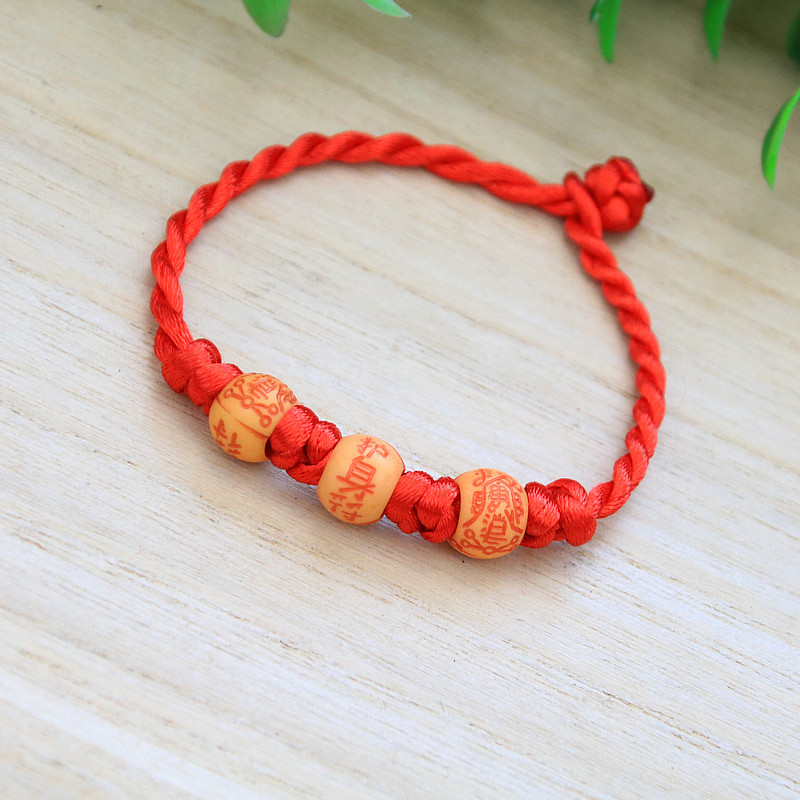 手工编织本命年三个圆珠红绳手链景区寺庙热卖义乌端午节饰品批发
