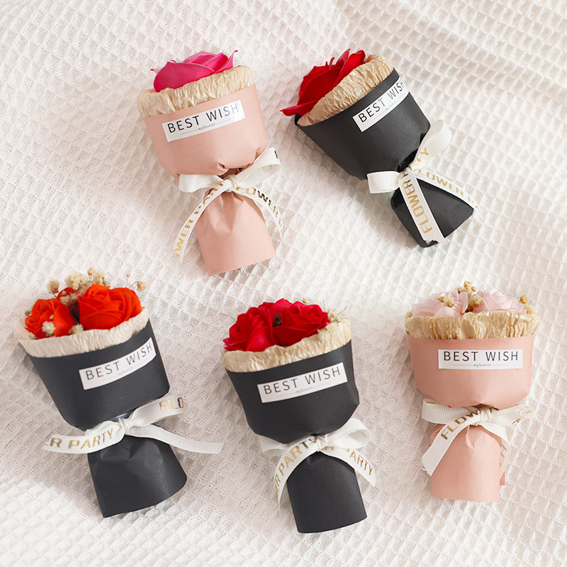 玫瑰花迷你小花束情人节送女友手捧礼物满天星干花节日伴手礼批发