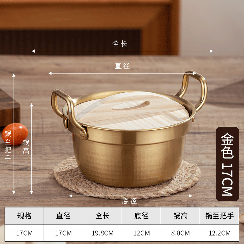 日式304不锈钢双耳泡面锅 煮面汤锅拉面锅小火锅燃气锤纹工艺炖锅
