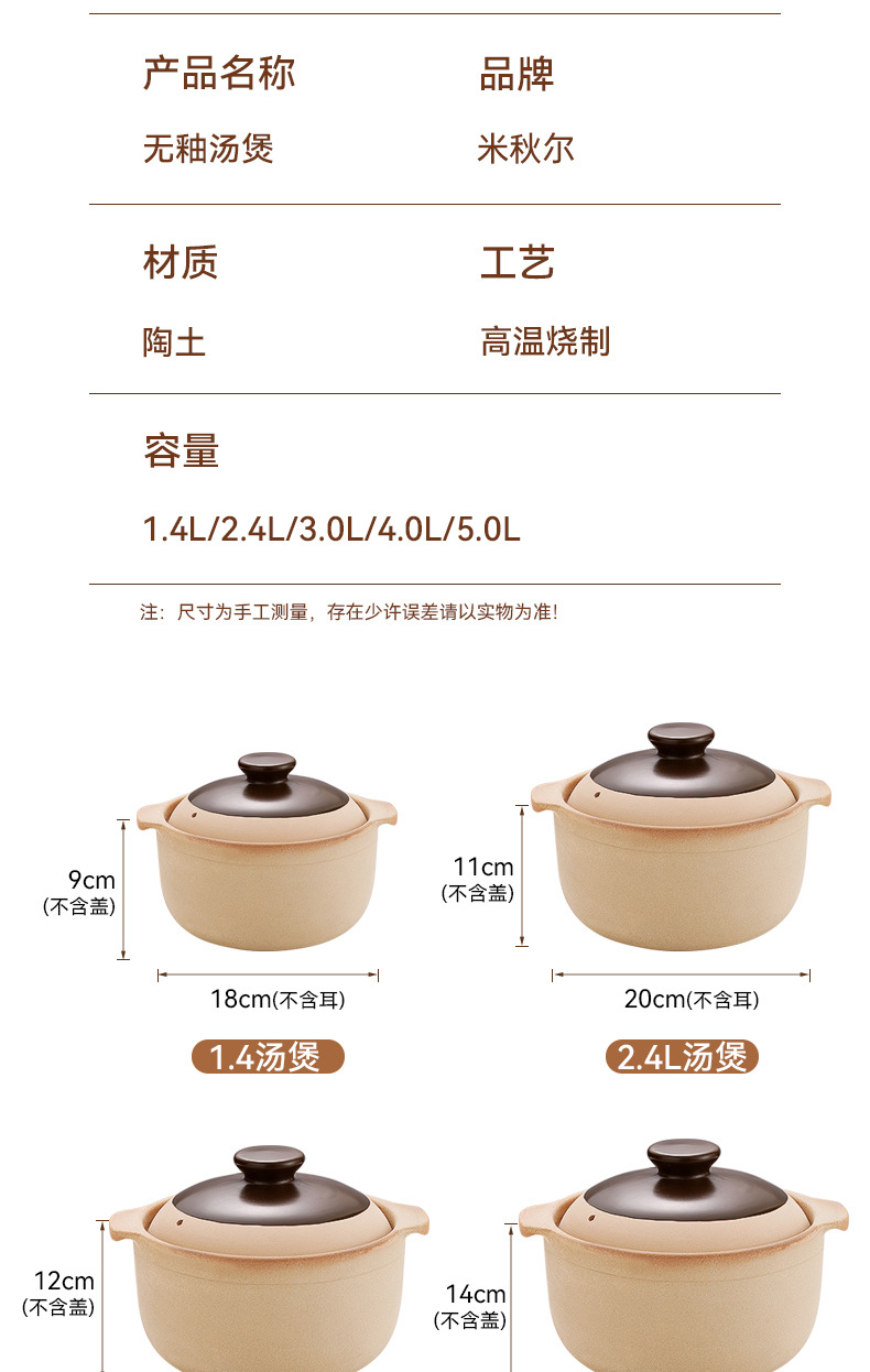 土砂锅煲汤炖锅家用燃气灶专用老式小沙锅瓦煲干烧陶瓷石锅煲仔饭