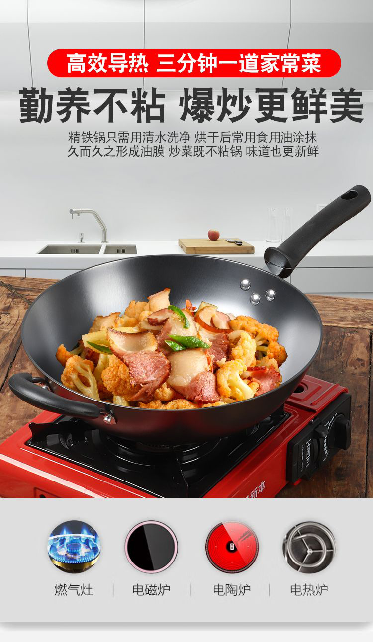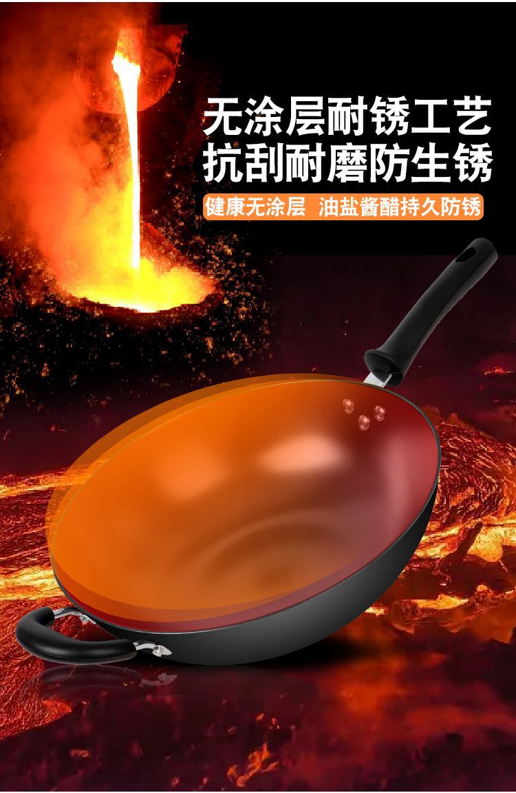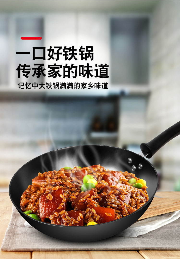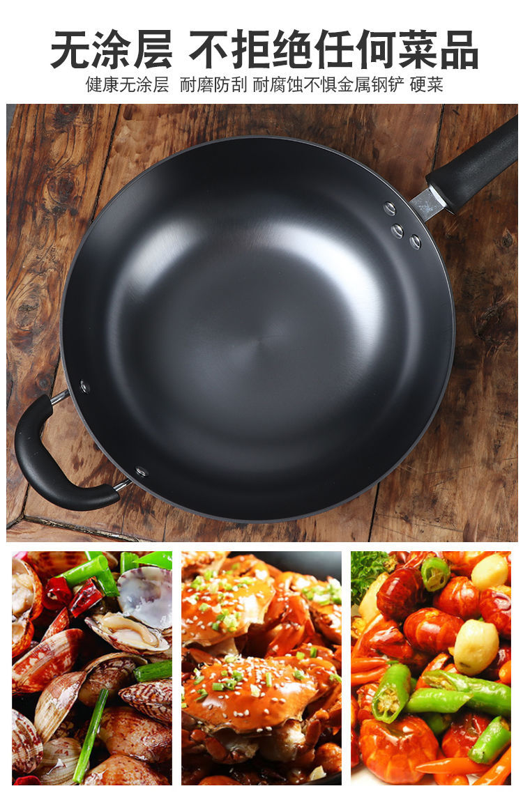 炒菜铁锅家用炒锅老式平底锅电磁炉燃气灶专用炒菜锅不粘锅无涂层