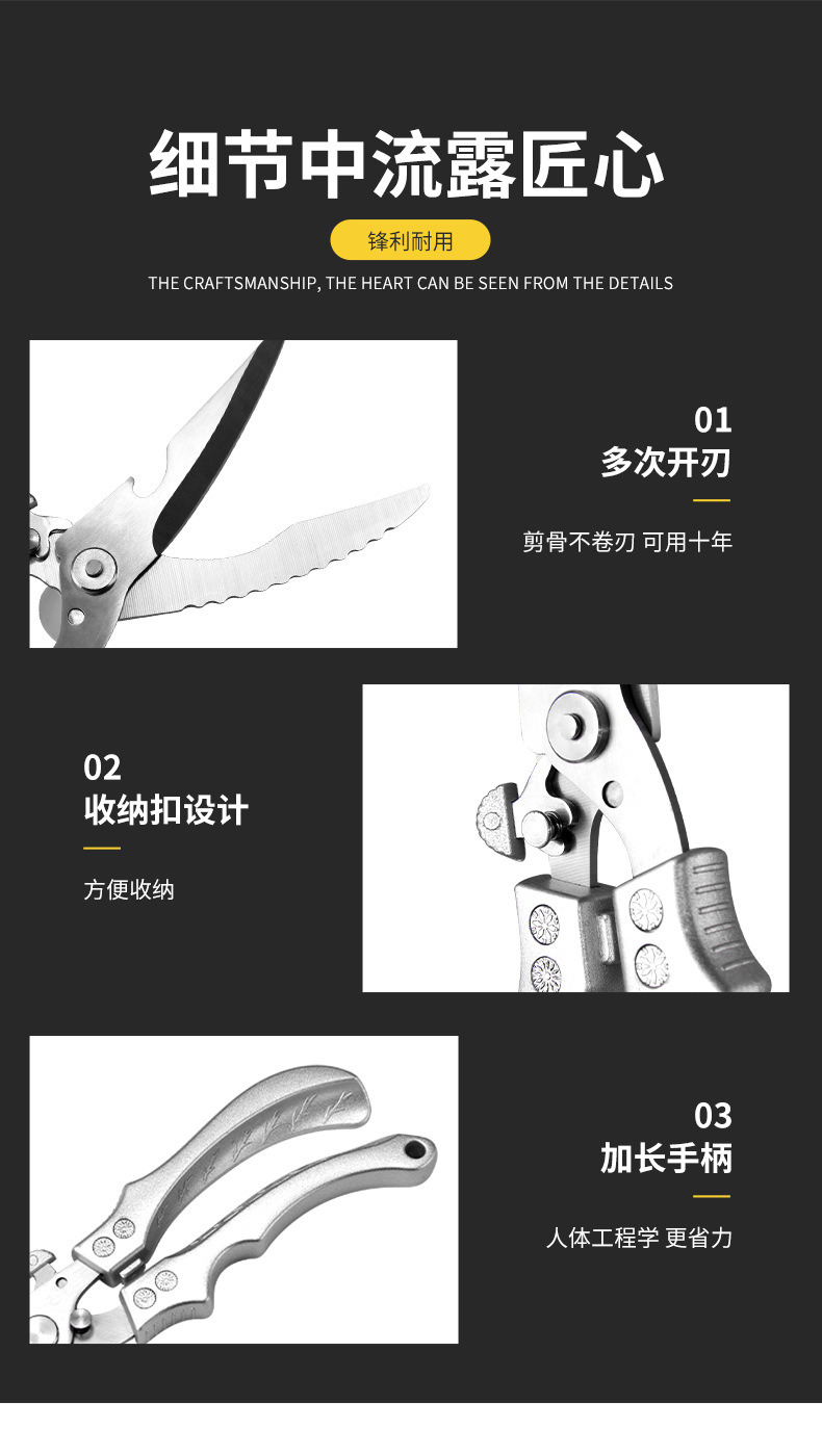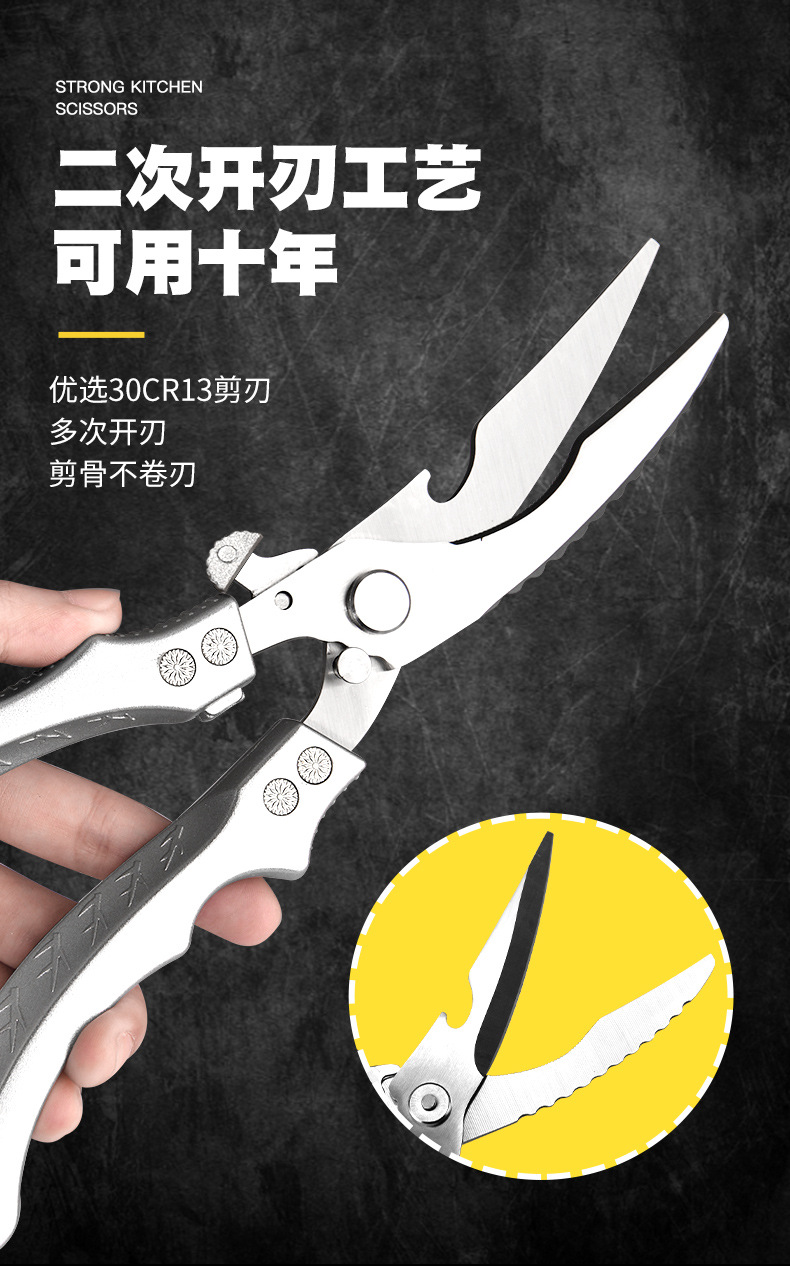 多功能剪厨房剪刀家用不锈钢厨房剪刀高硬度锋利鸡骨剪专用可批发
