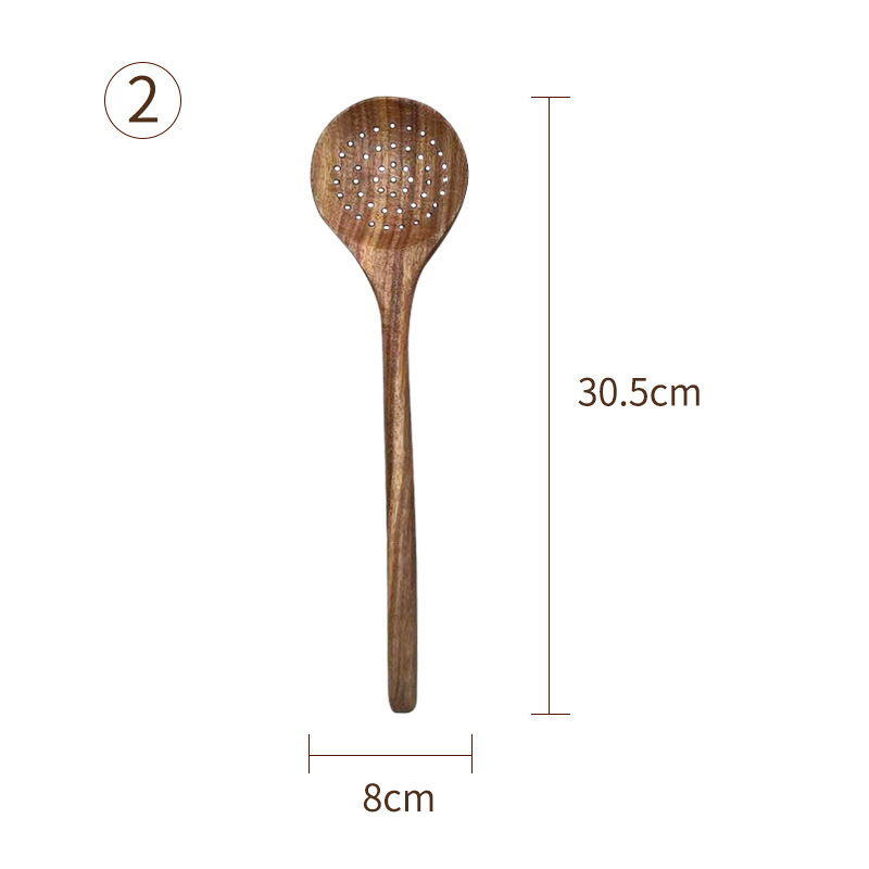 柚木锅铲家用不粘锅木质炒菜铲子厨具长柄圆柄木铲煎铲沙拉勺叉子