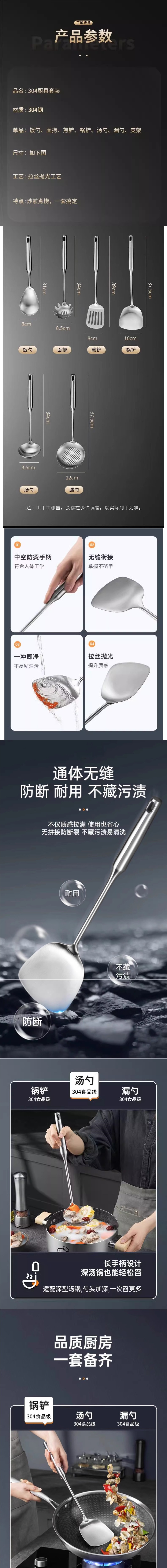 德国加厚304不锈钢炒菜铁铲子锅铲煎铲汤勺家用厨具套装全套加长
