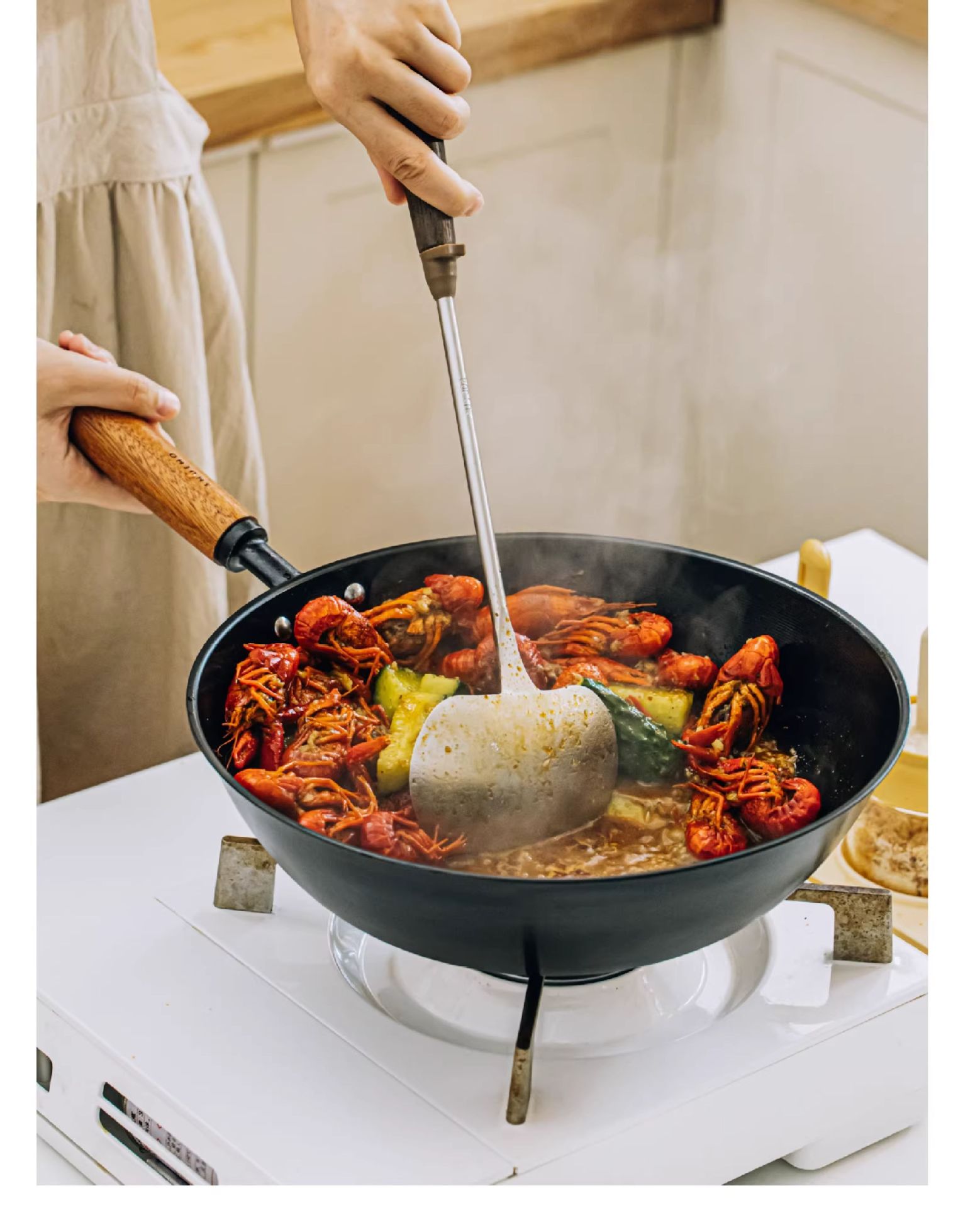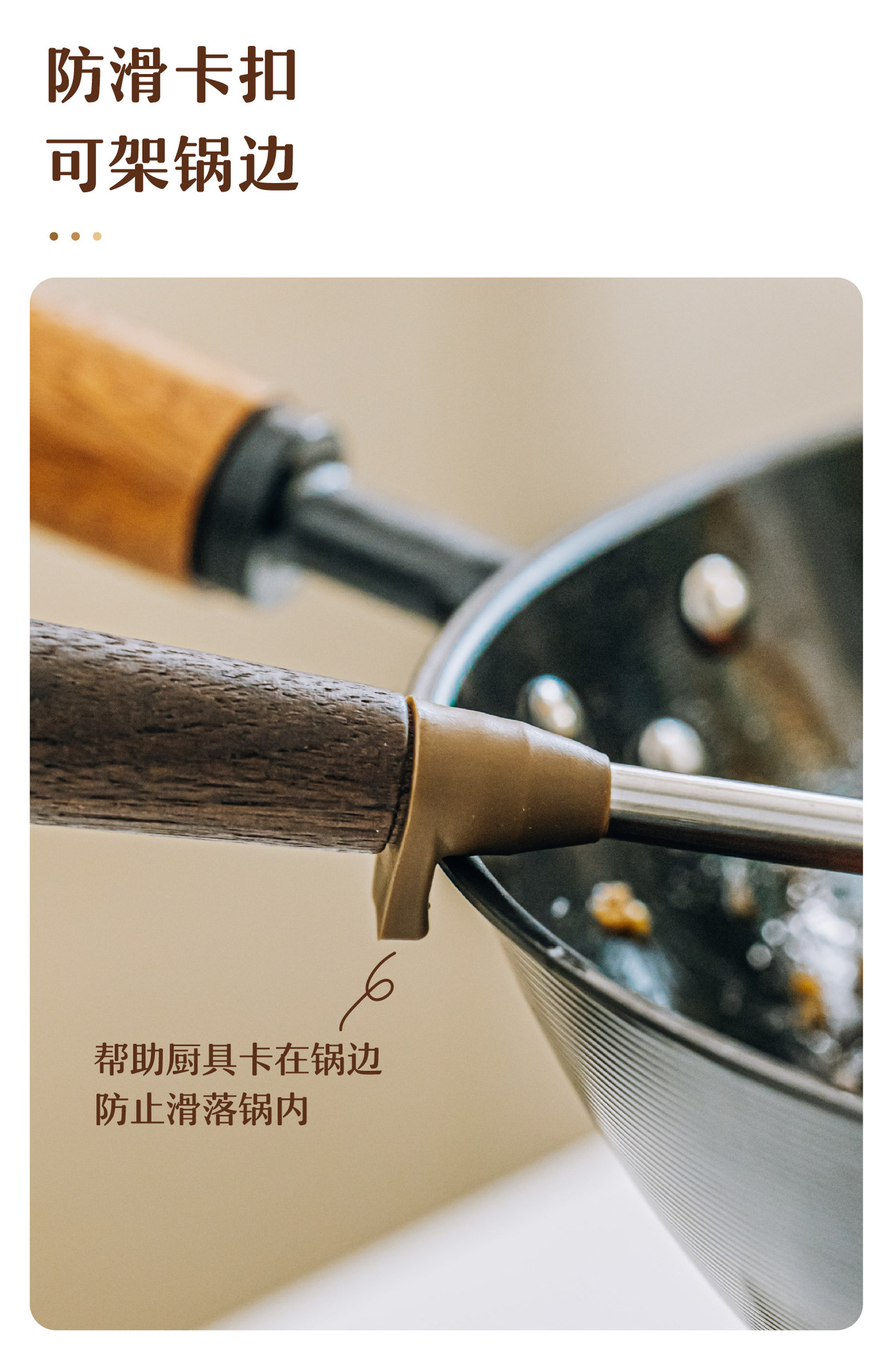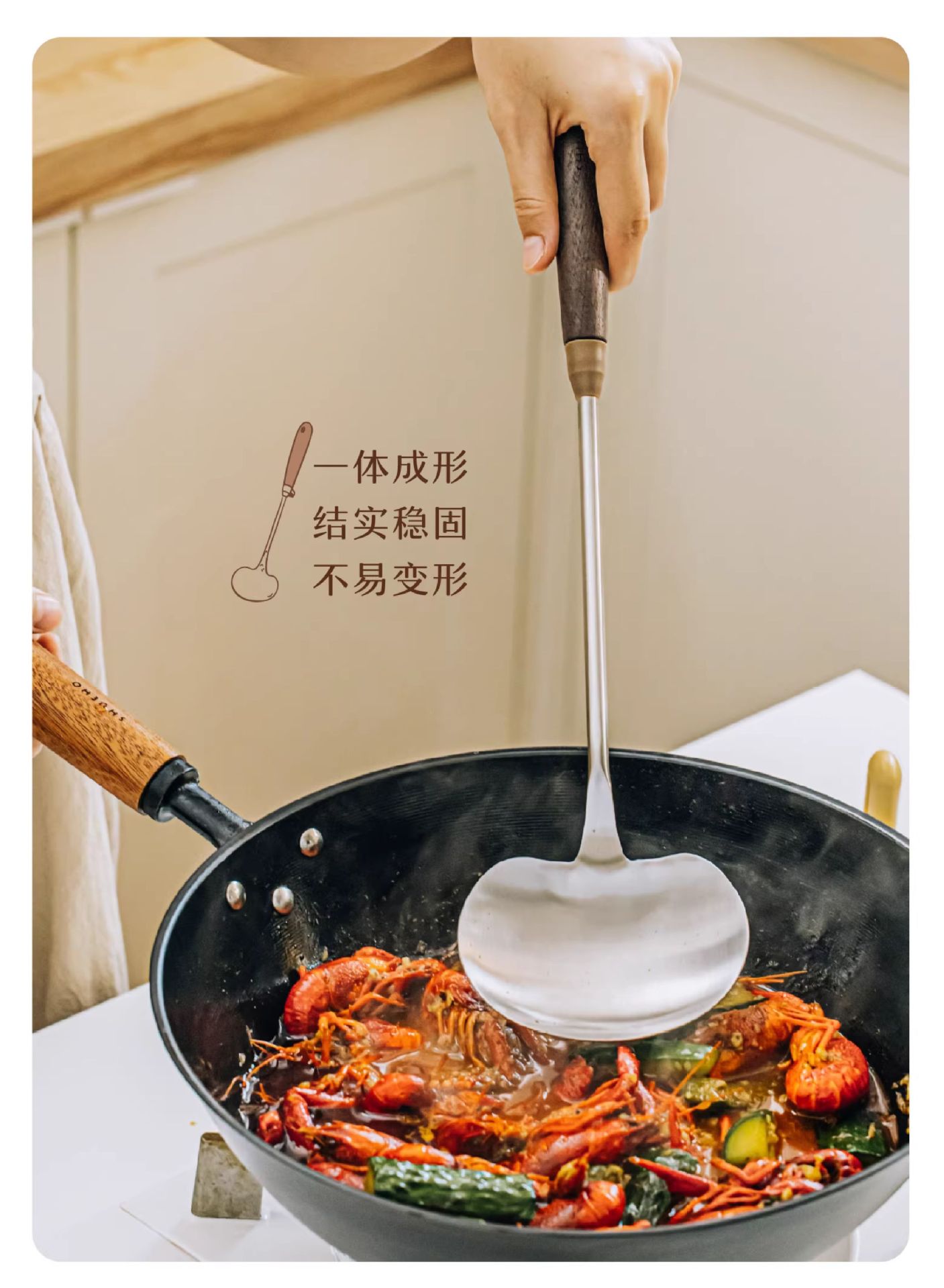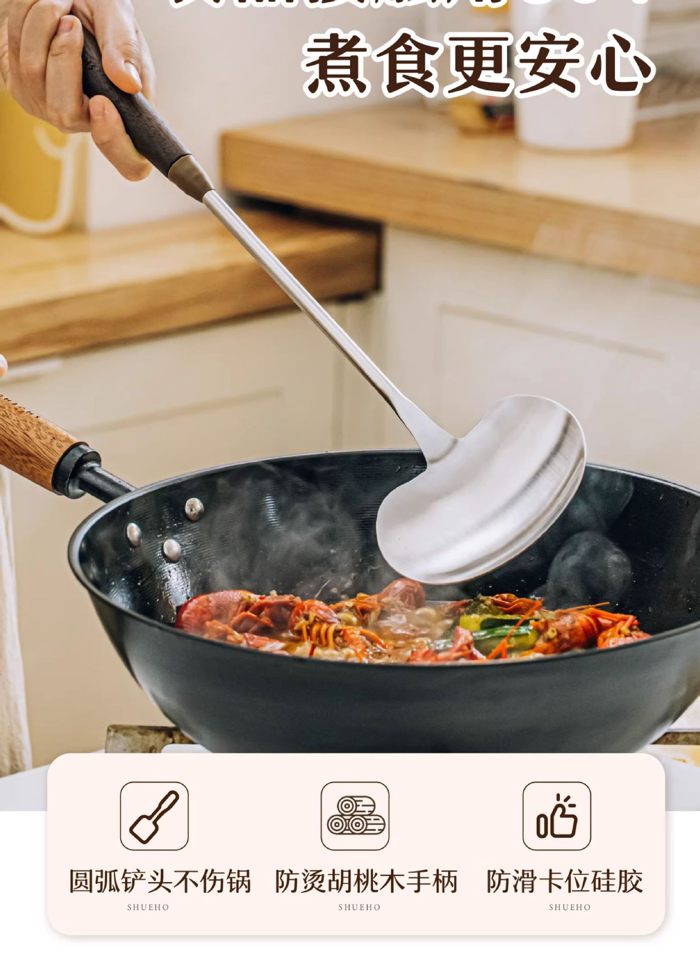 新款胡桃木迷你蘑菇头铲子辅食不锈钢小锅铲家用炒勺铁锅炒菜套装