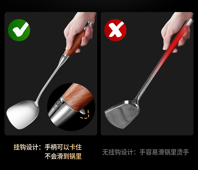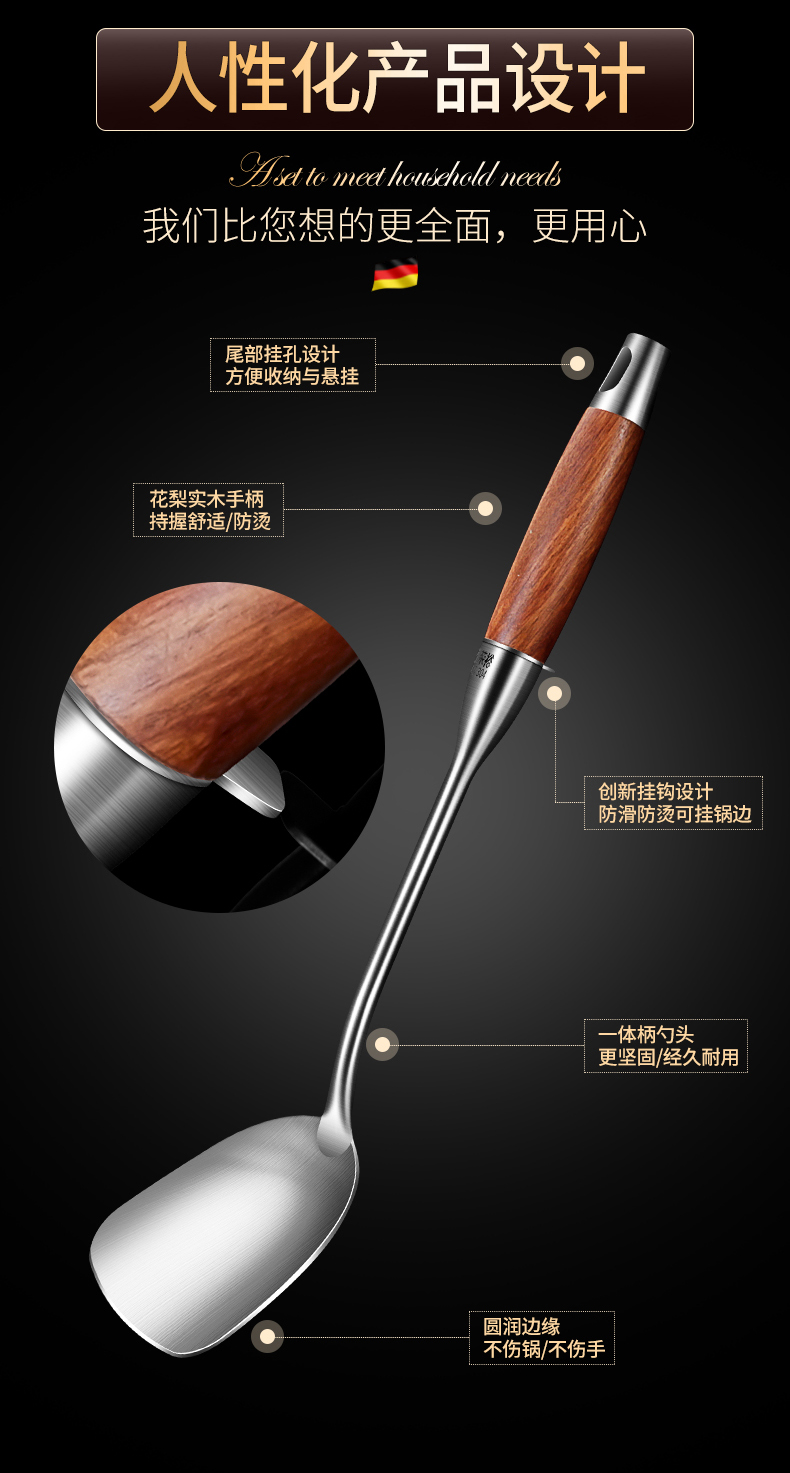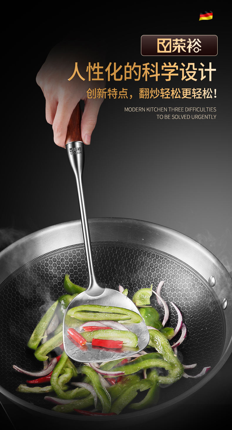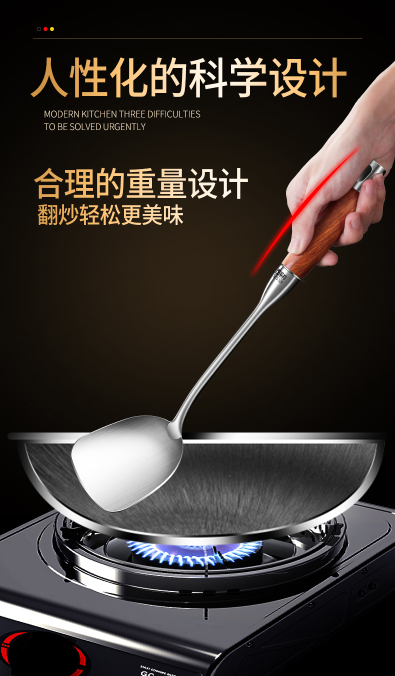 锅铲304不锈钢炒菜铲子厨房家用木质手柄铁炒铲锅勺厨具套装塘祥