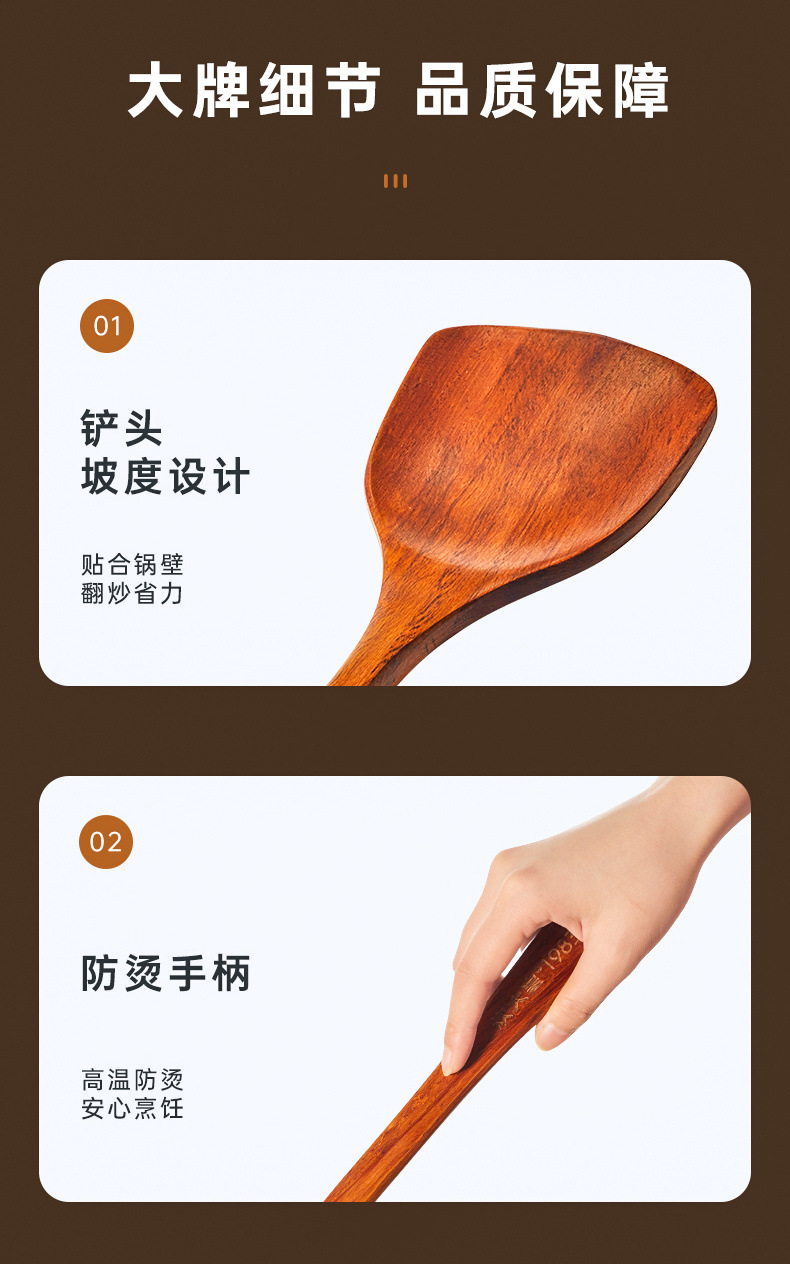炊大皇炒菜铲子家用炒饭不伤锅柯木铲饭勺三件套木铲汤勺饭铲