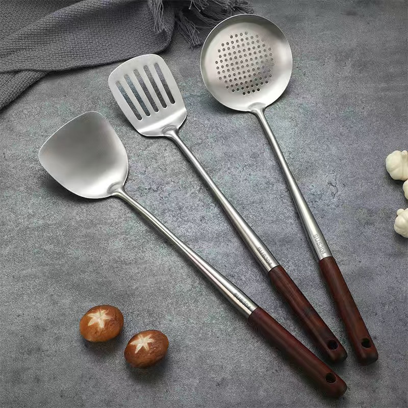 304不锈钢炒勺炒铲家用炒菜铲子汤勺子加长木柄厨具套装厨师锅铲