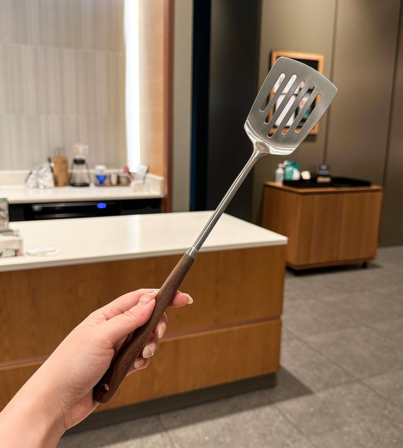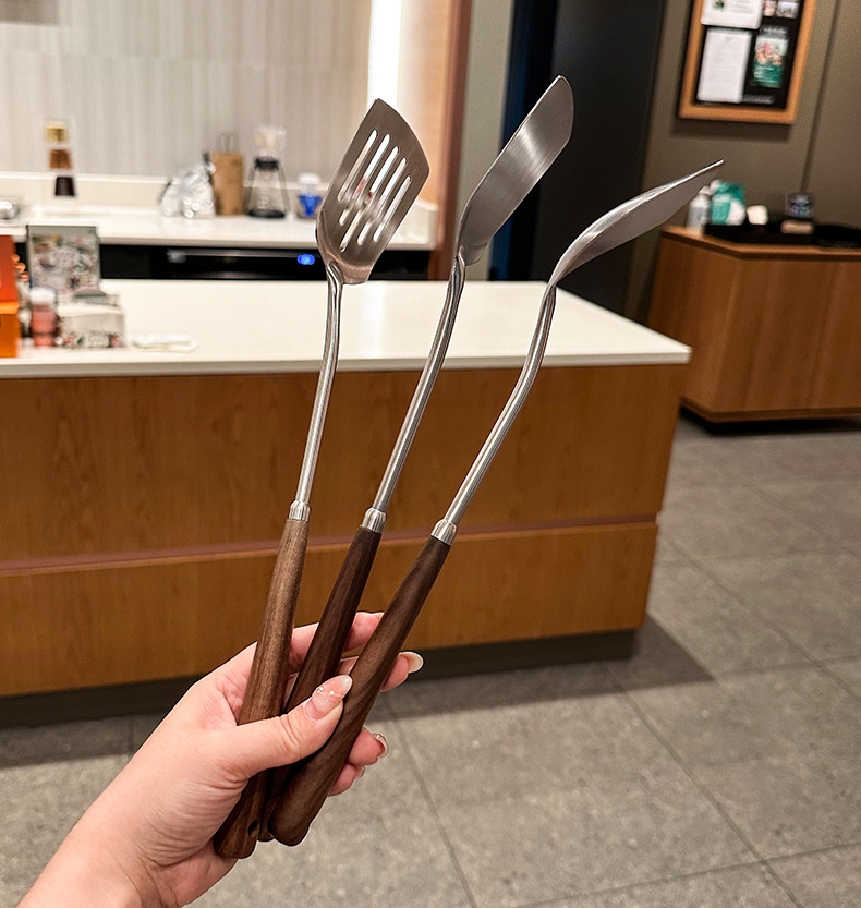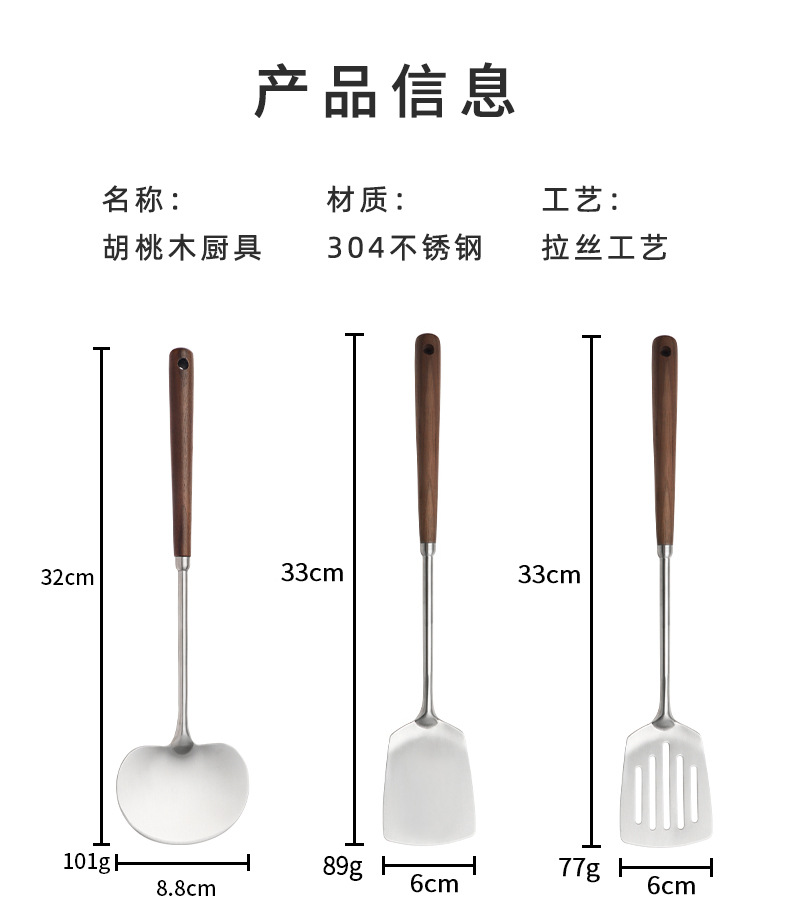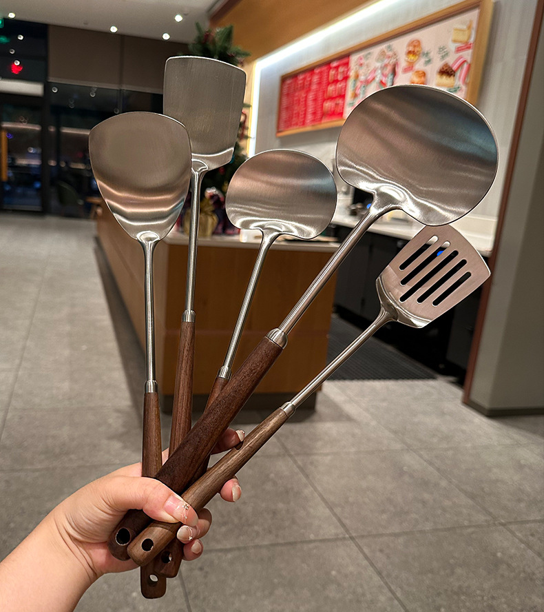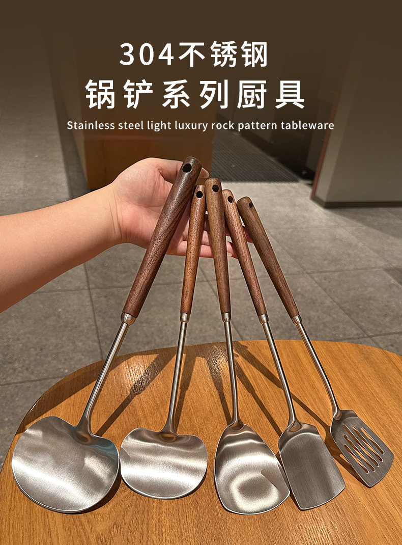 【密文】304不锈钢胡桃木炒煎铲 家用厨房炒菜煎肉迷你苹果蘑菇铲