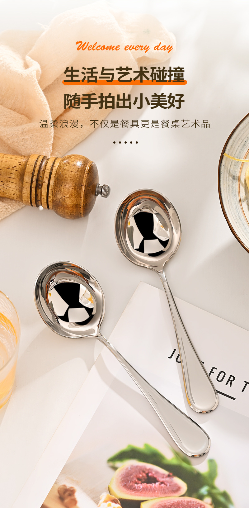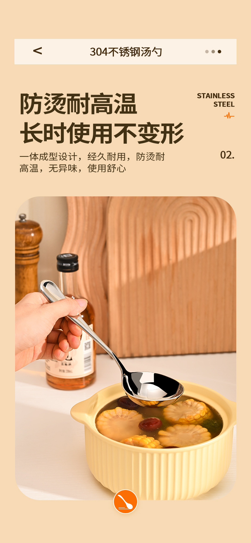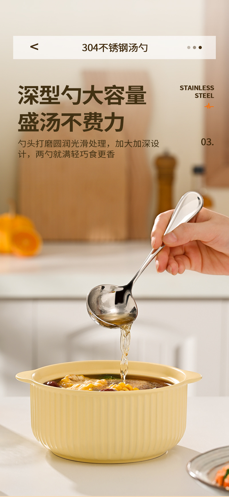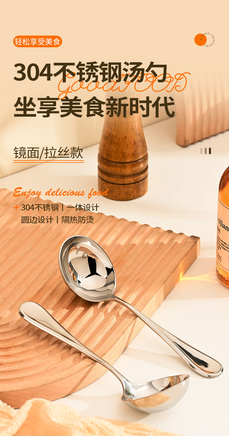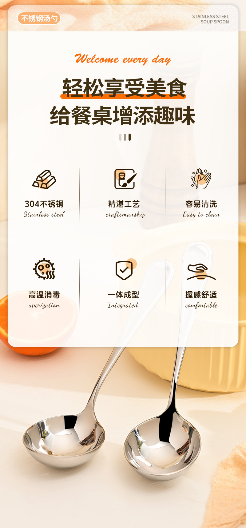 定制加厚304长柄喝粥公用汤勺大勺盛汤 加深火锅勺子喝汤不锈钢