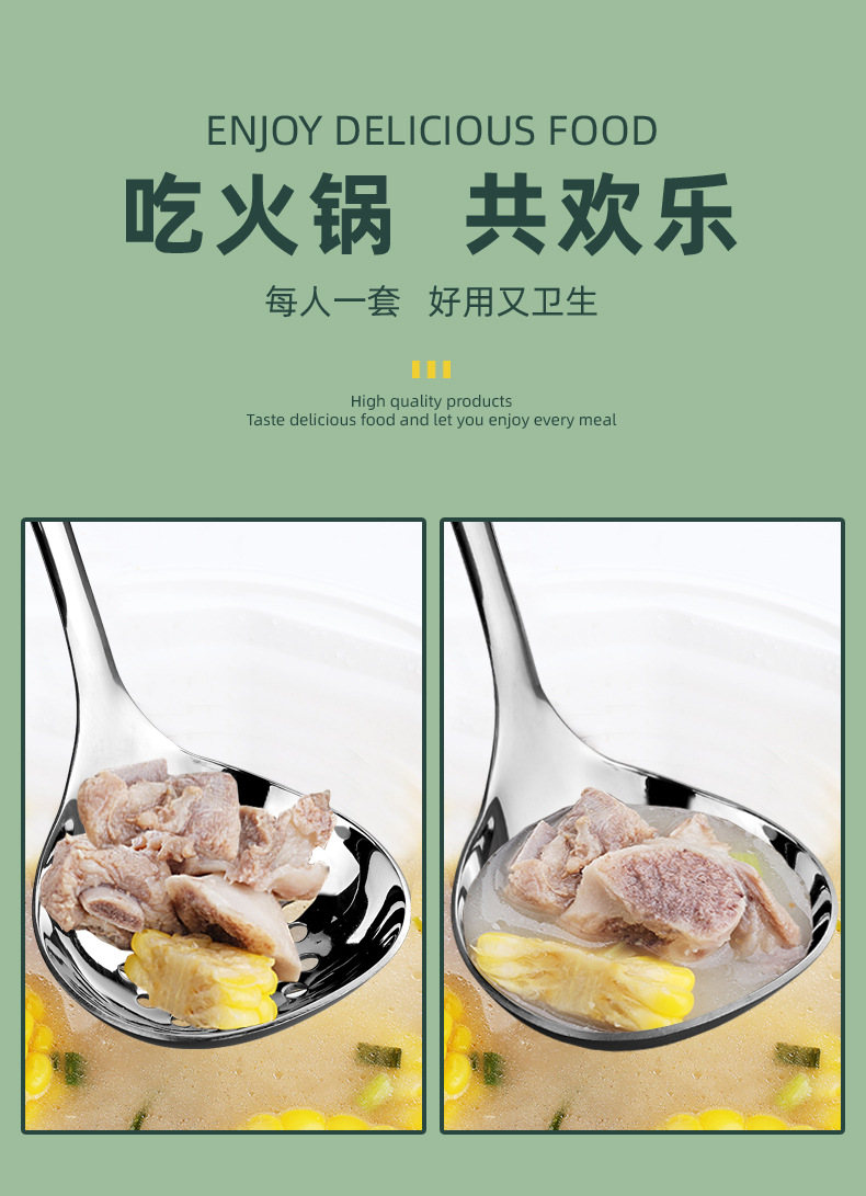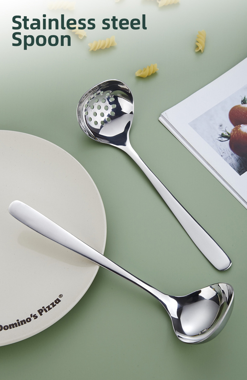 304不锈钢汤勺公用勺加厚加深盛汤大头勺家用火锅勺漏勺套装批发