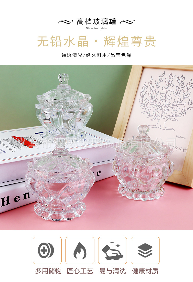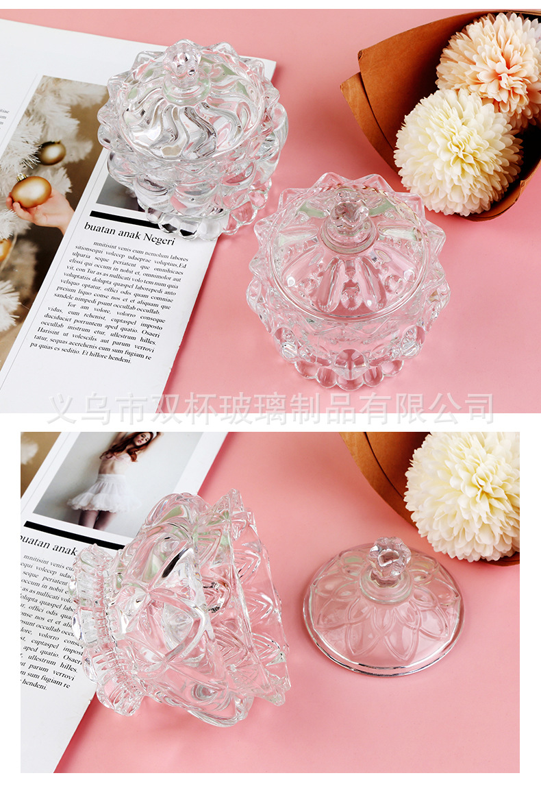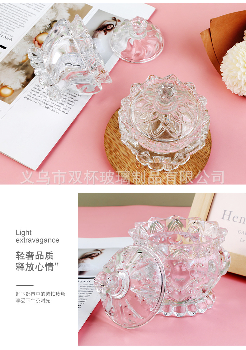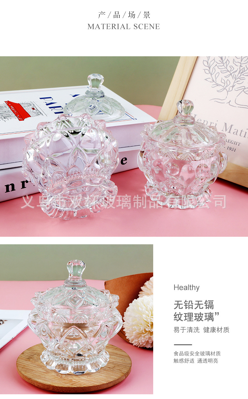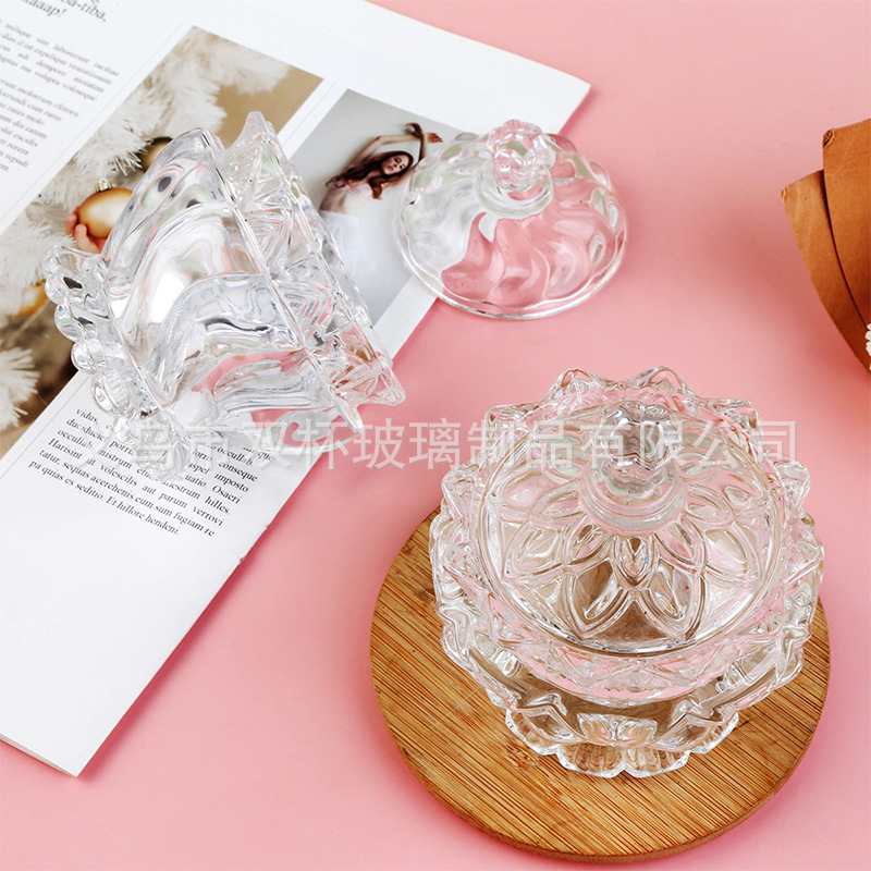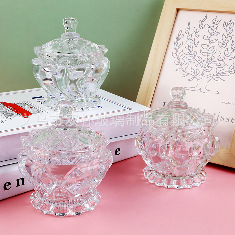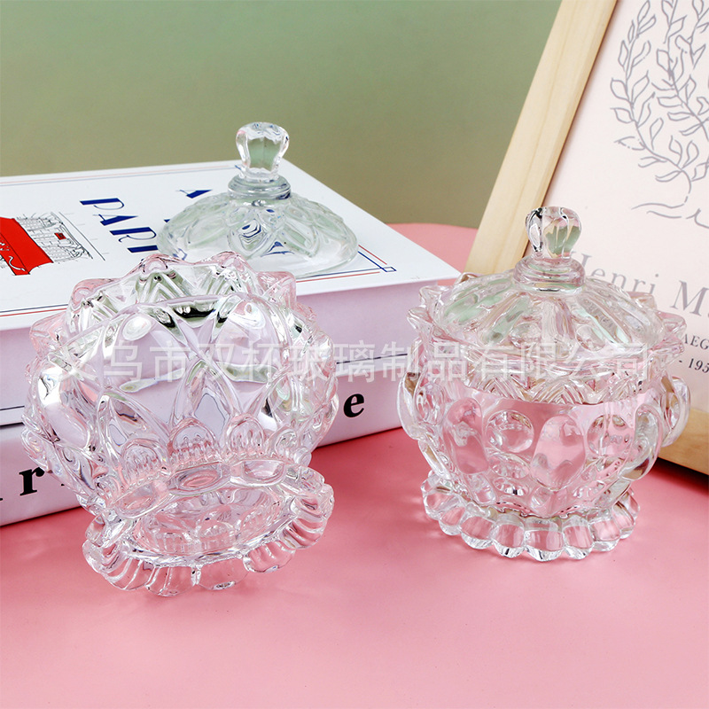 轻奢复古透明玻璃带盖糖果罐零食首饰收纳盒香薰蜡烛杯婚庆摆件