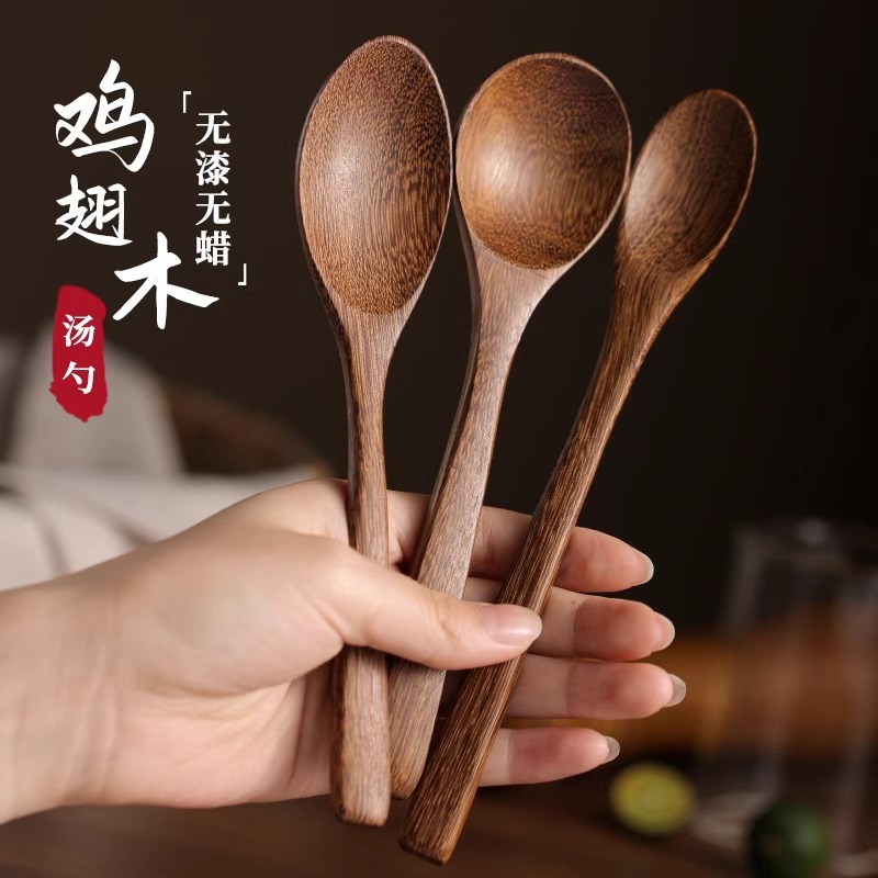 木勺子吃饭用长柄汤匙食品级木头调羹勺家用无漆鸡翅木木勺蜂蜜勺