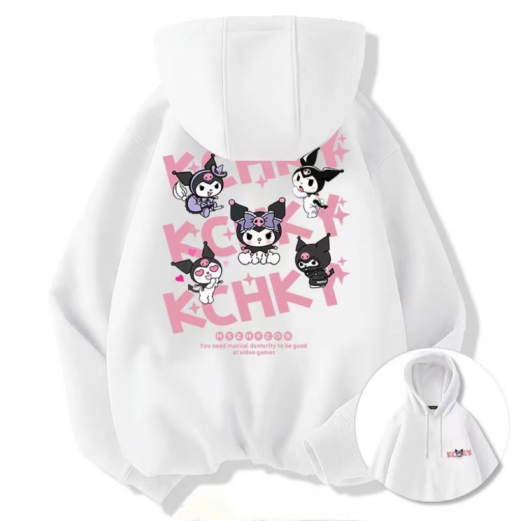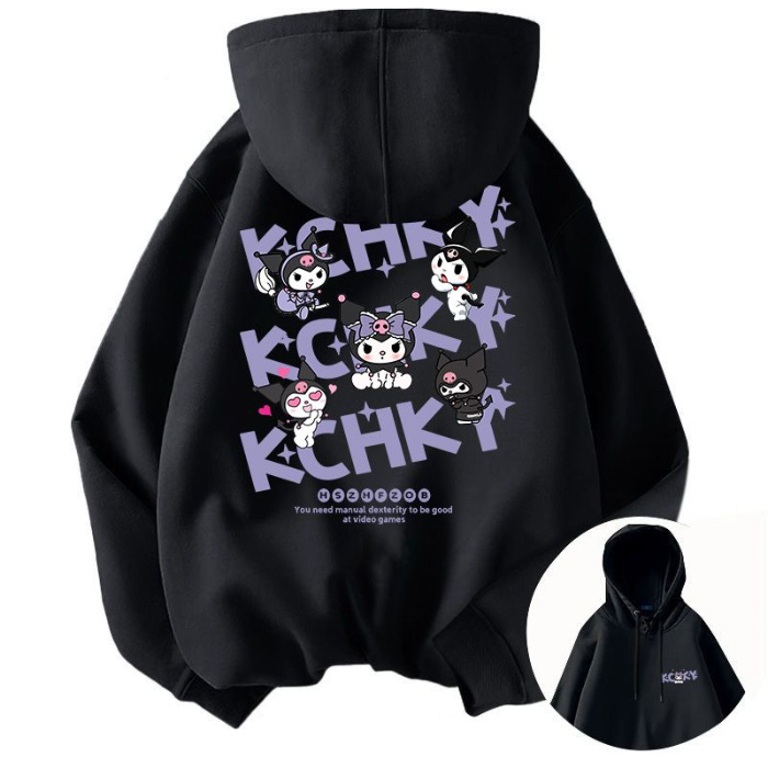 现货代发跨境台湾卡通秋冬季新款库洛米字母连帽卫衣宽松休闲口袋