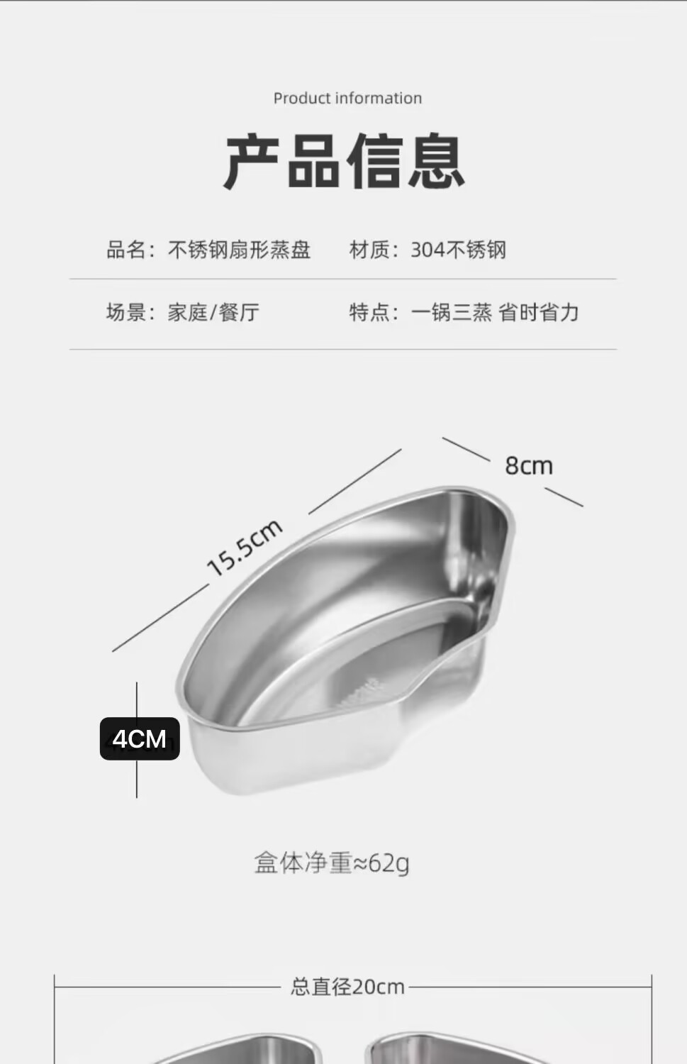 304不锈钢扇形蒸盘蒸盒蒸锅笼屉蒸格电饭煲蒸碗蒸饭神器保鲜盒