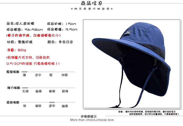 户外防晒遮阳帽男夏季护披肩脖颈防紫外线渔夫帽速干露营登山帽子