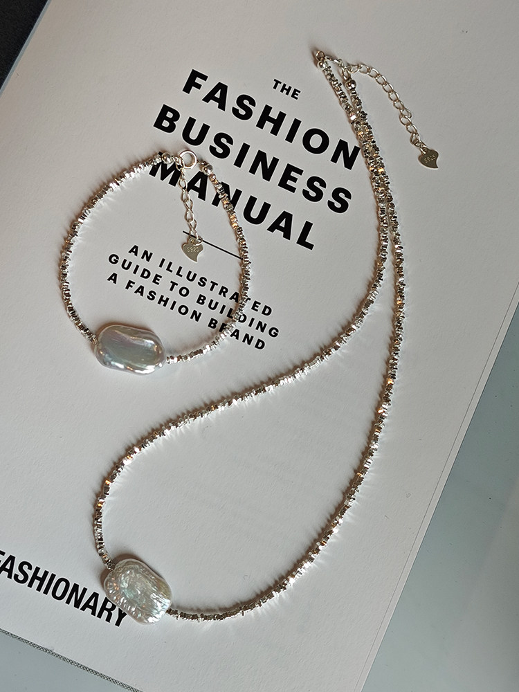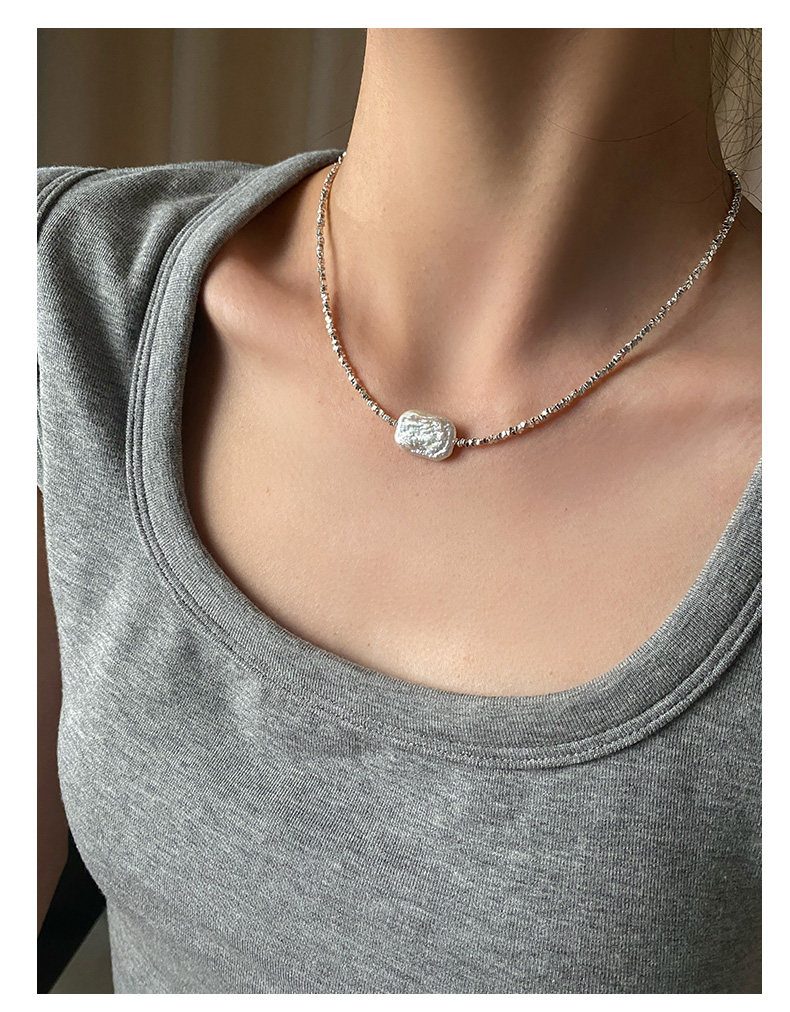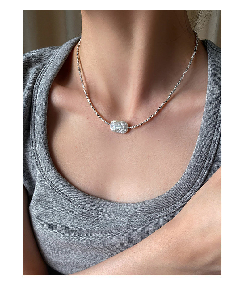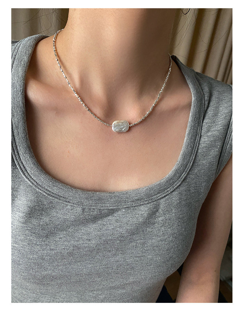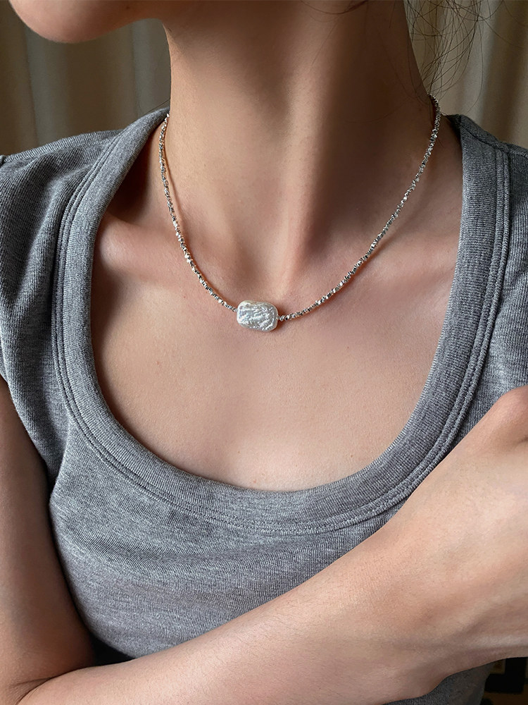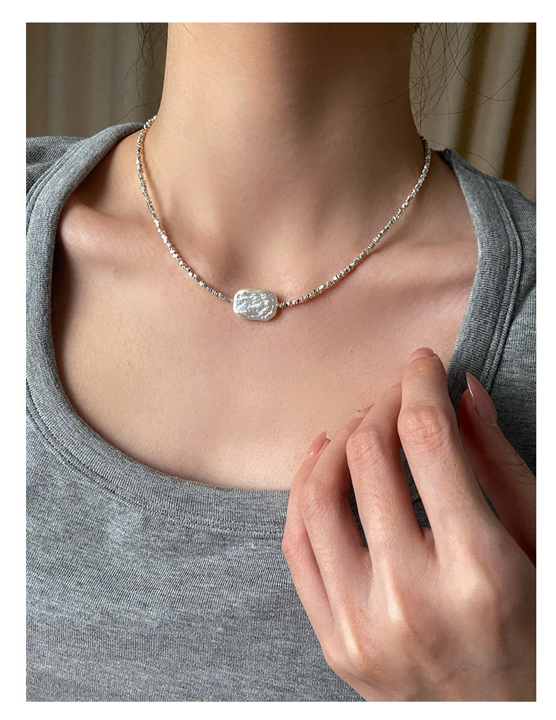 碎银子天然巴洛克珍珠项链女款2025新款纯银不规则锁骨颈链