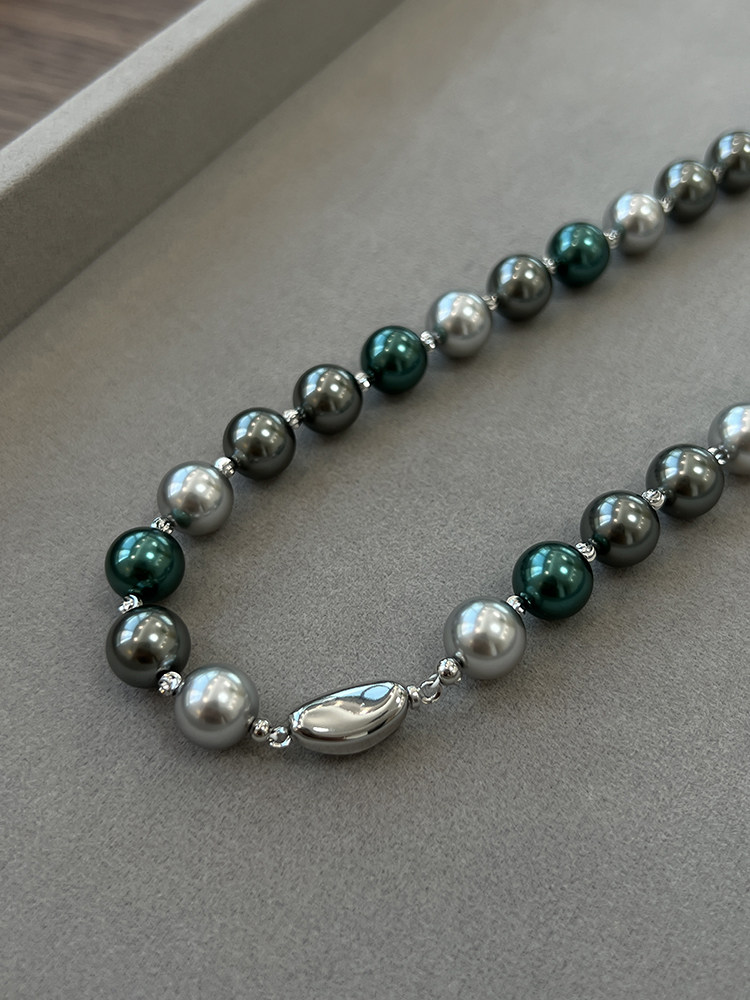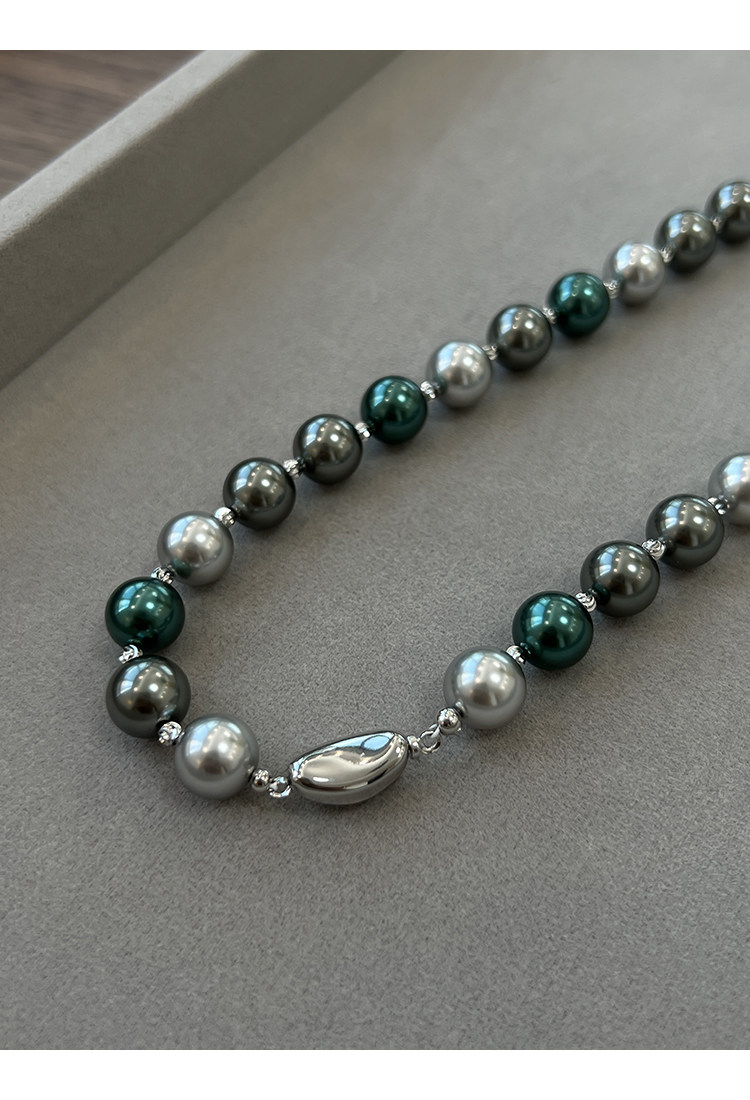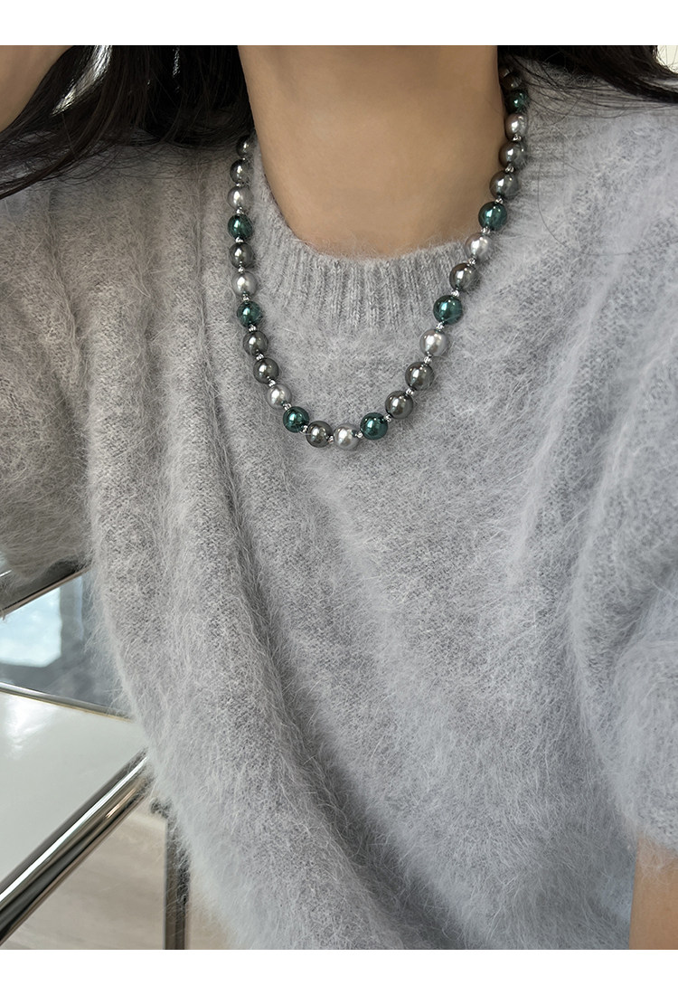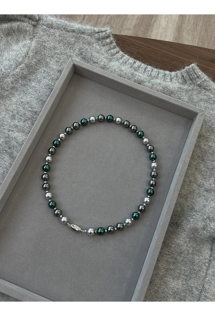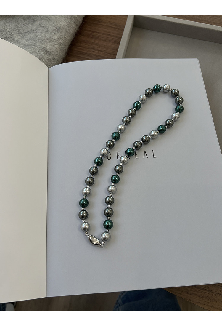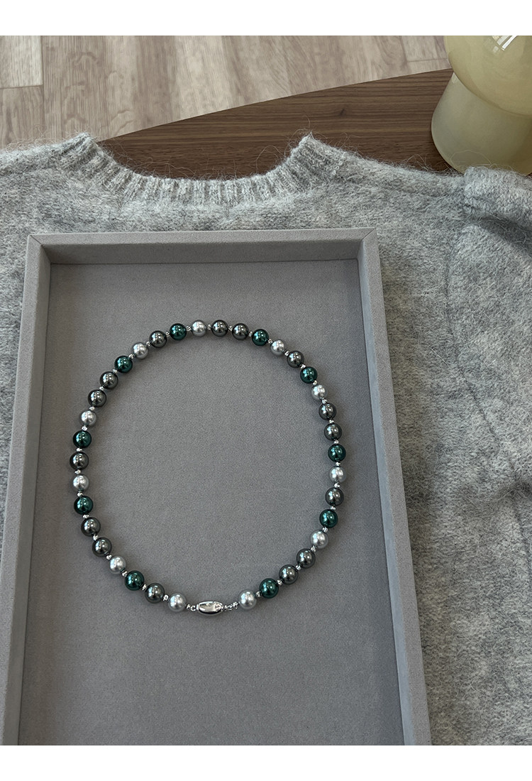 秋冬孔雀绿色混彩珍珠元宝扣打结项链高级感轻奢毛衣链女