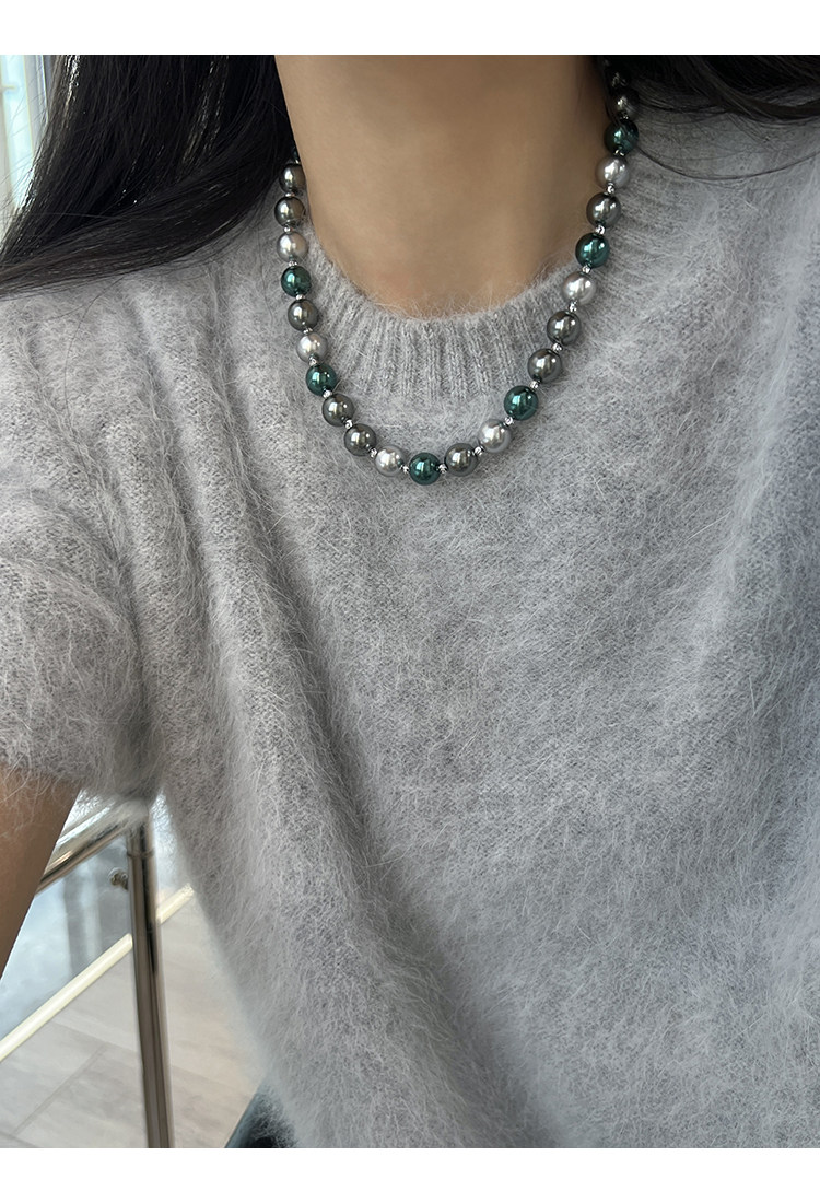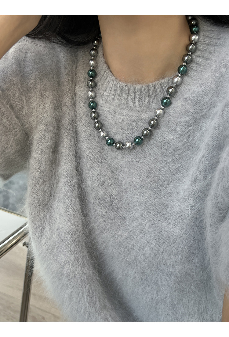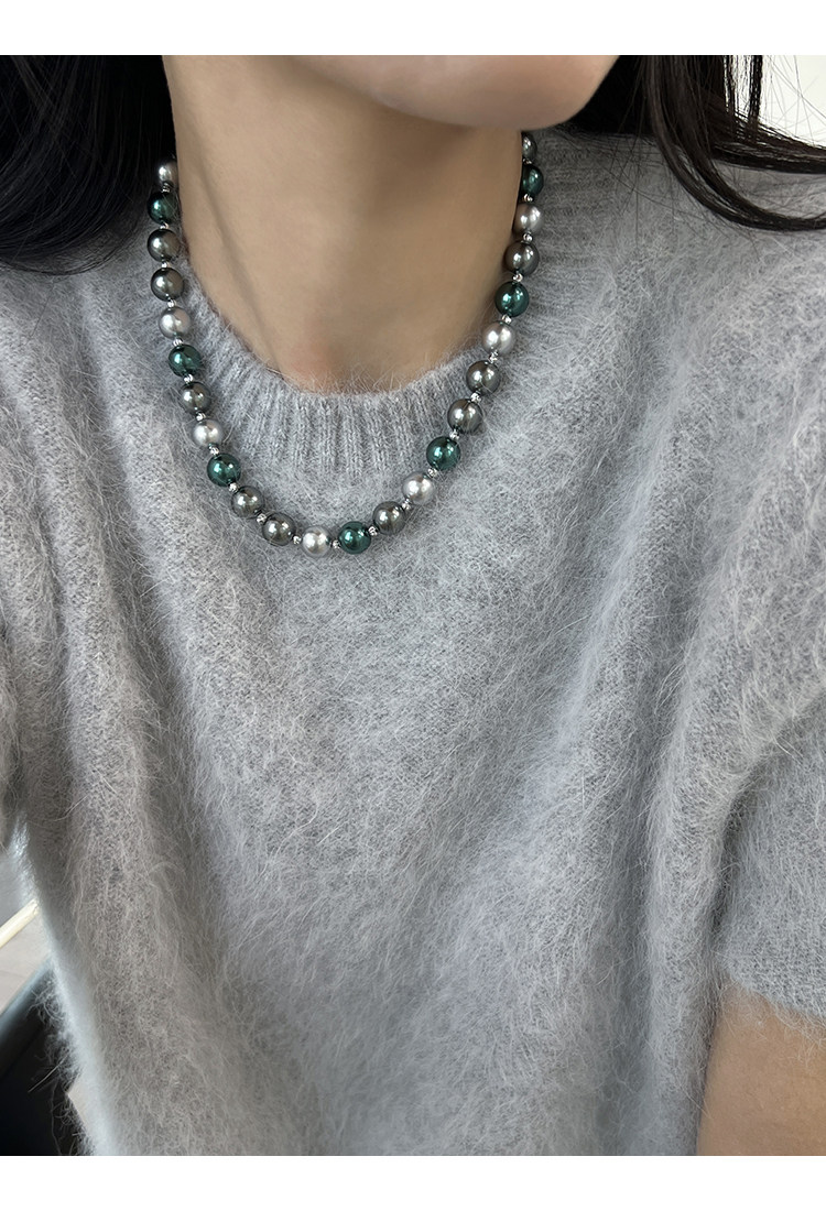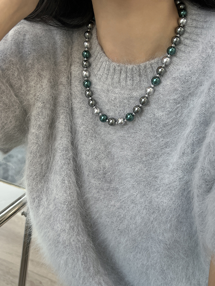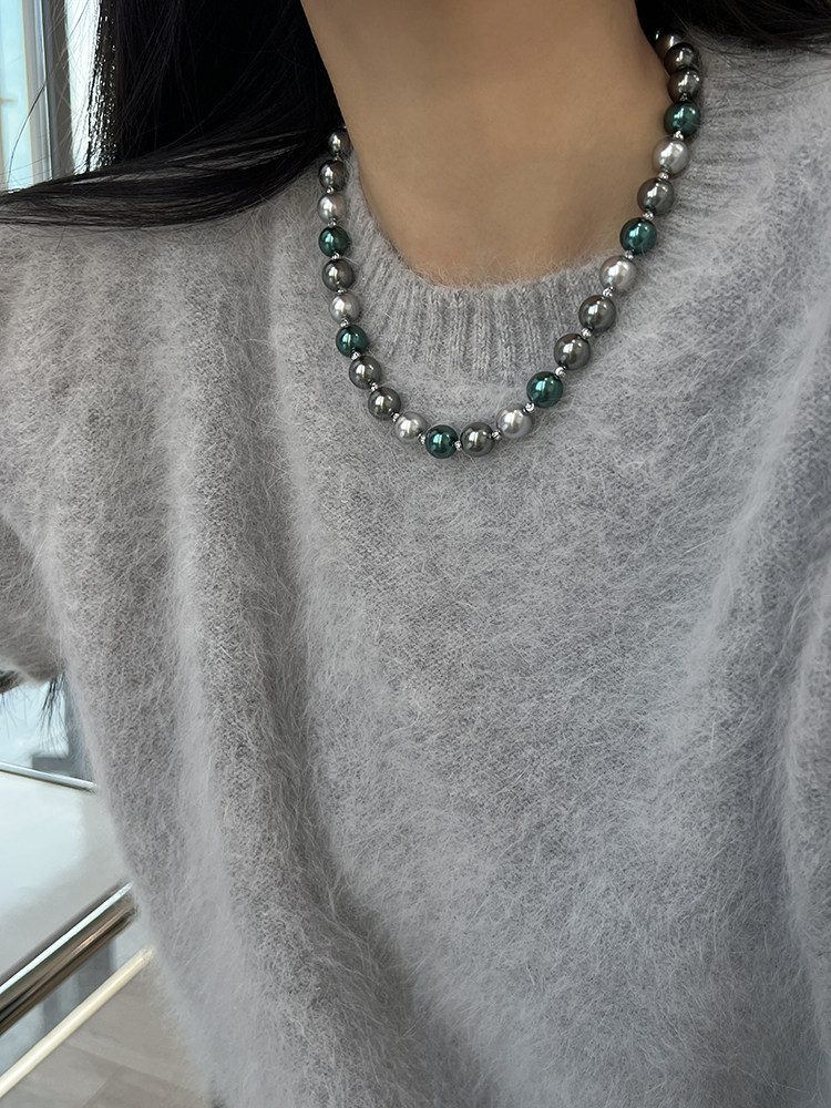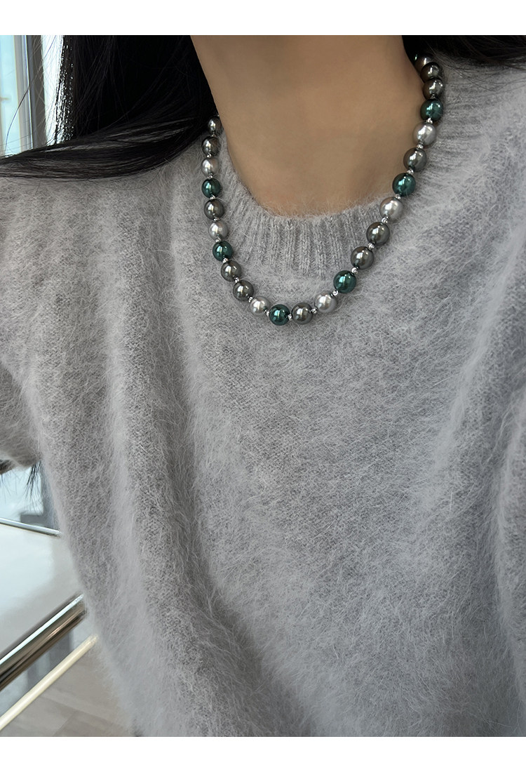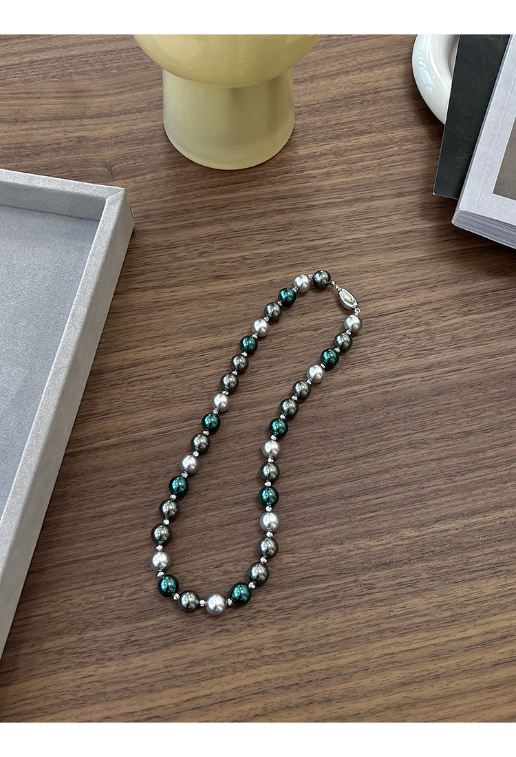 秋冬孔雀绿色混彩珍珠元宝扣打结项链高级感轻奢毛衣链女