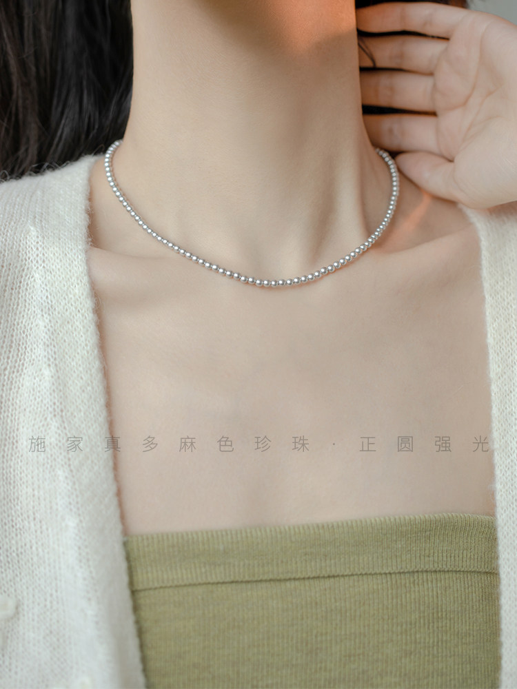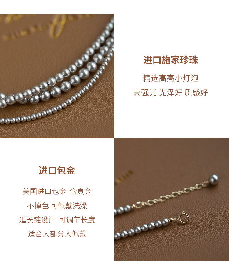 【开春特惠】真多麻灰珍珠施华项链女14K包金轻奢百搭锁骨链ins