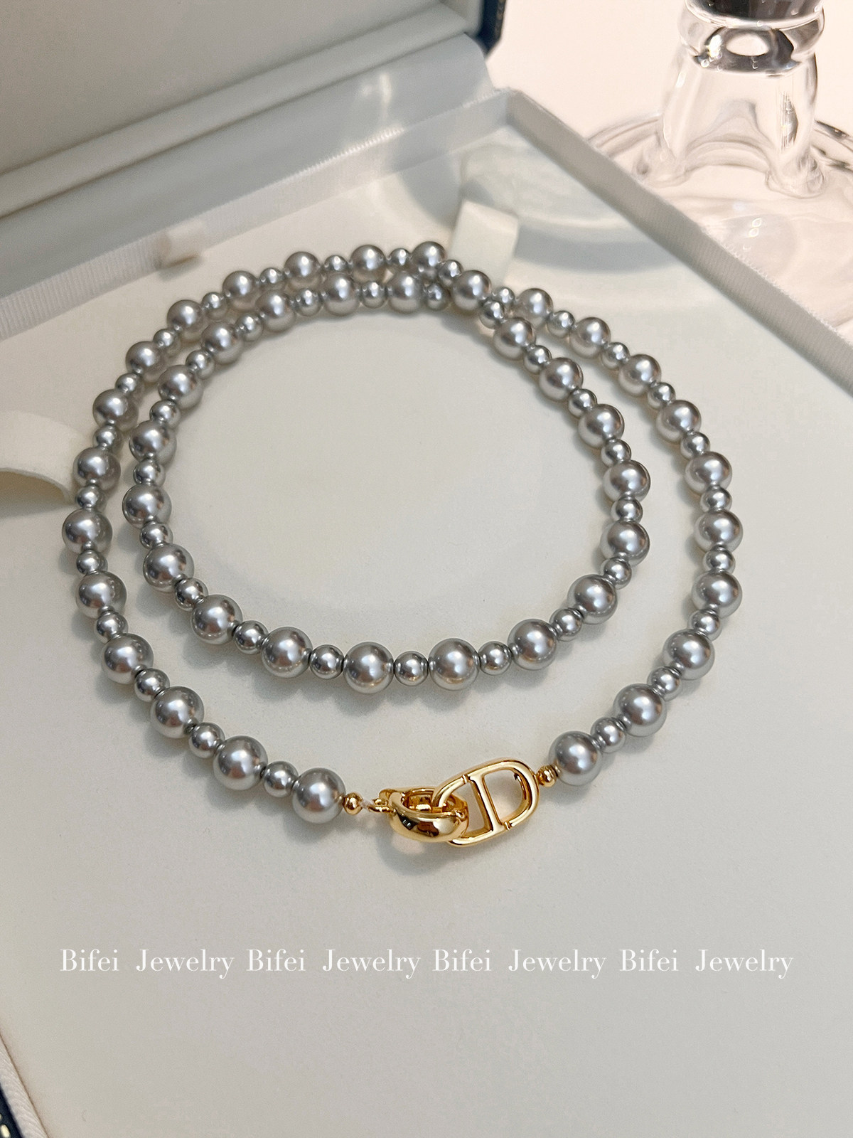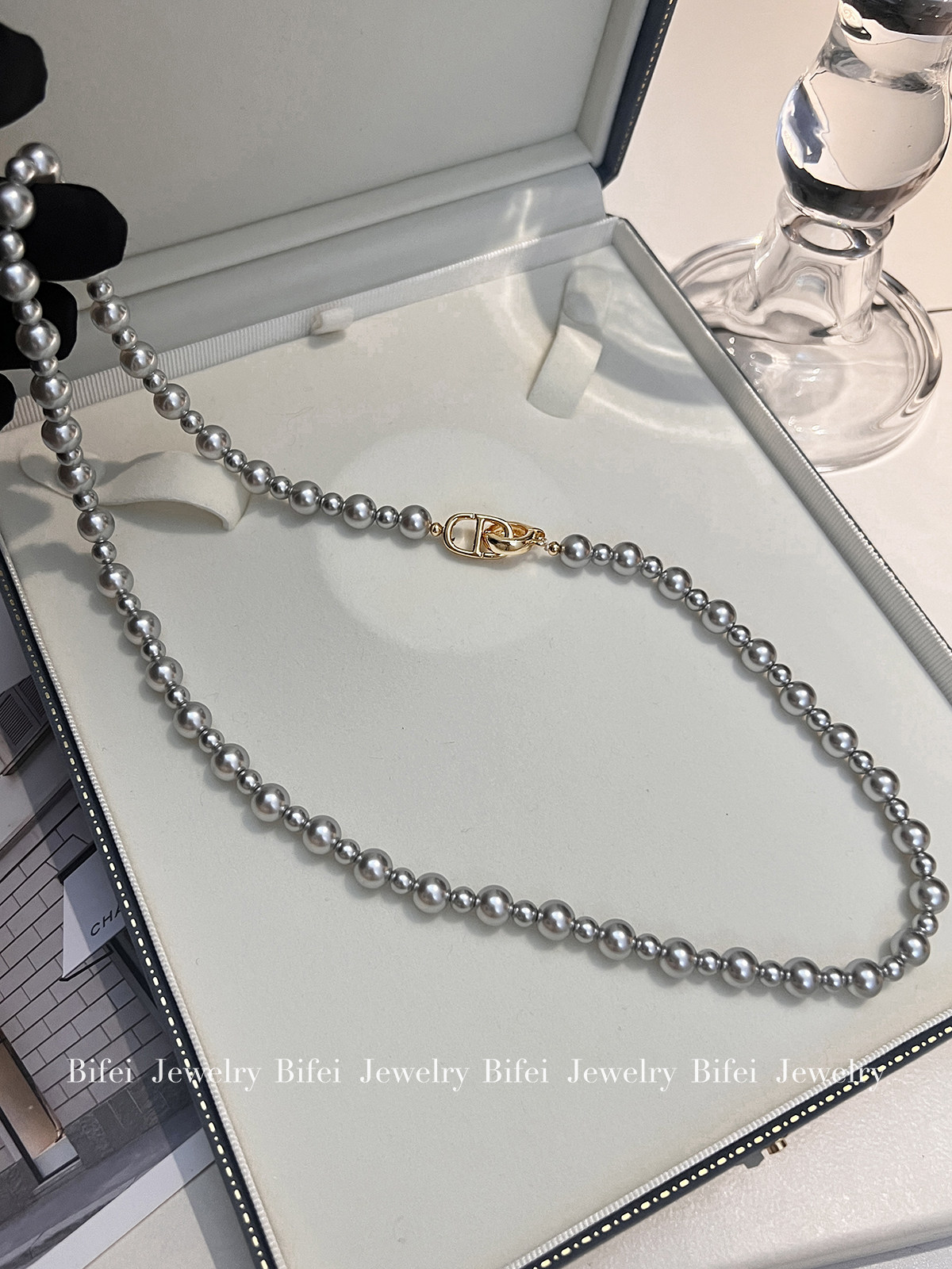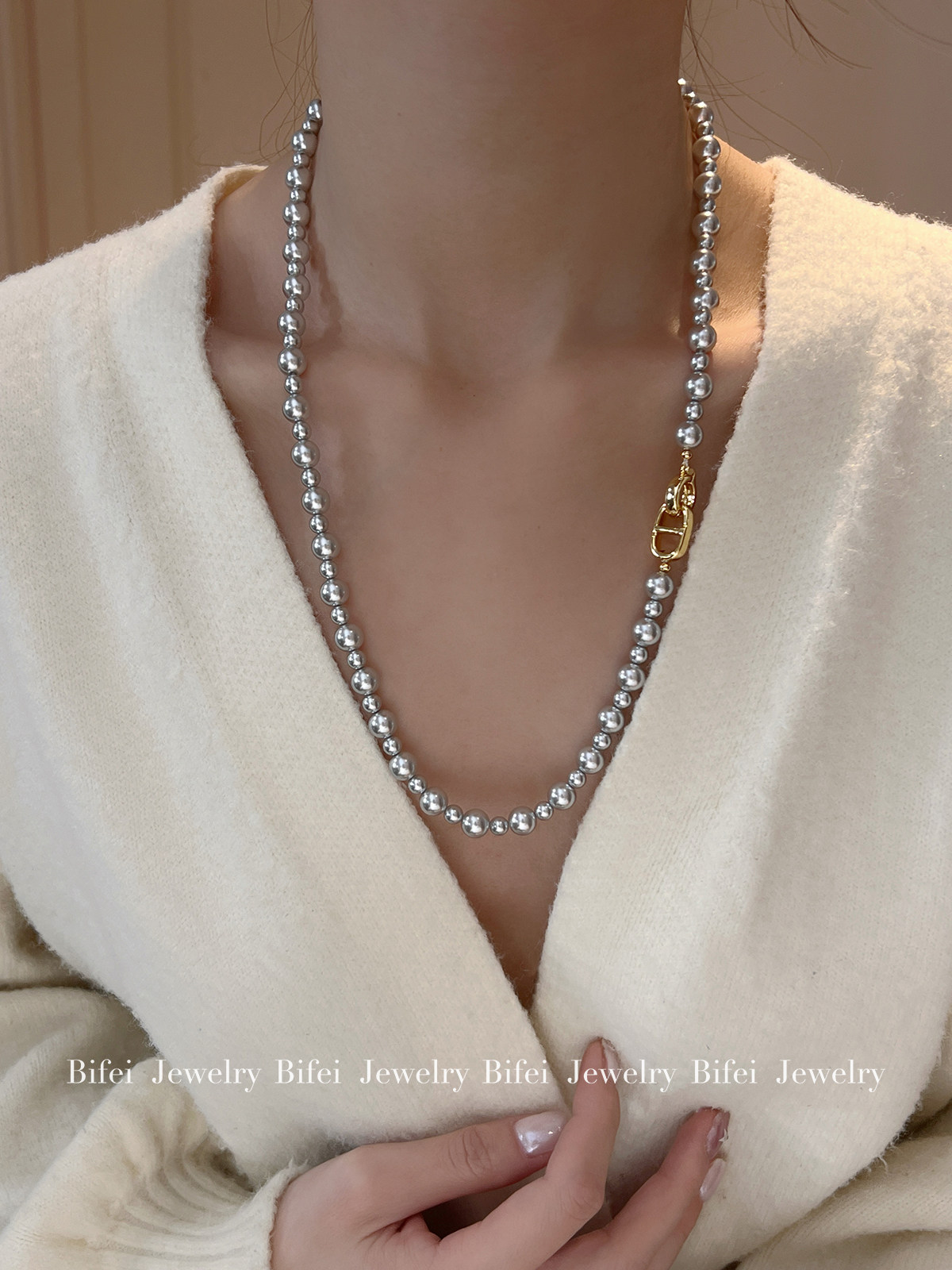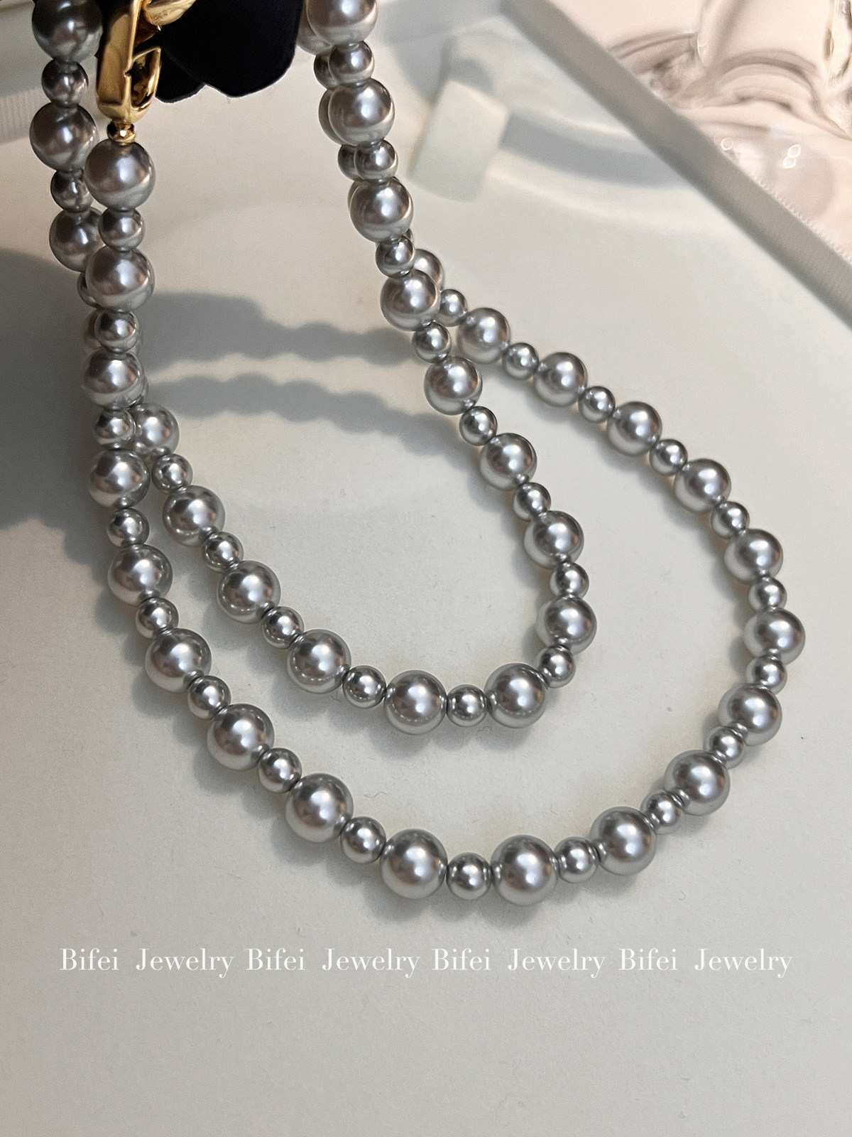 灰色真多麻施家珍珠项链秋冬毛衣链大小颈链2025新款高级感配饰女