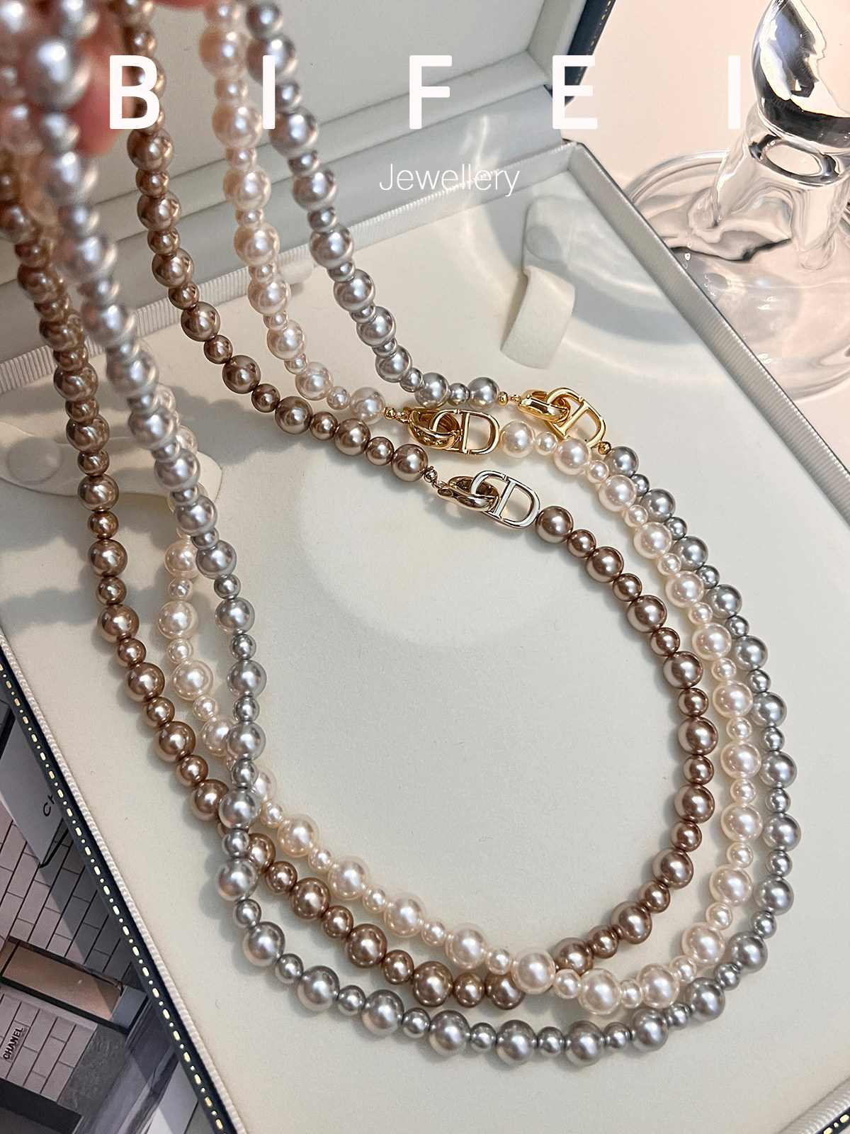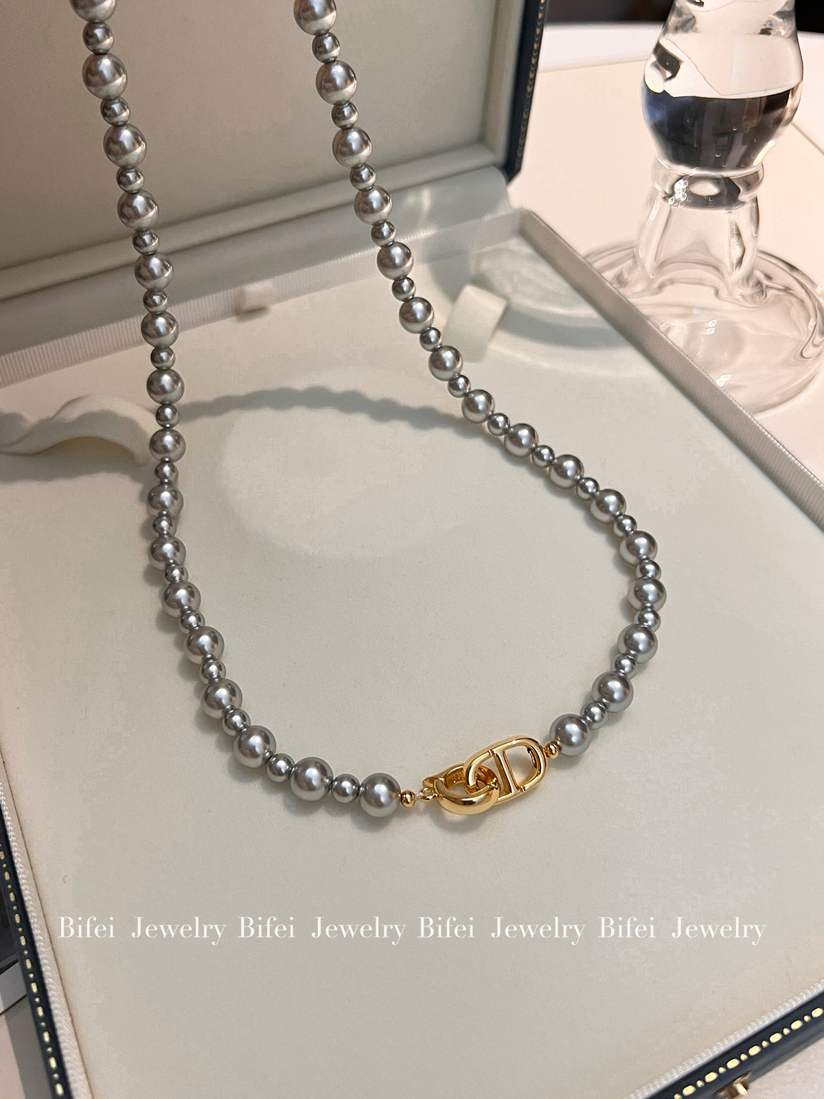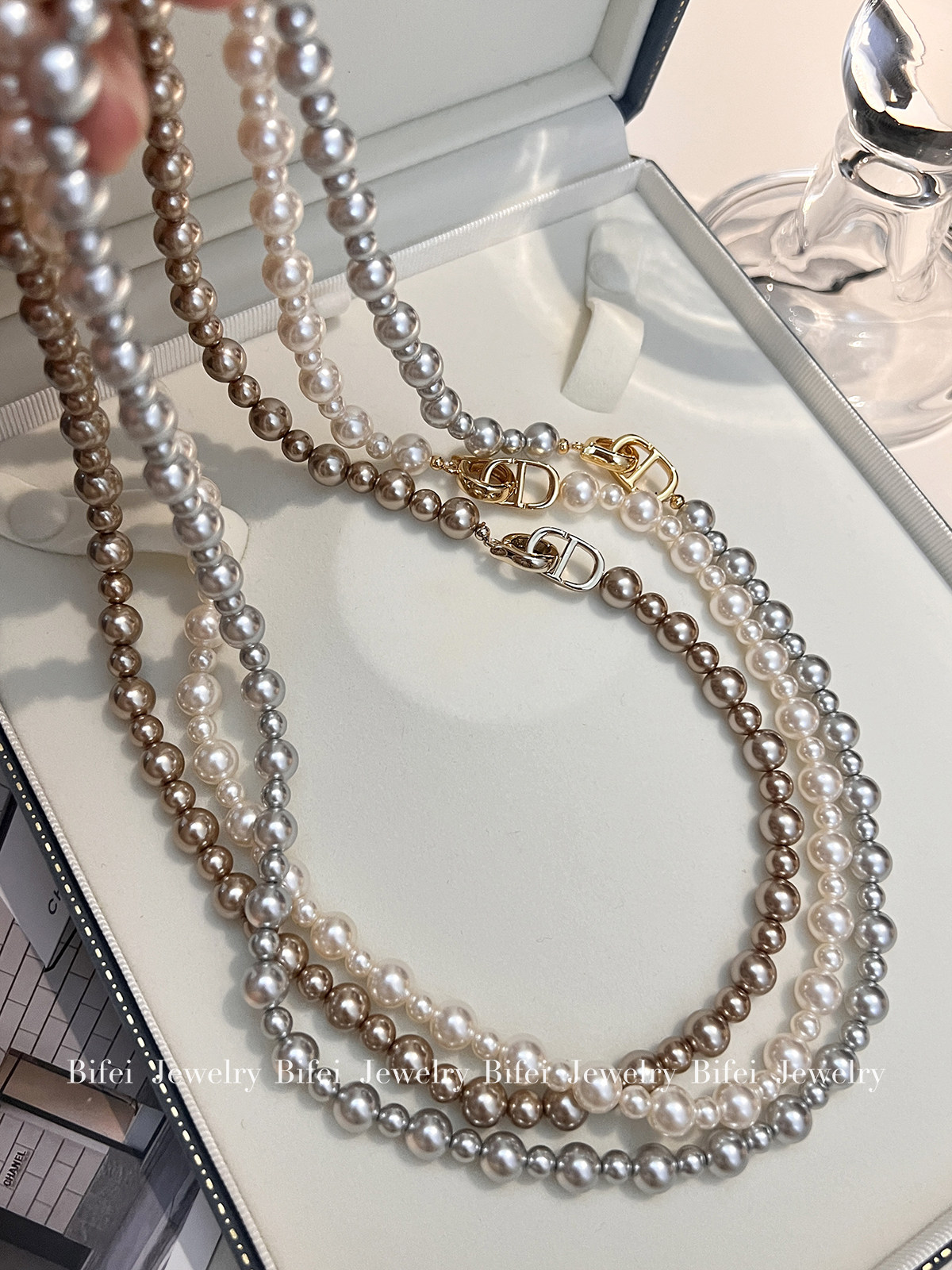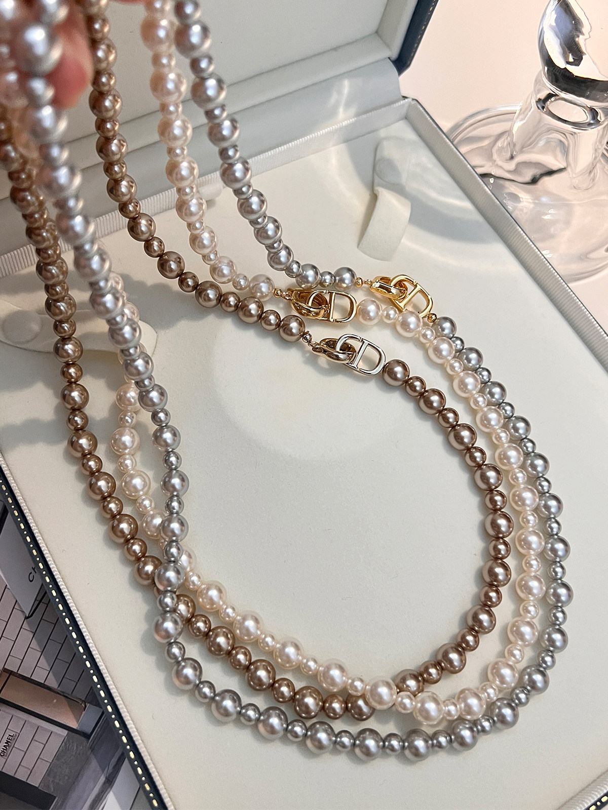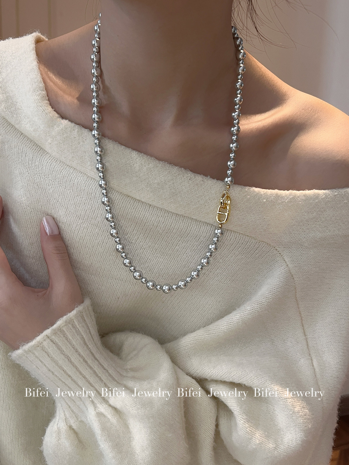 灰色真多麻施家珍珠项链秋冬毛衣链大小颈链2025新款高级感配饰女