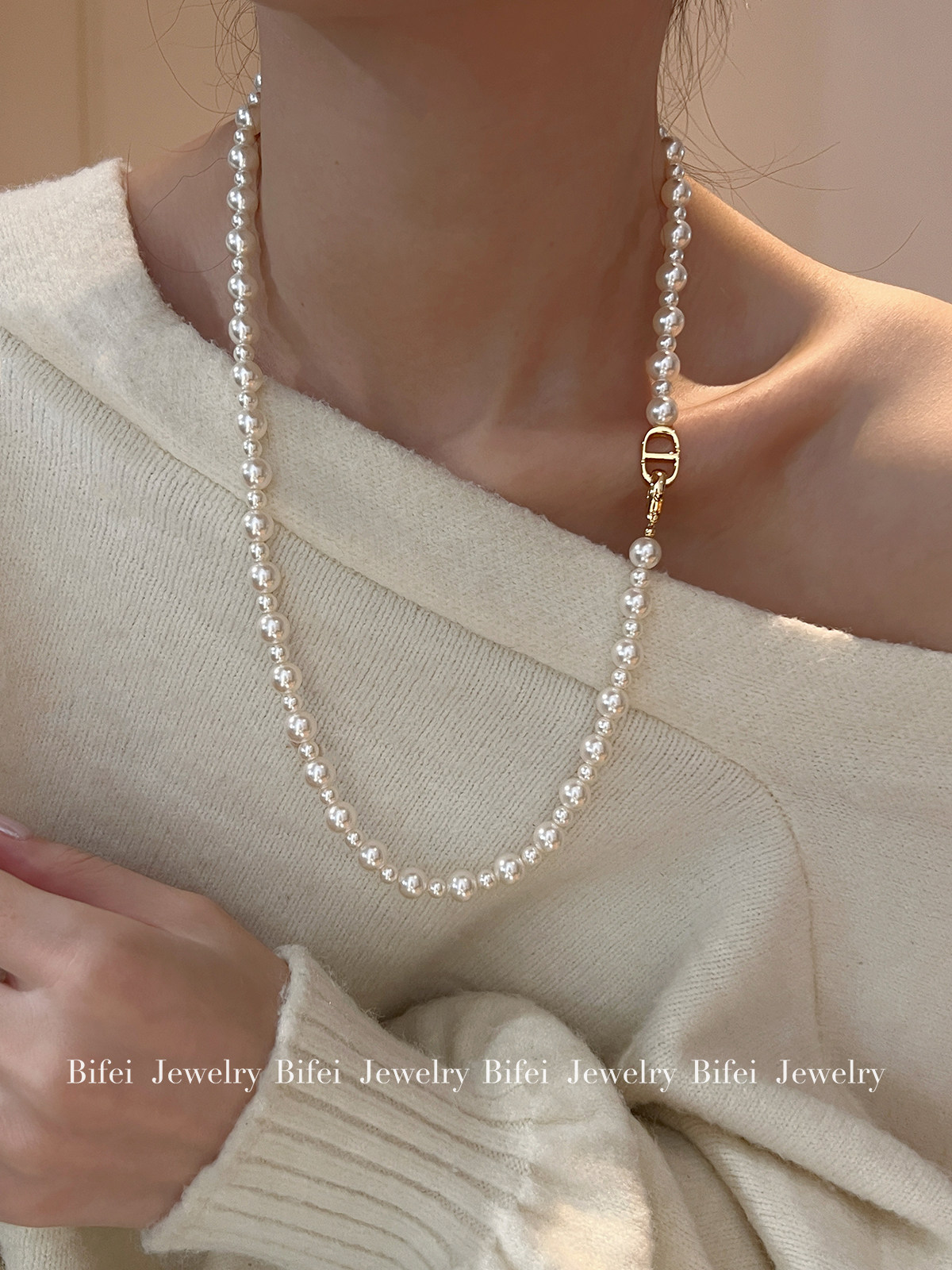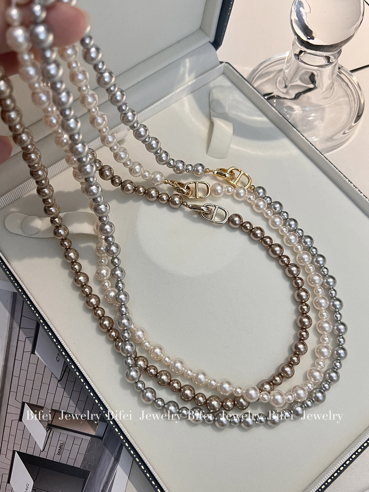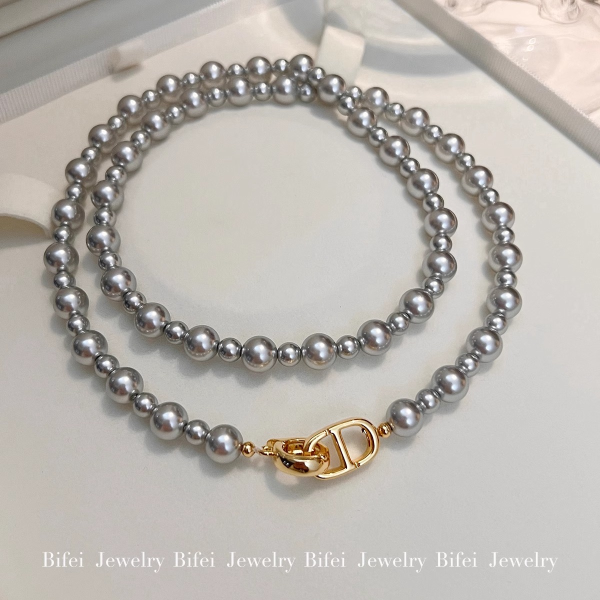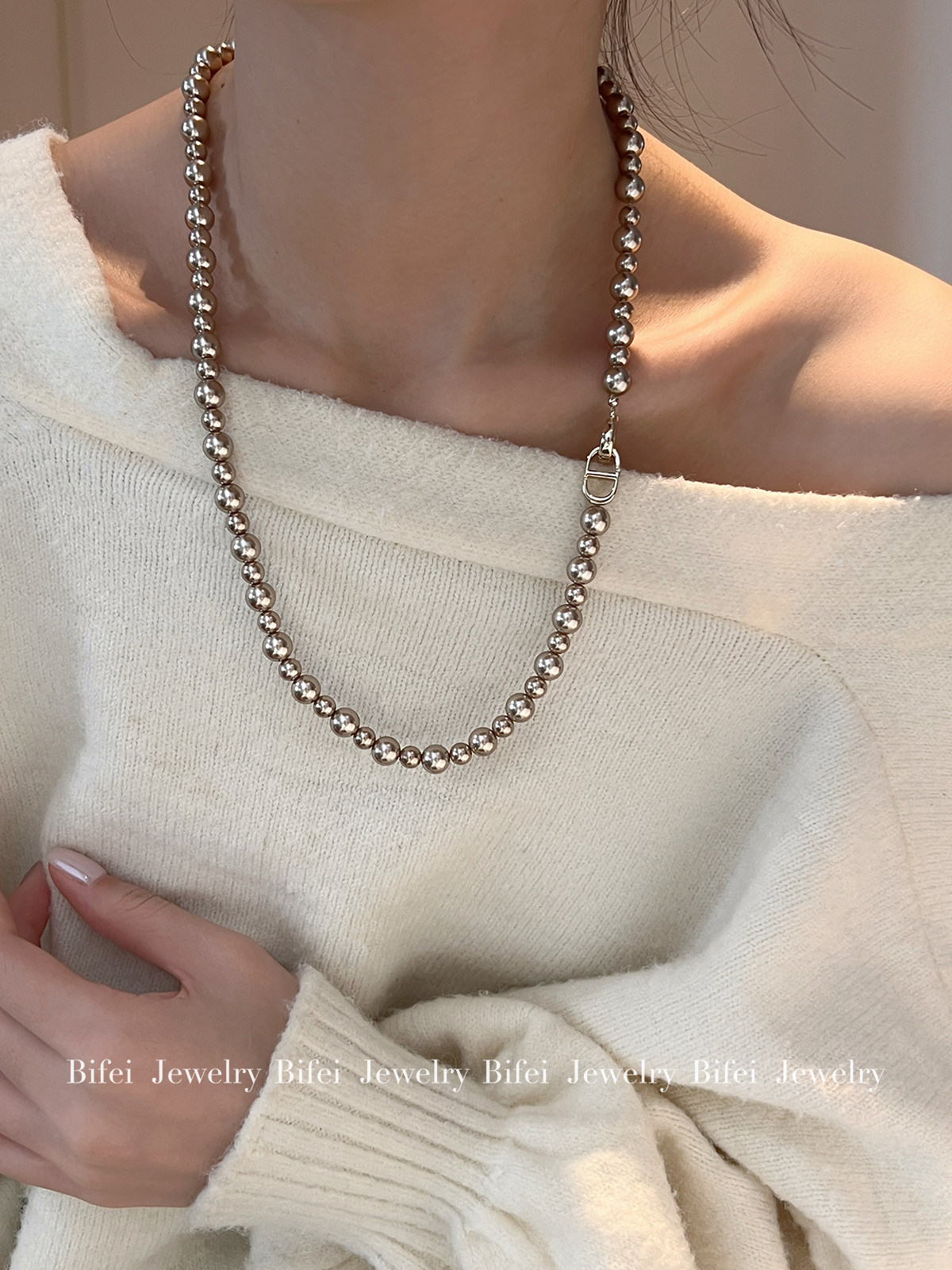 灰色真多麻施家珍珠项链秋冬毛衣链大小颈链2025新款高级感配饰女