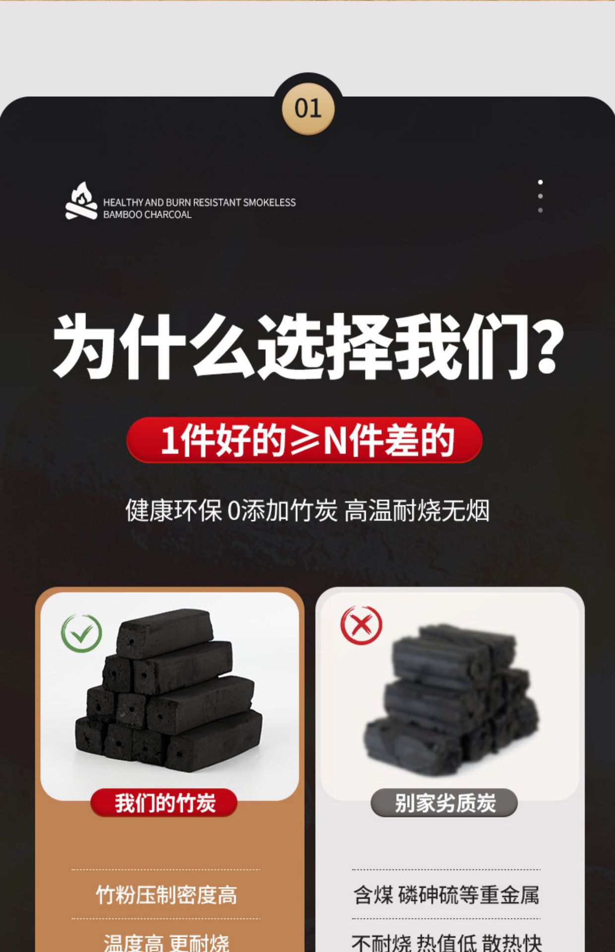 无烟原木炭户外易燃烧烤机制炭室内环保高温竹炭围炉煮茶速燃烤肉