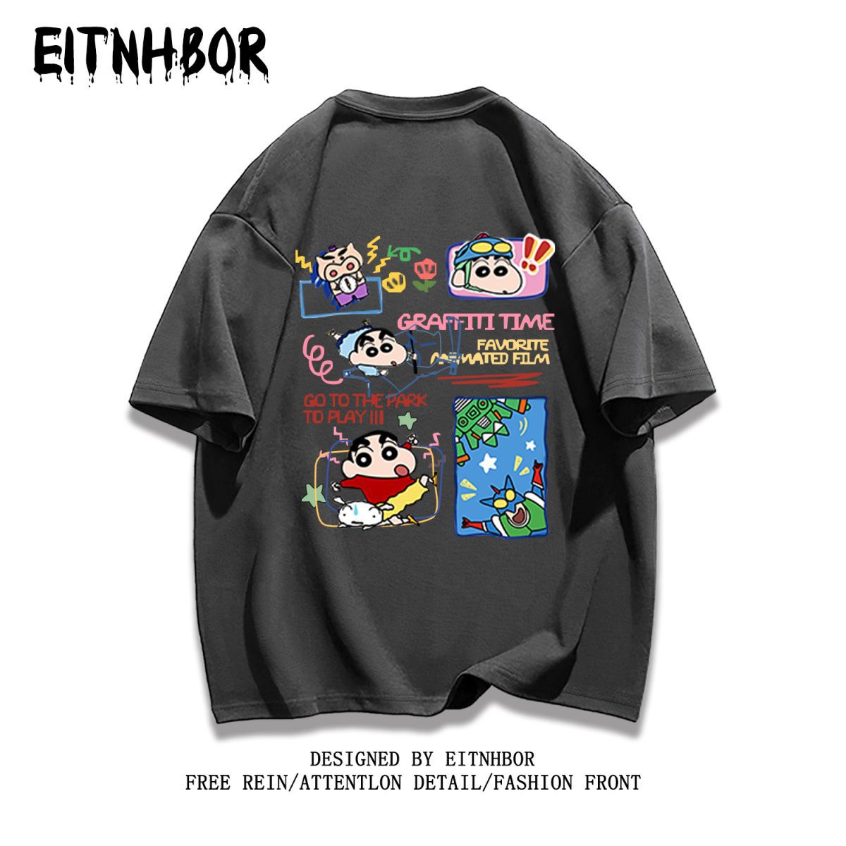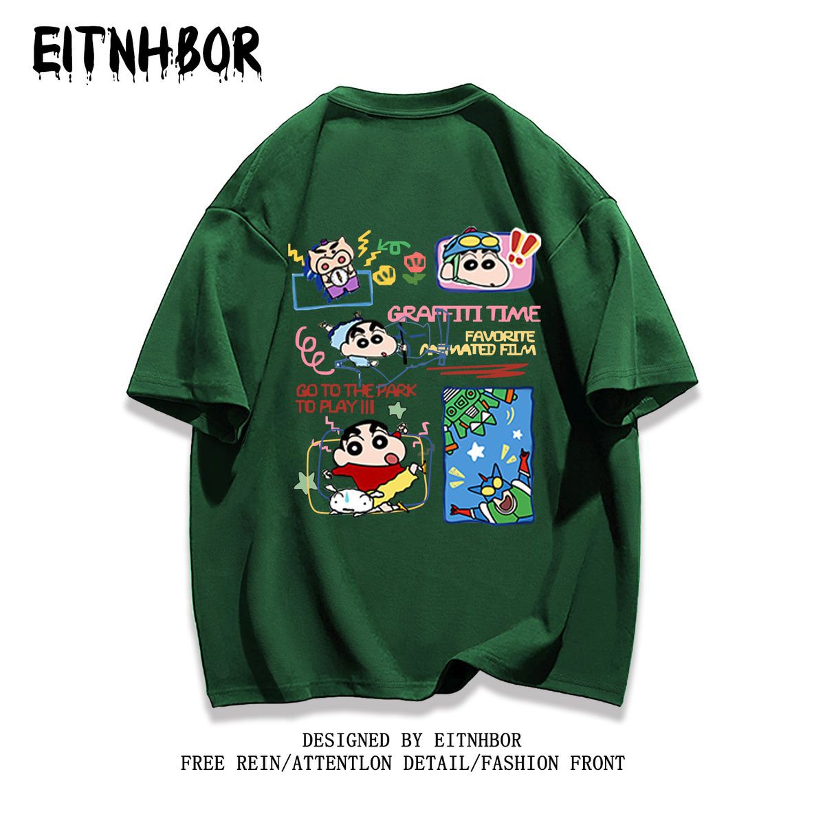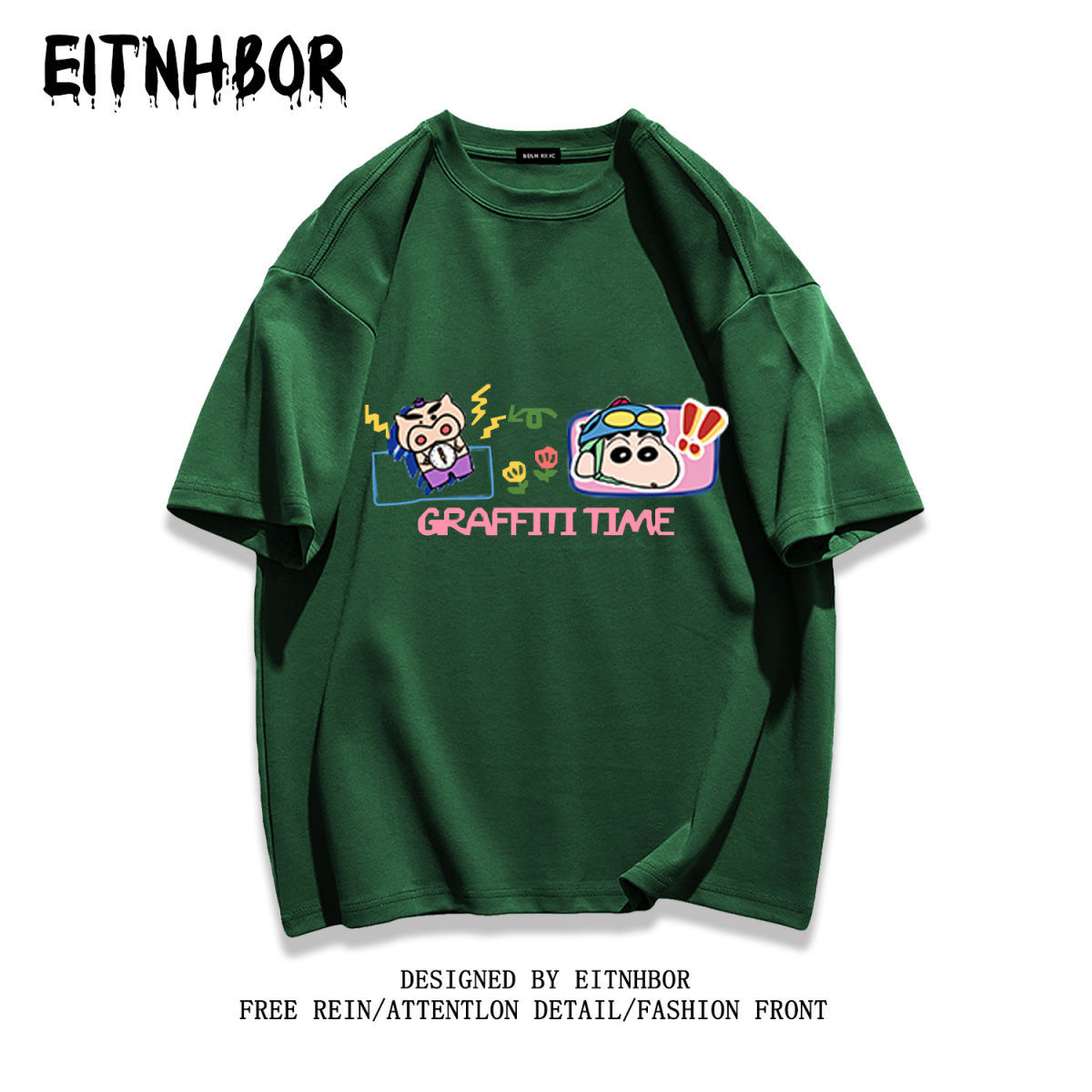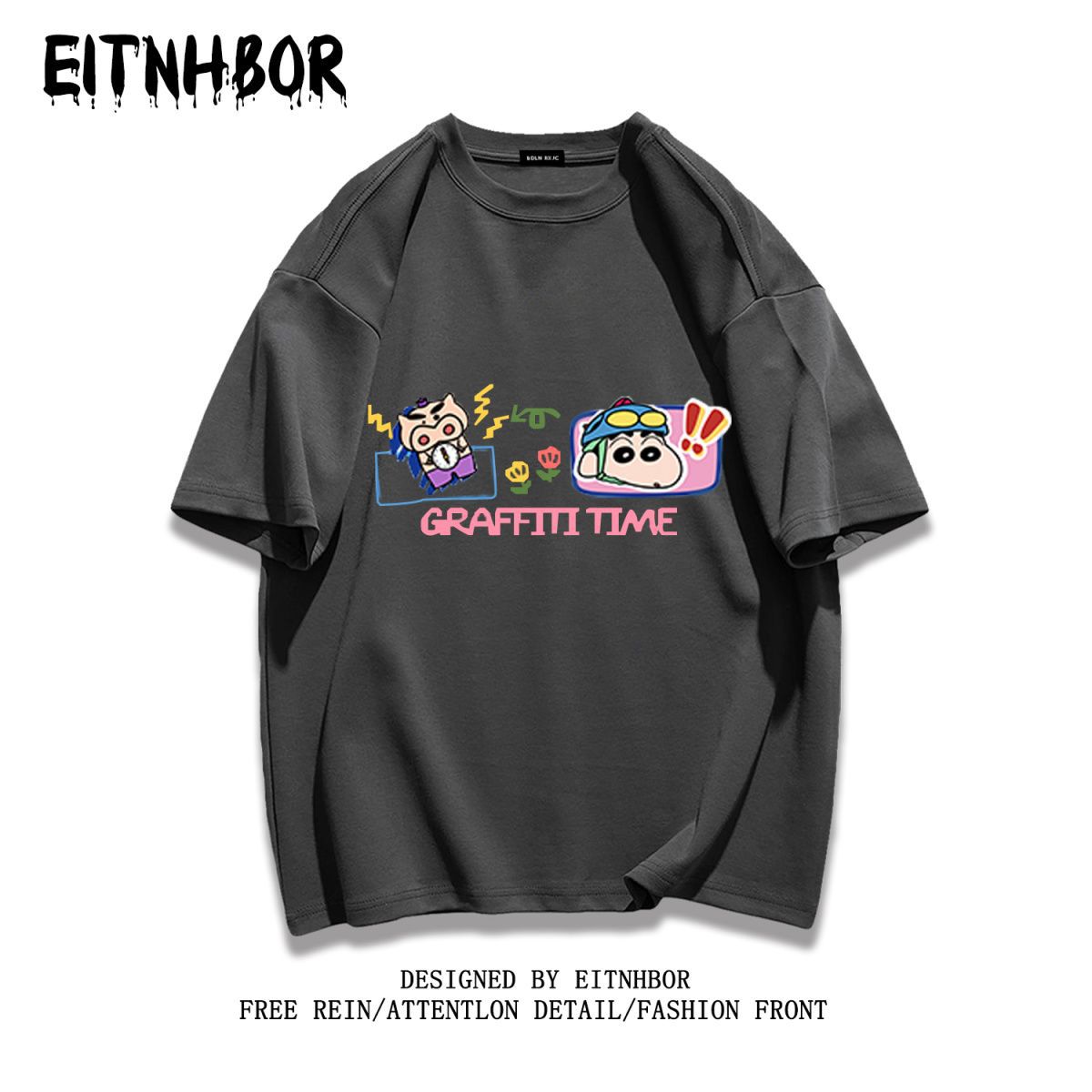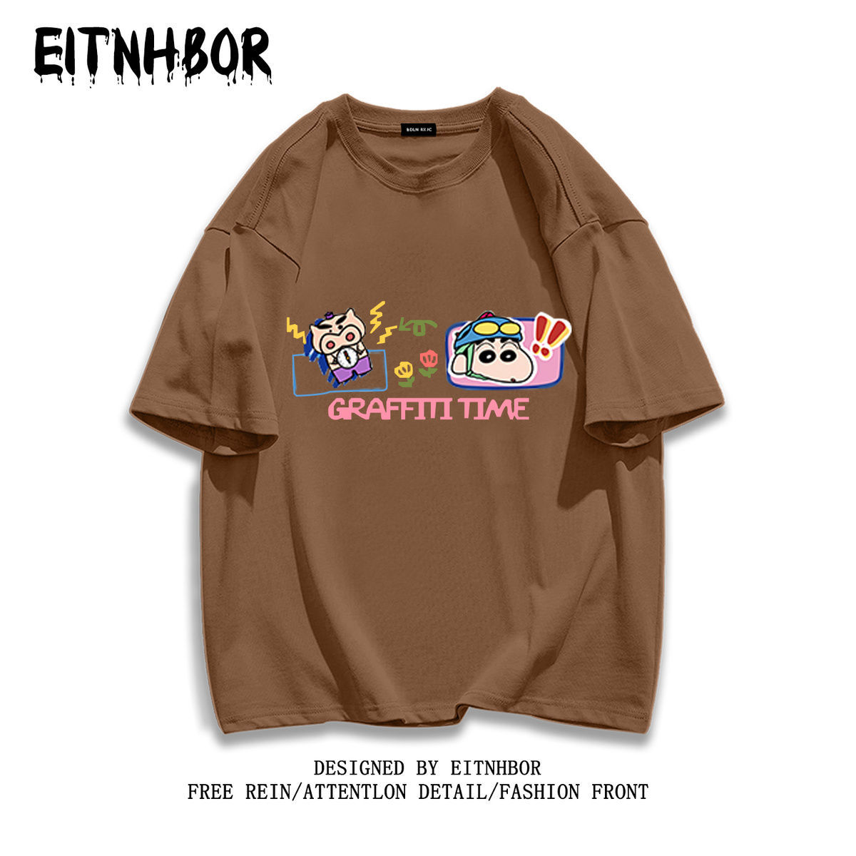 跨境东南亚台湾2025夏新款短袖T恤女蜡笔小新卡通印花上衣素色踢