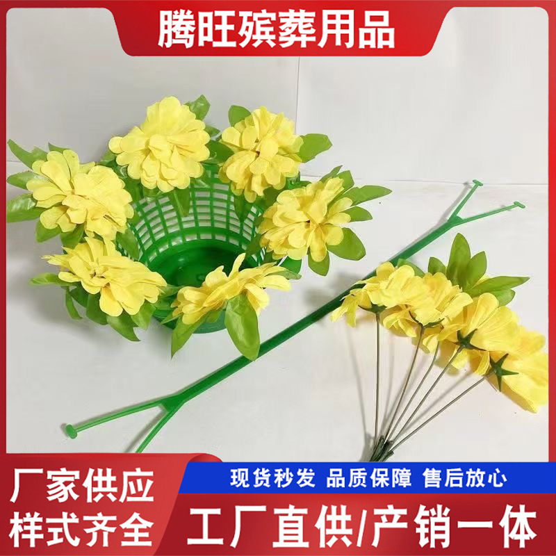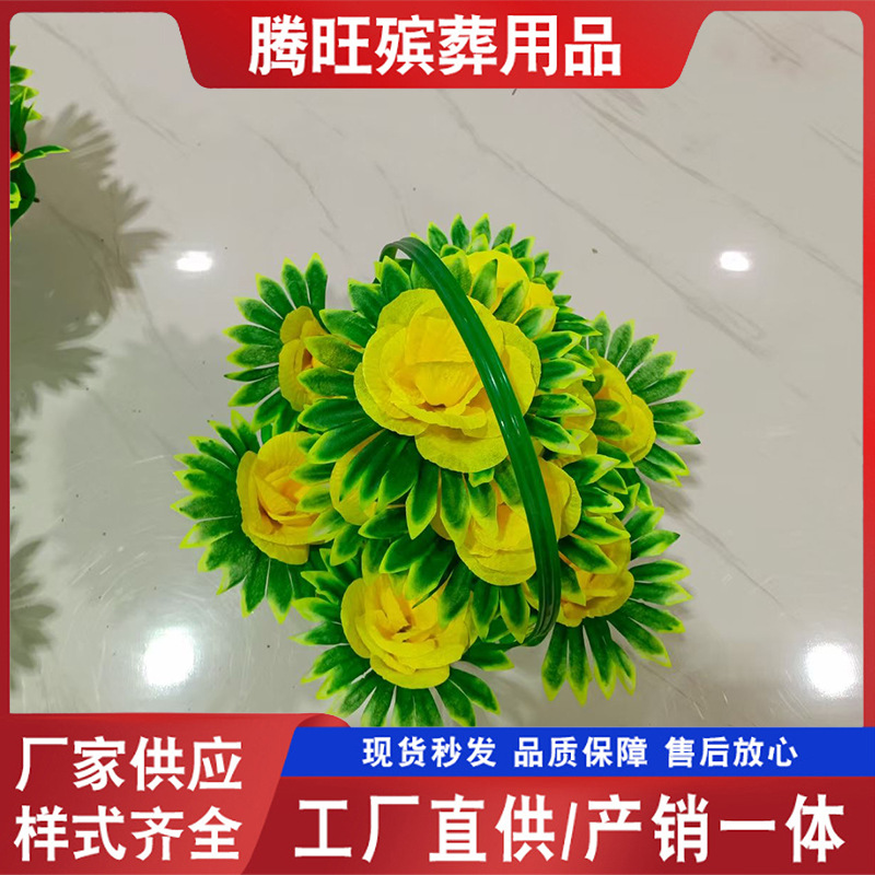 厂家批发花篮 清明节祭祀花篮制作材料 假花绢花上坟花篮殡葬大全