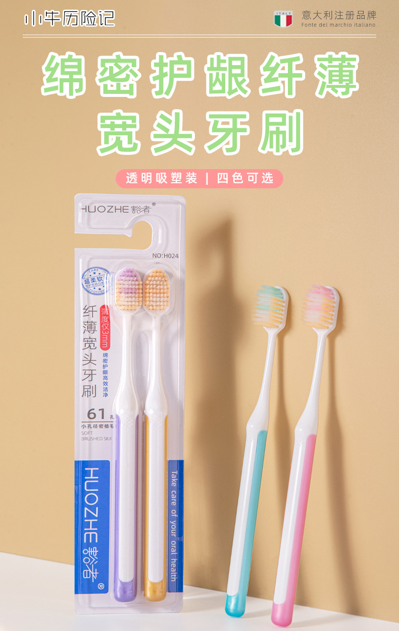 小牛历险记2支装扬州高密宽头超柔成人牙刷软毛门店爆品日用百货