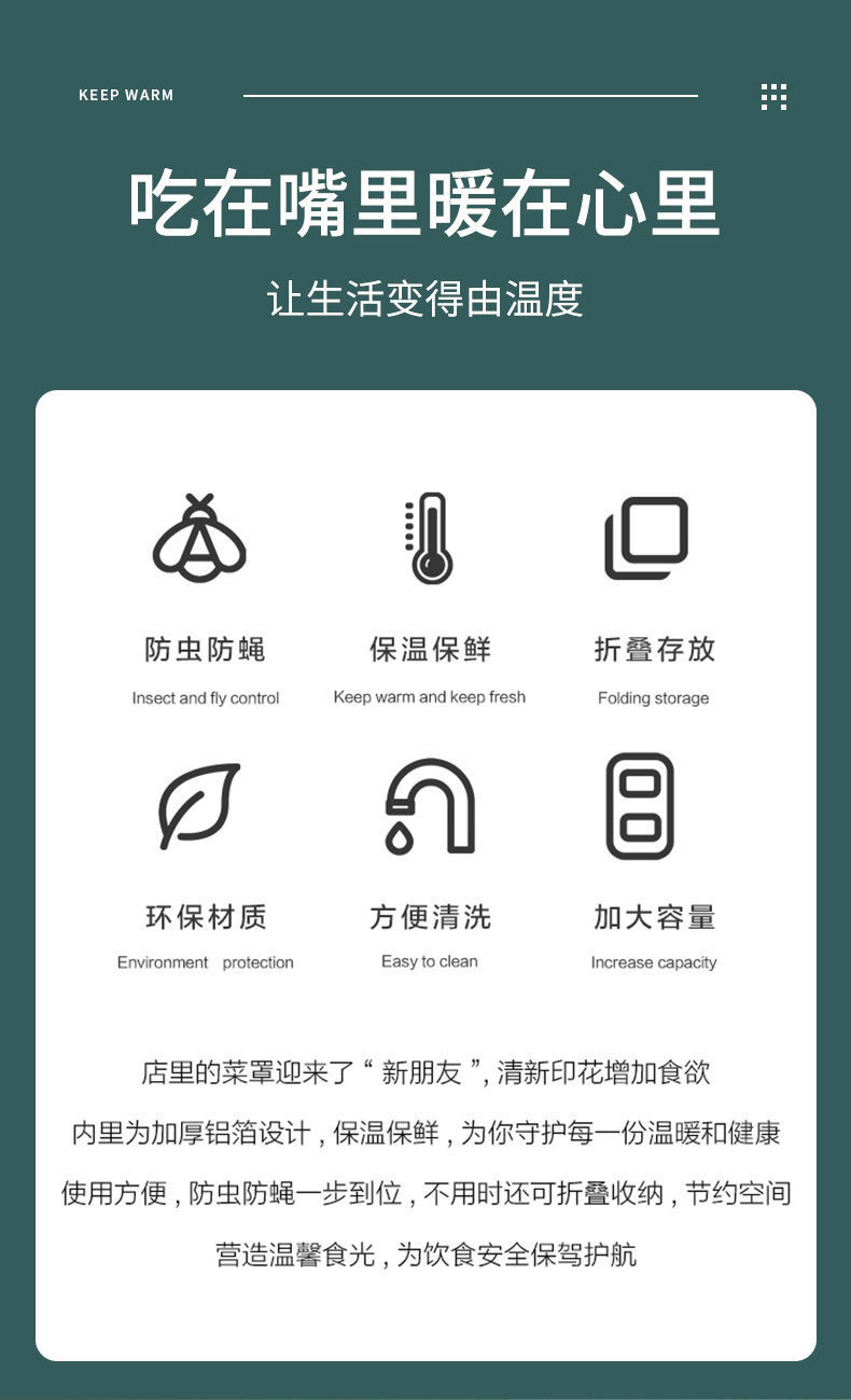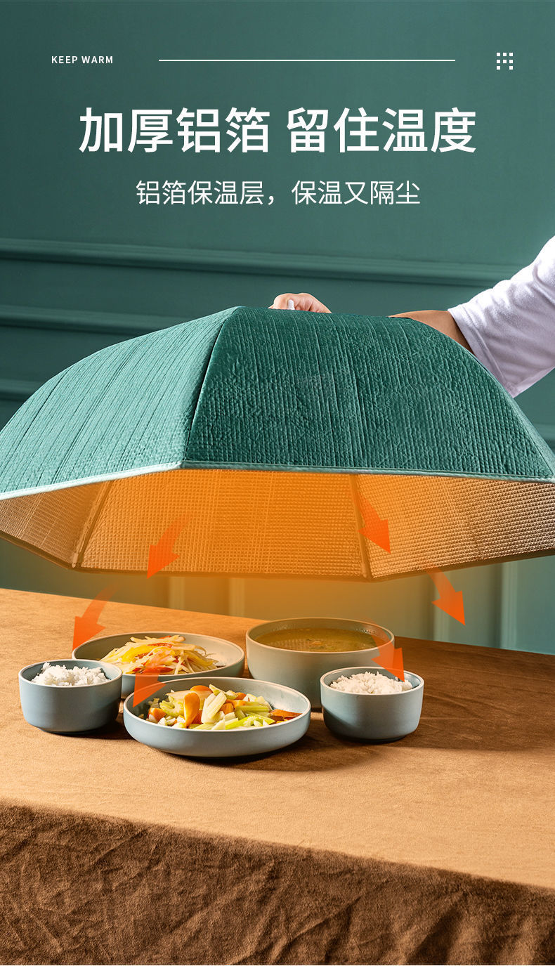 保温菜罩家用可拆洗餐桌罩可折叠饭菜罩子加厚遮菜防尘厨房盖菜罩