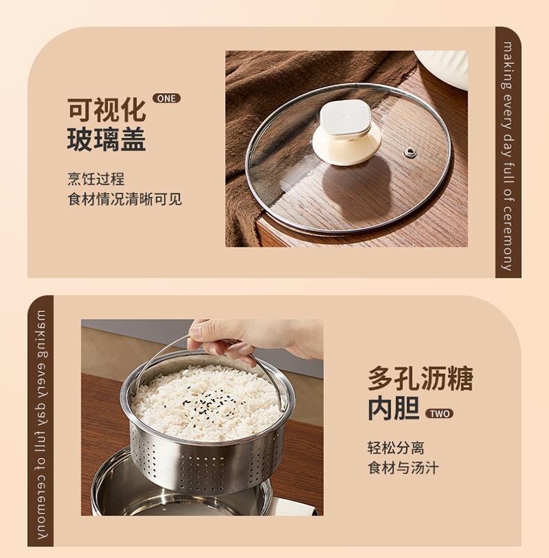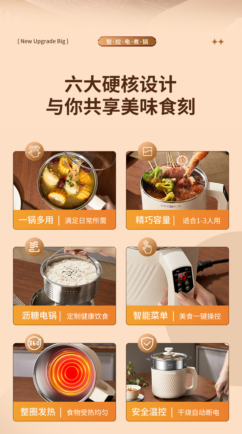 304无涂层智能电煮锅减糖电饭煲家用宝宝辅食锅单人用煮粥煲汤锅