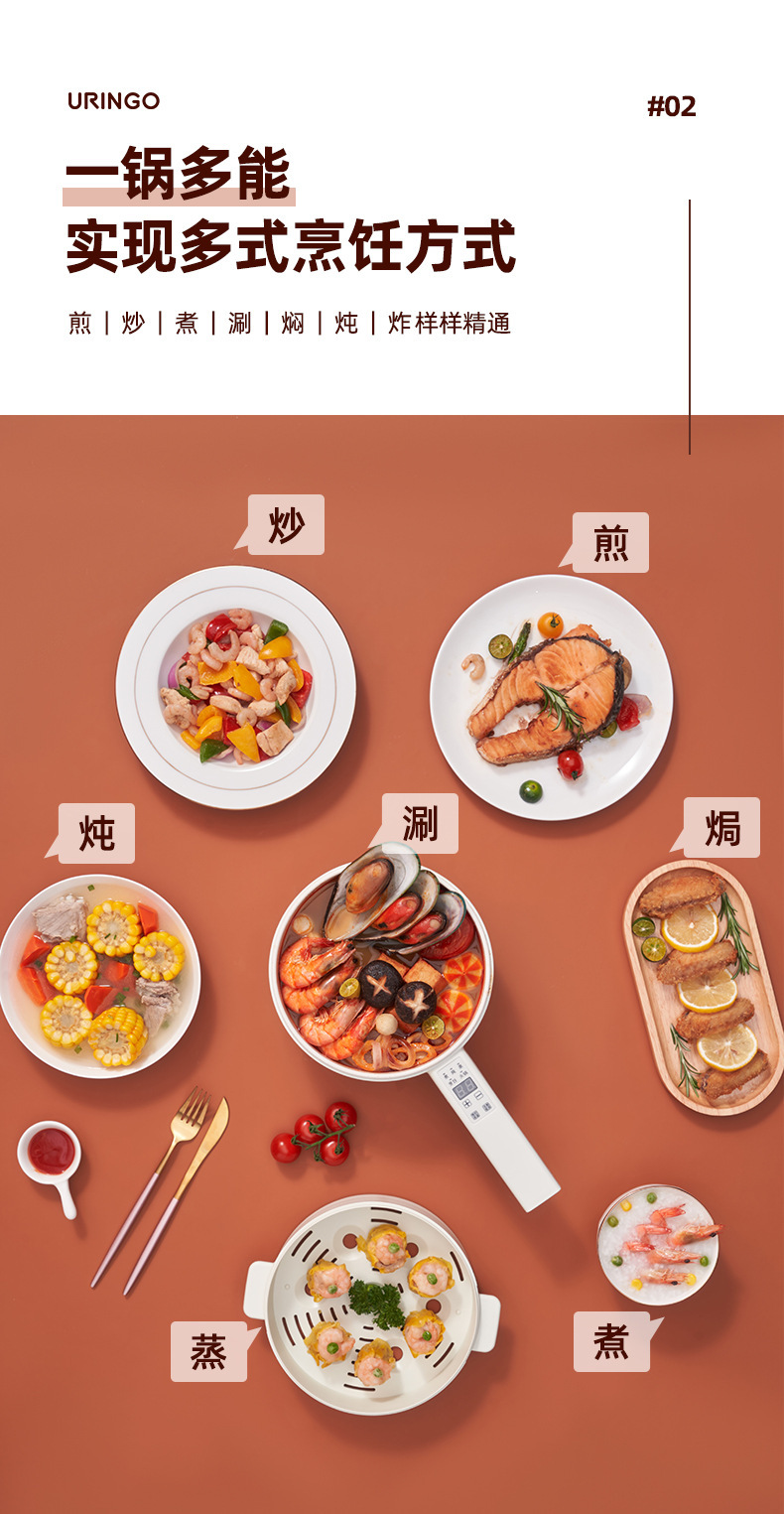 七彩叮当多功能电煮锅 辅食宿舍学生小白锅家用电炒煮面小型电锅
