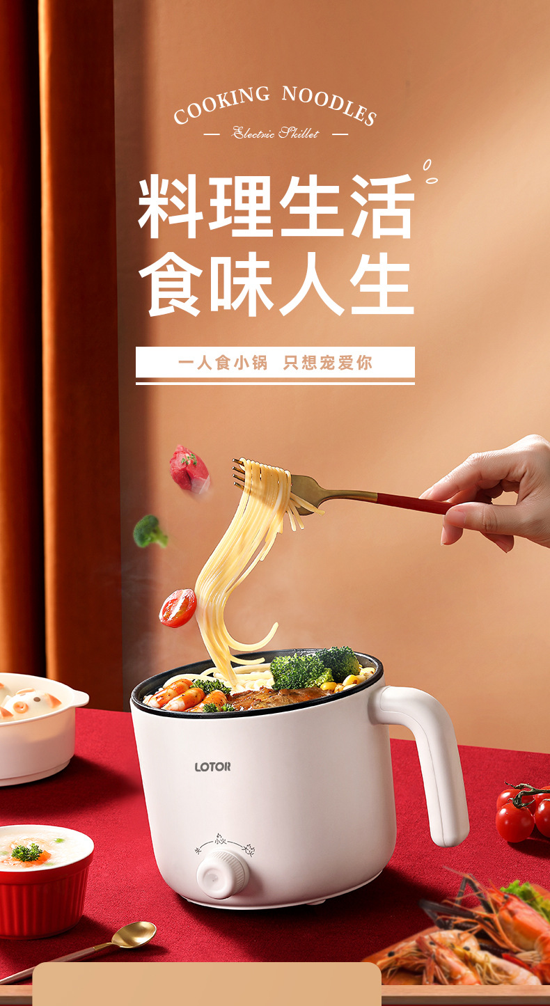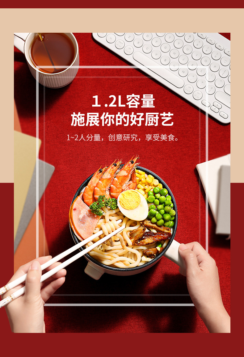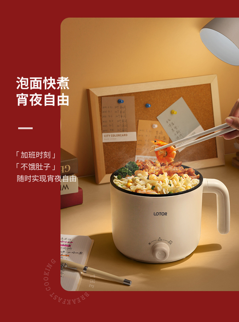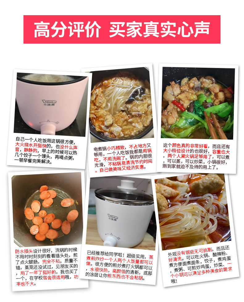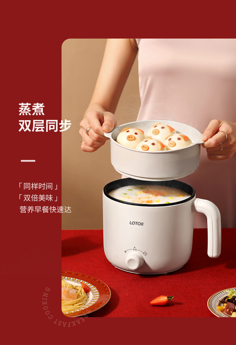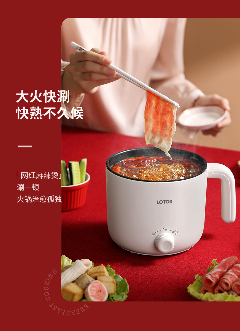 小浣熊 电煮锅宿舍小电锅迷你小火锅多功能电热锅多用途煮面泡面