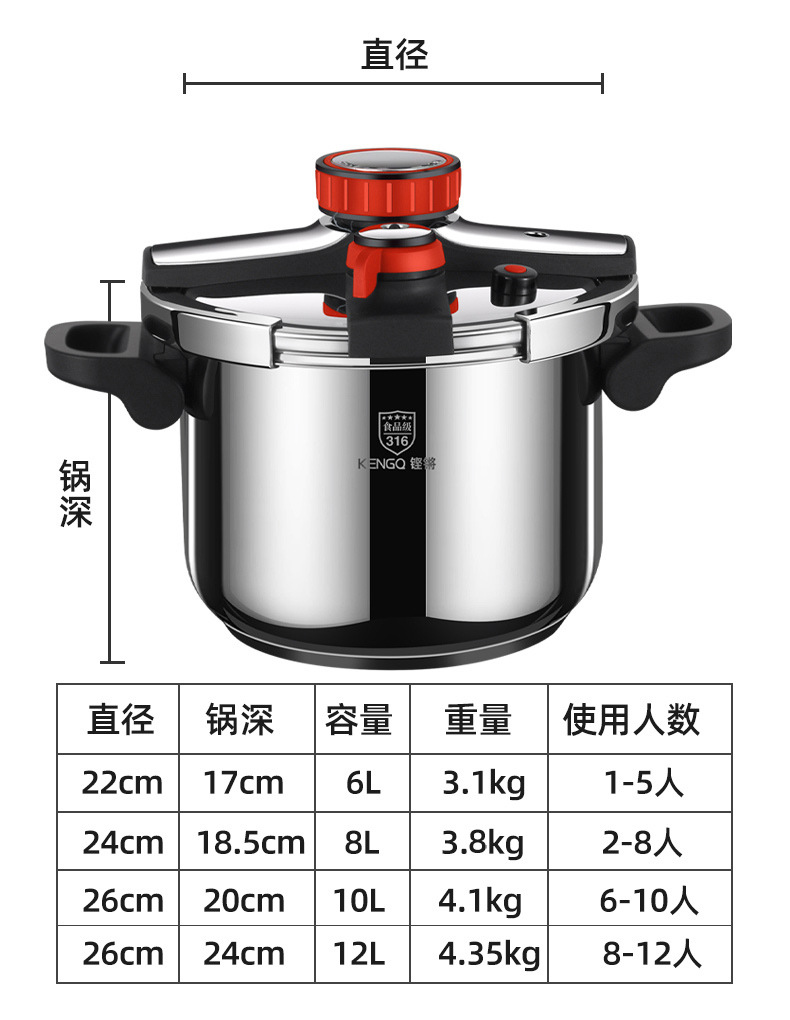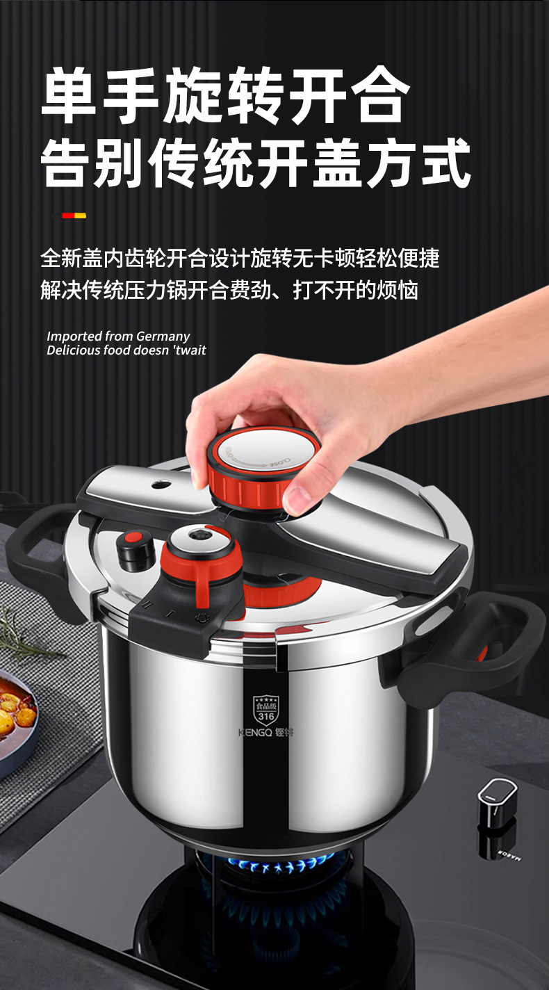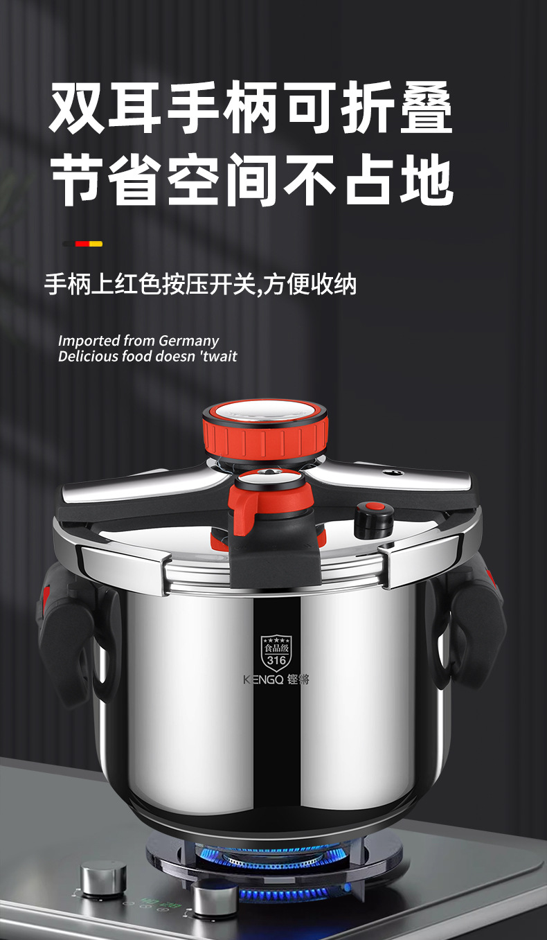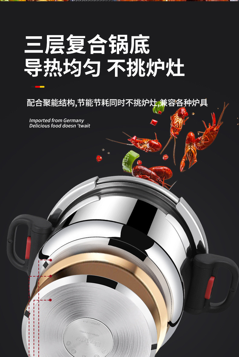 德国316不锈钢高压锅新款家用加厚大容量电磁炉燃气用防爆压力锅