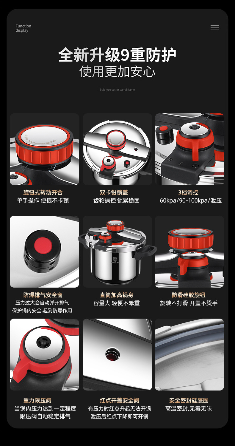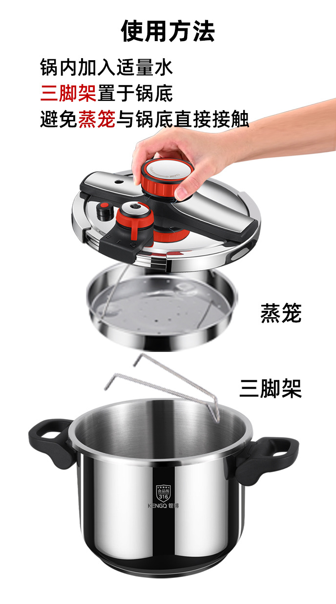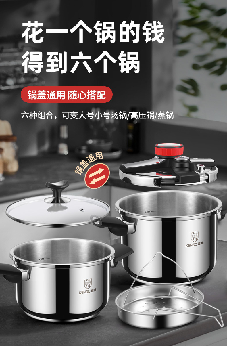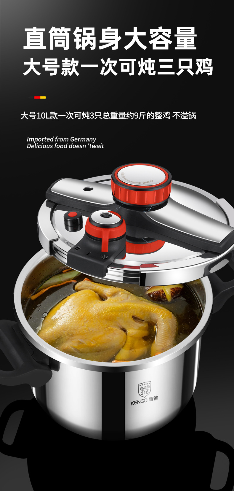德国316不锈钢高压锅新款家用加厚大容量电磁炉燃气用防爆压力锅