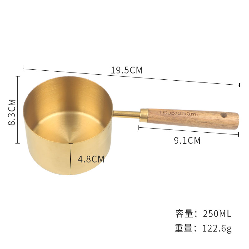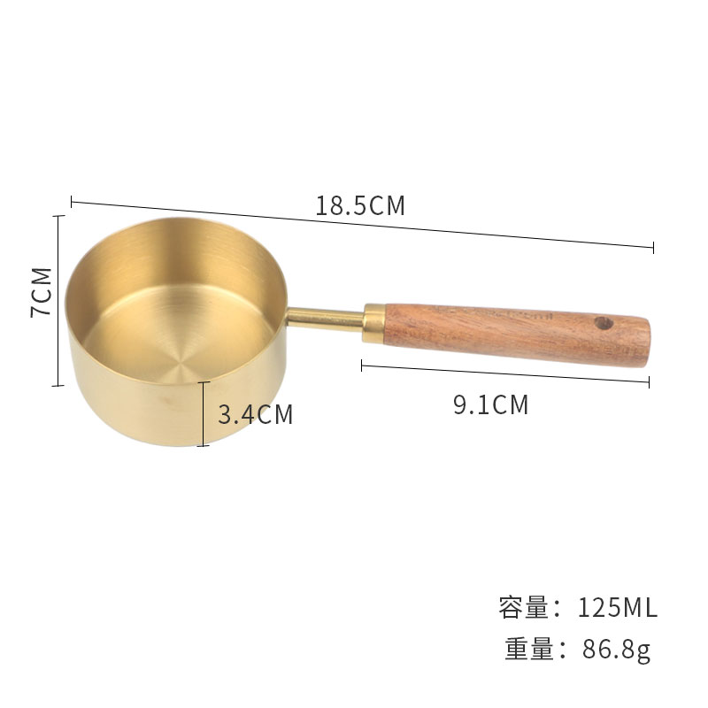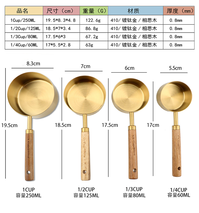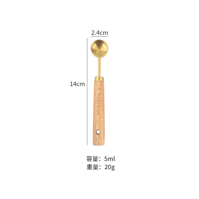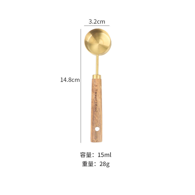 久索铜色木柄量勺量匙 烘焙专用不锈钢量杯量勺量匙四件套张张