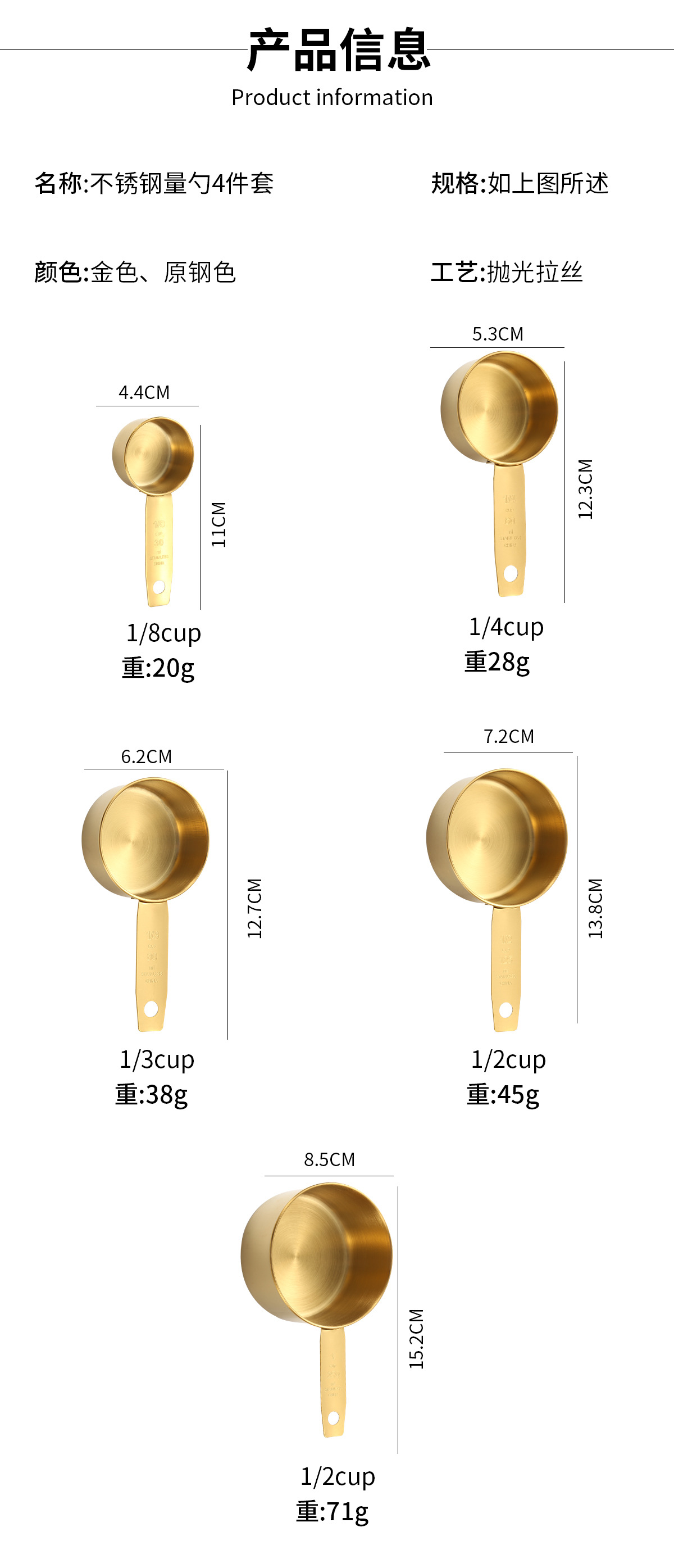 不锈钢量杯量勺套装咖啡面粉调味家用厨房烘焙小工具量匙五件套装