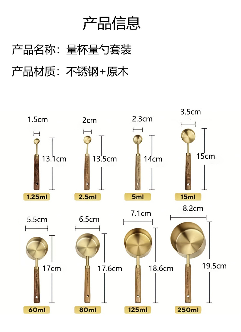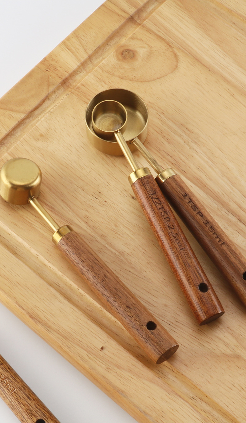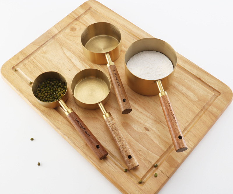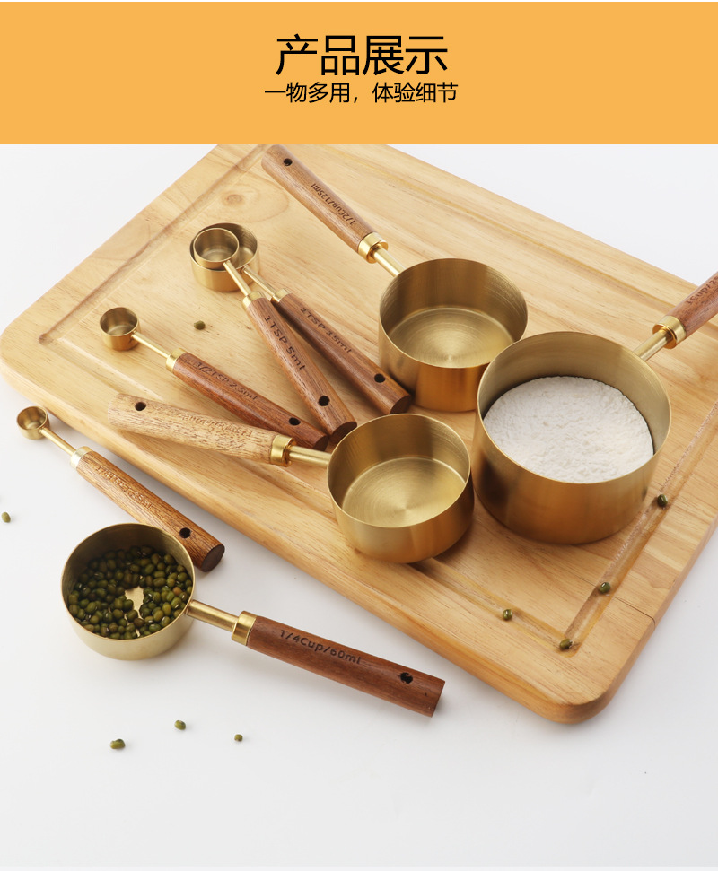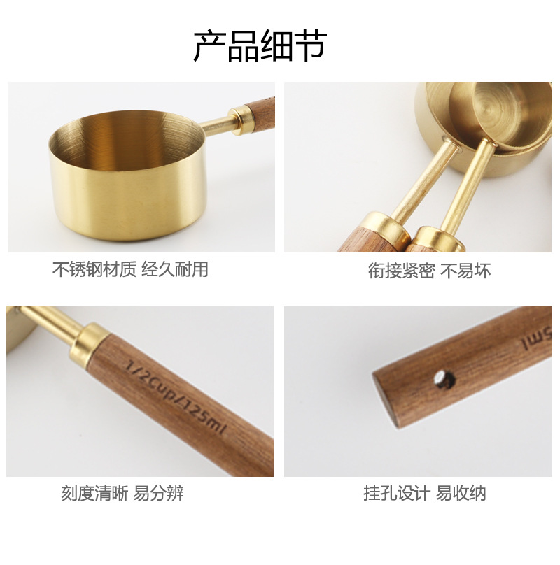 相思木手柄量杯量勺套装不锈钢量匙调料勺取粉勺咖啡量杯烘培工具