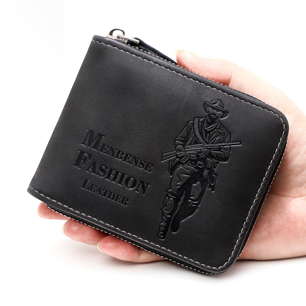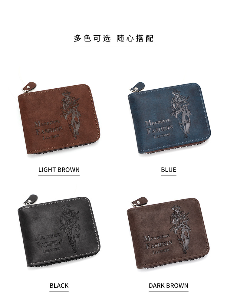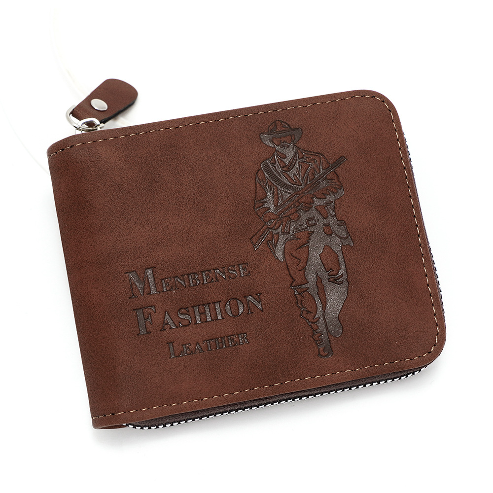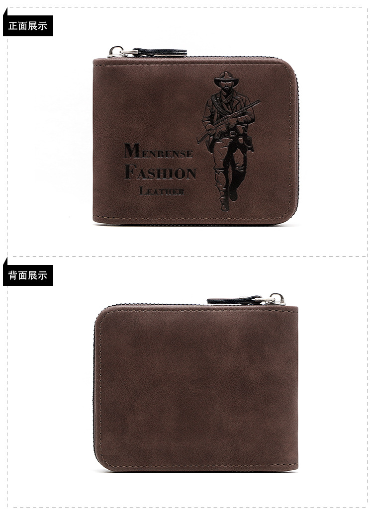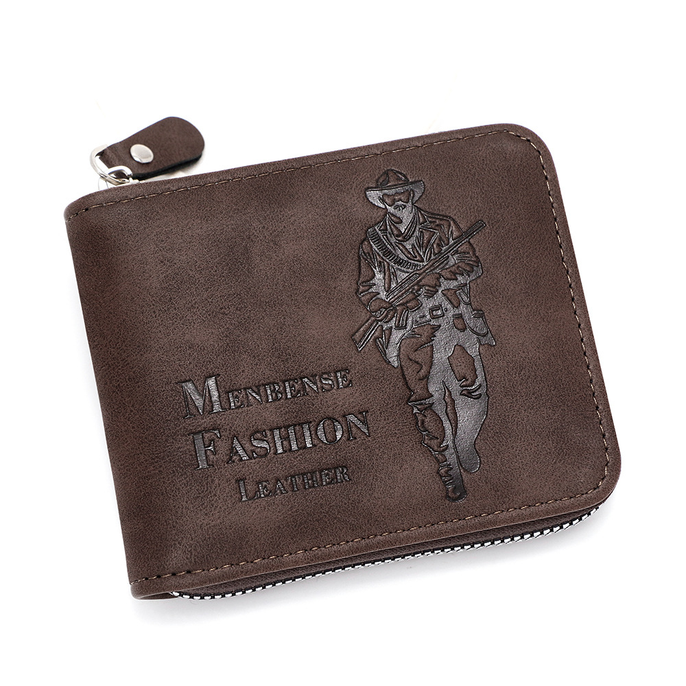 跨境风潮猎人压花男士短款围链钱包 大容量三折零钱袋美金包批发