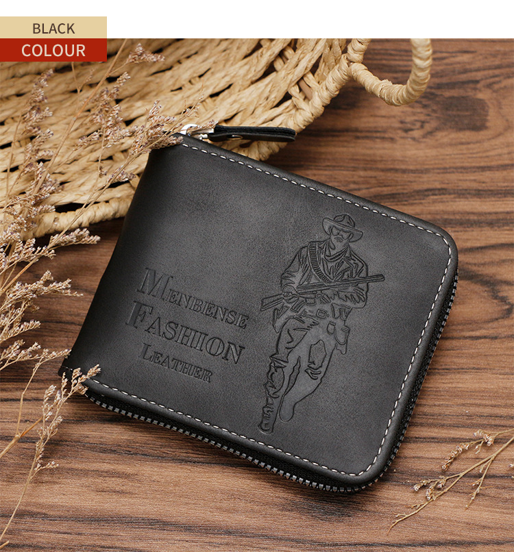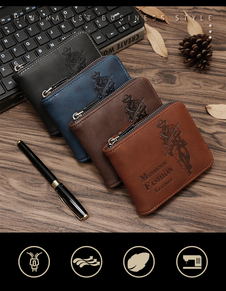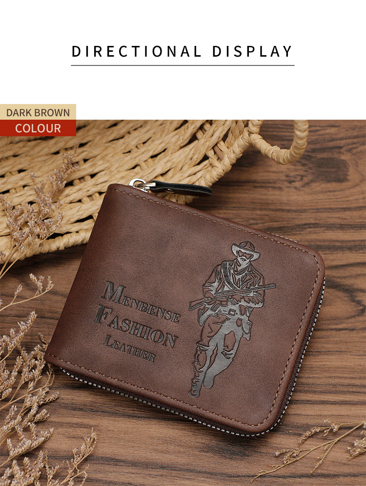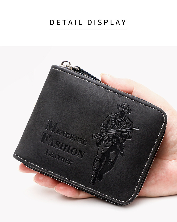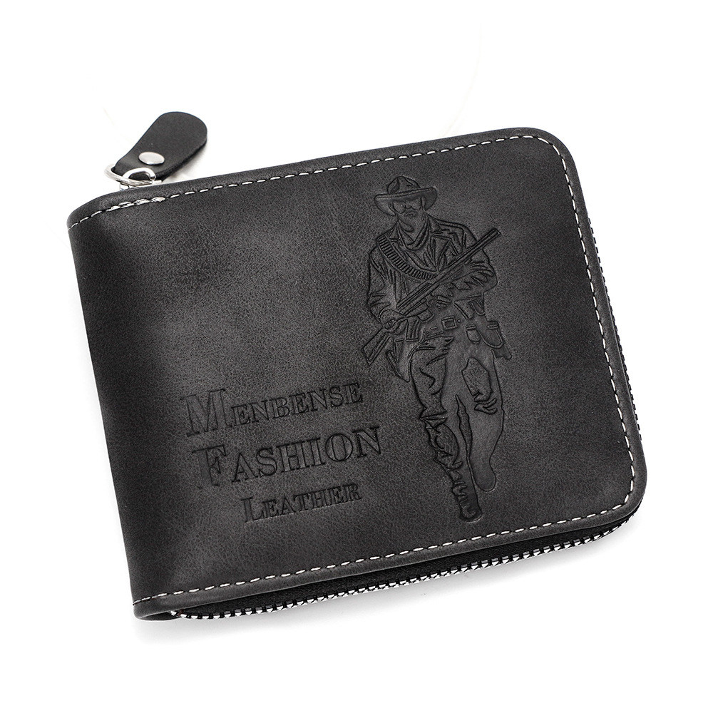 跨境风潮猎人压花男士短款围链钱包 大容量三折零钱袋美金包批发
